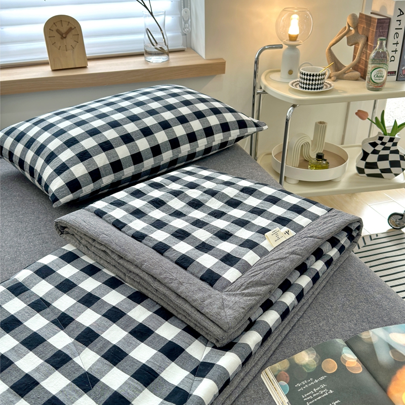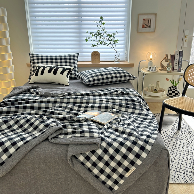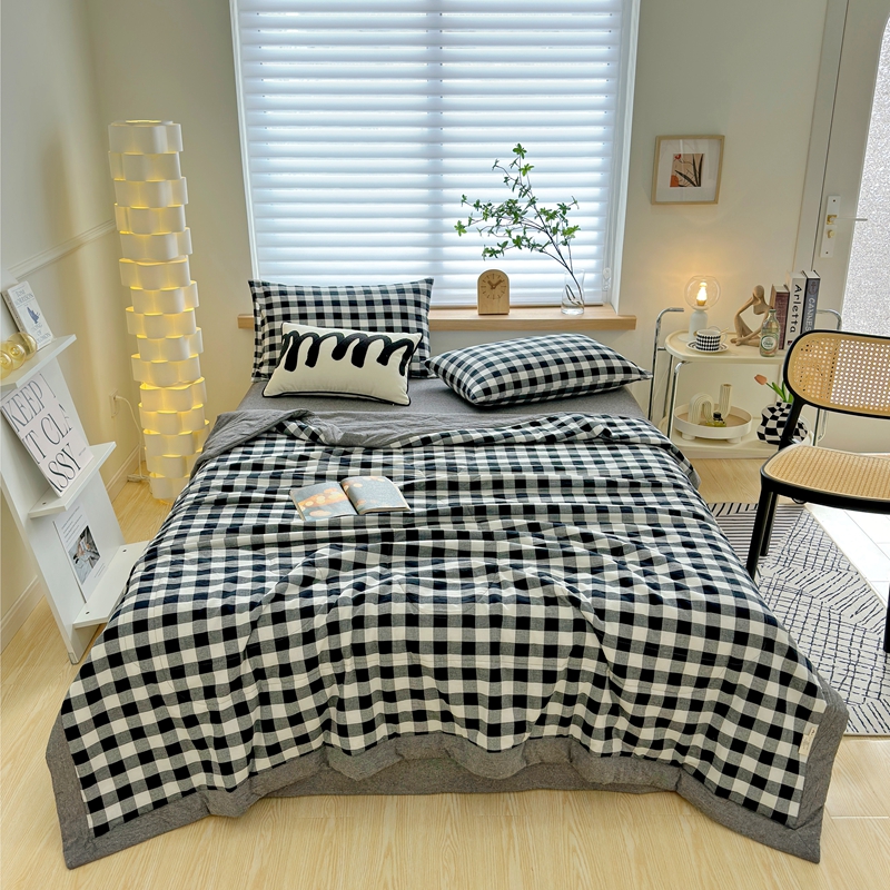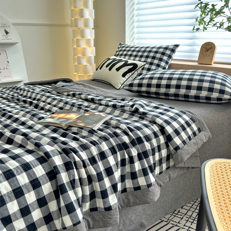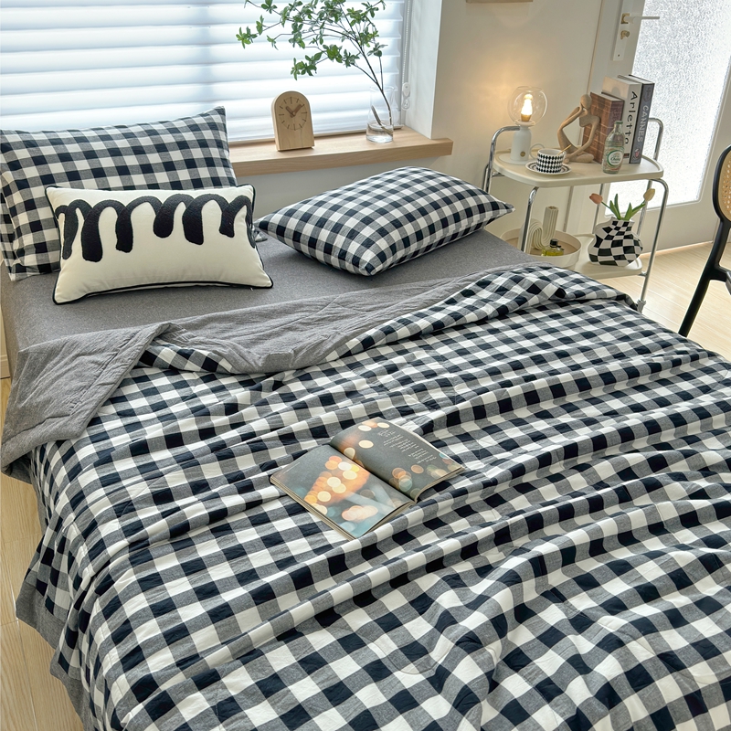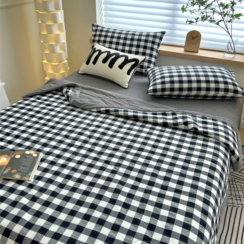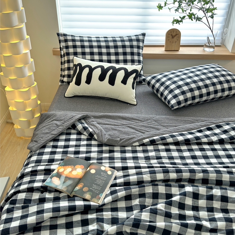 三沁 2024新款春夏全棉色织水洗棉大豆夏被四件套 SM-黑白中格