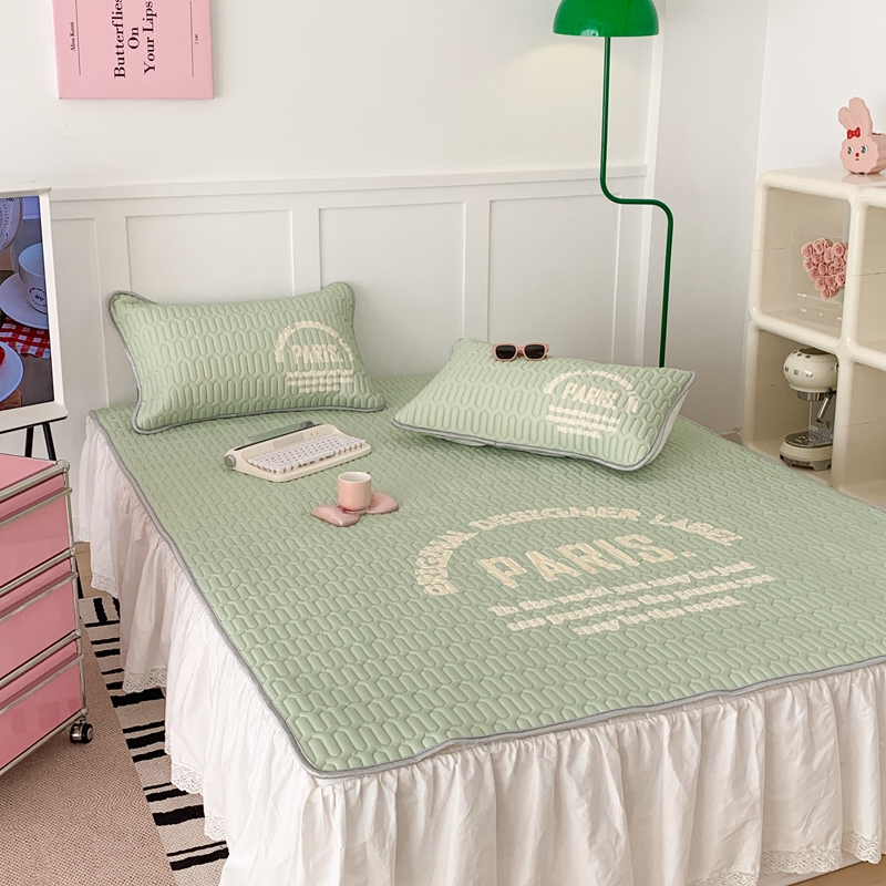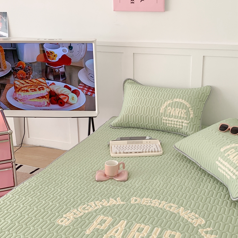 昔可家纺 2023新款四色字母乳胶凉席 绿底字母