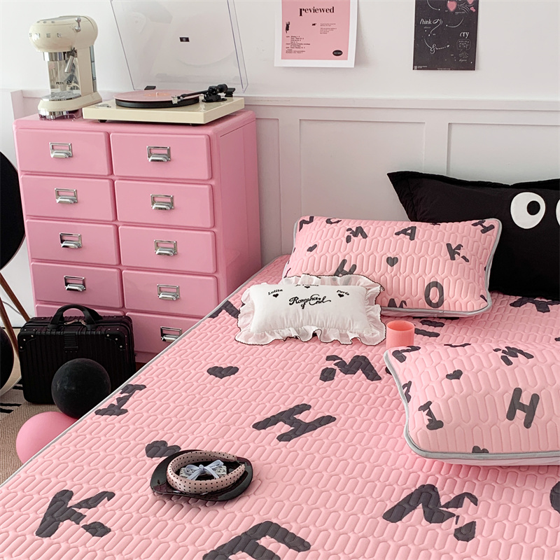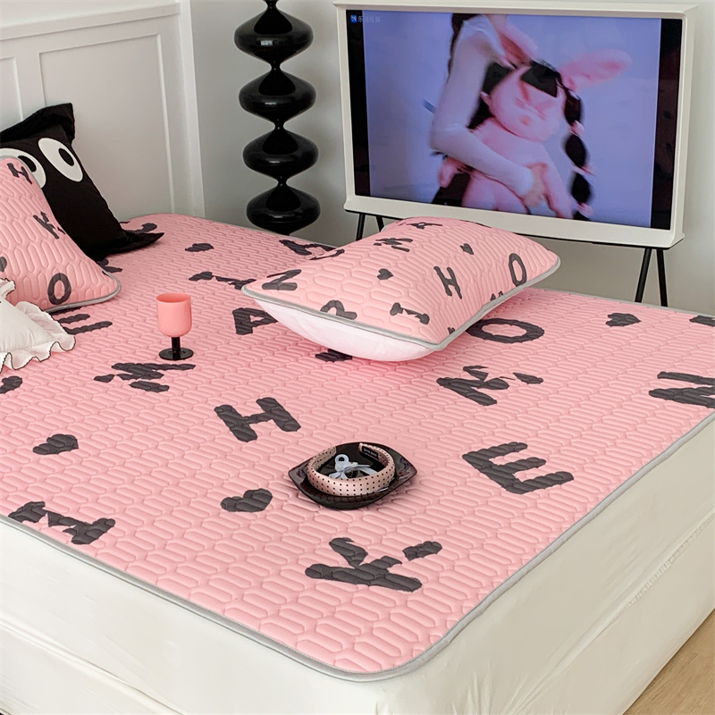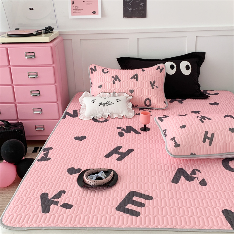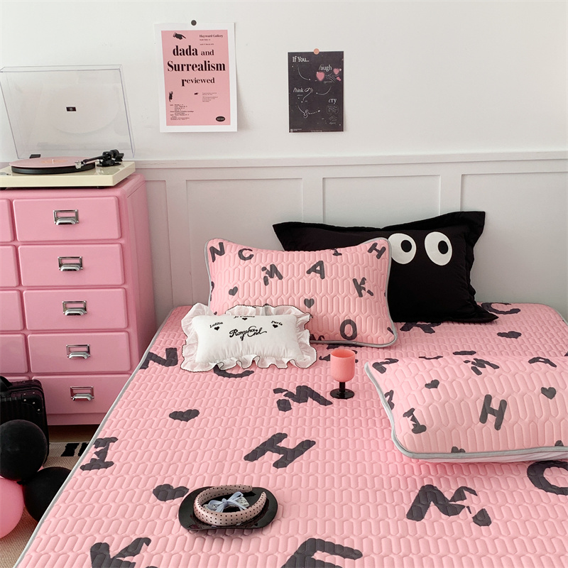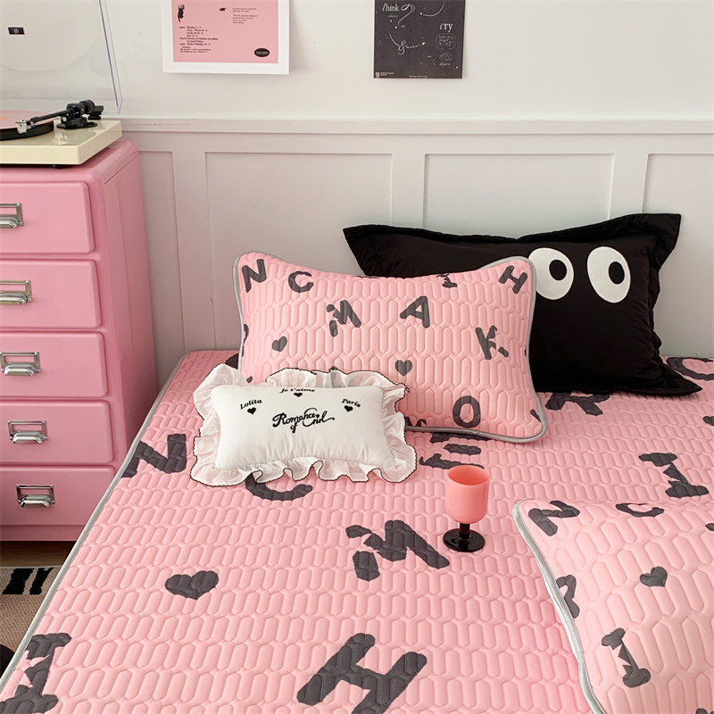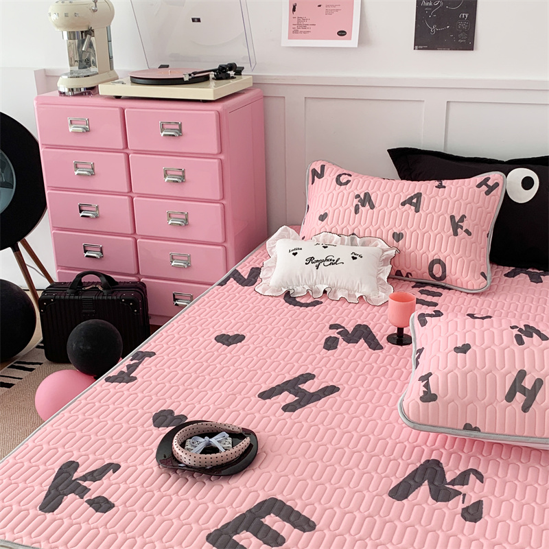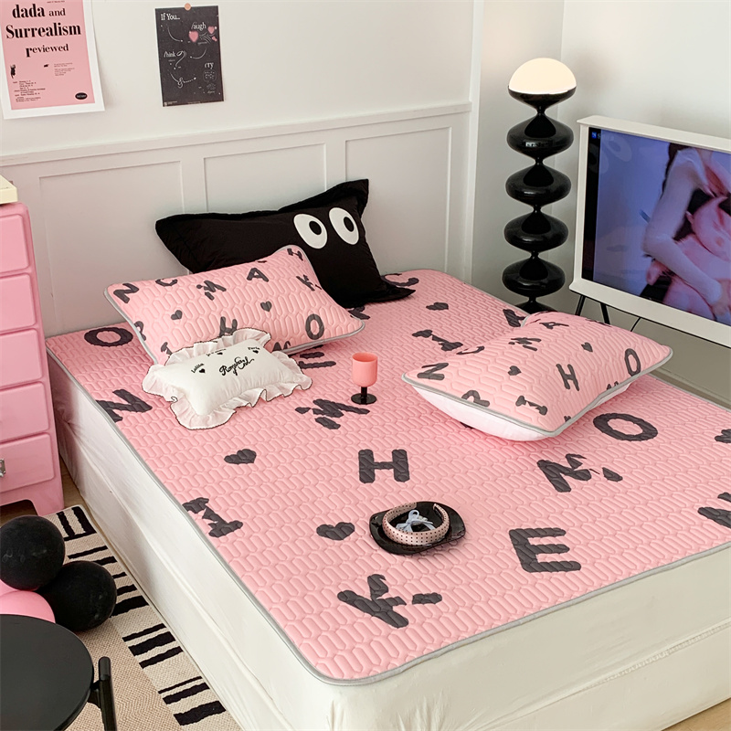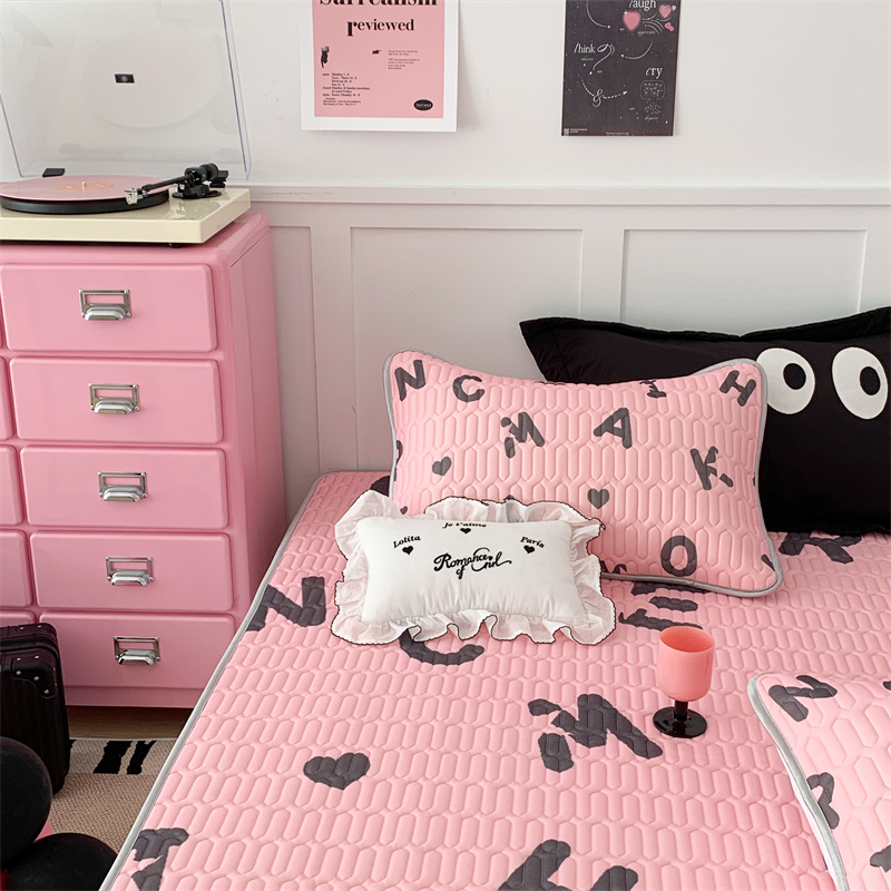 昔可家纺 2023新款甜酷黑粉系列乳胶凉席 黑粉字母