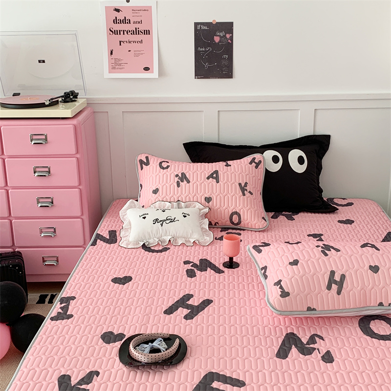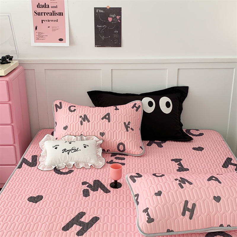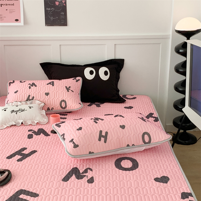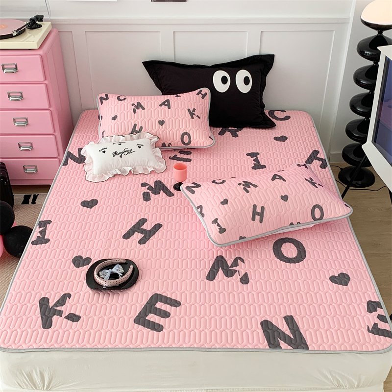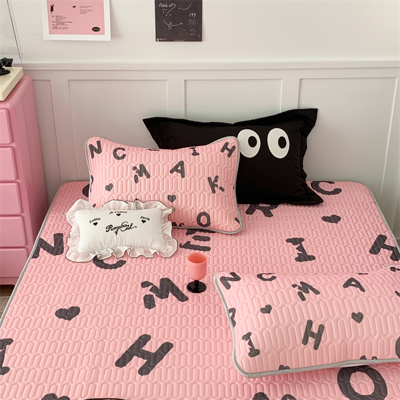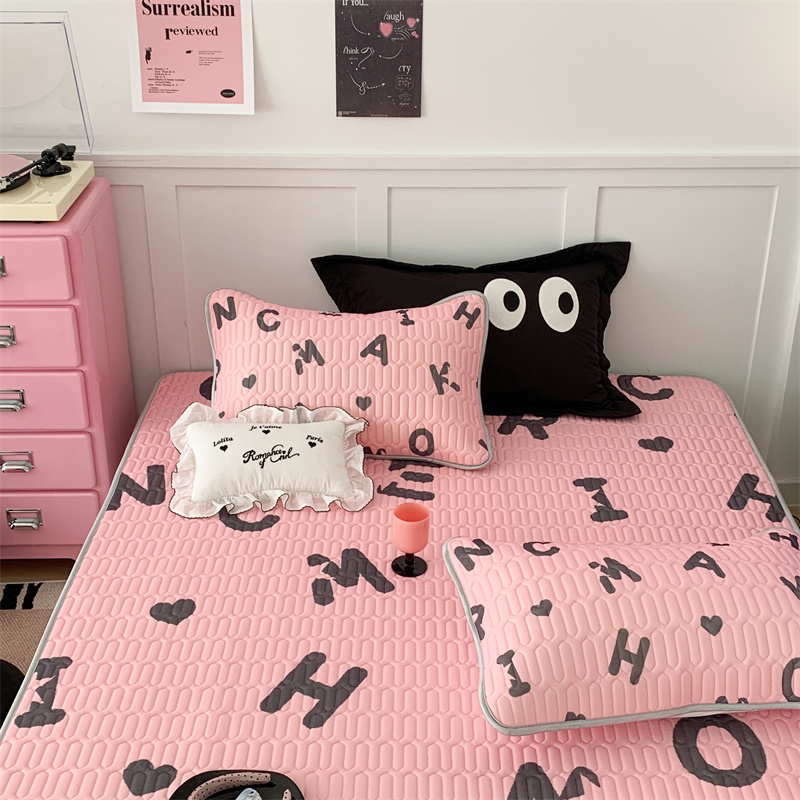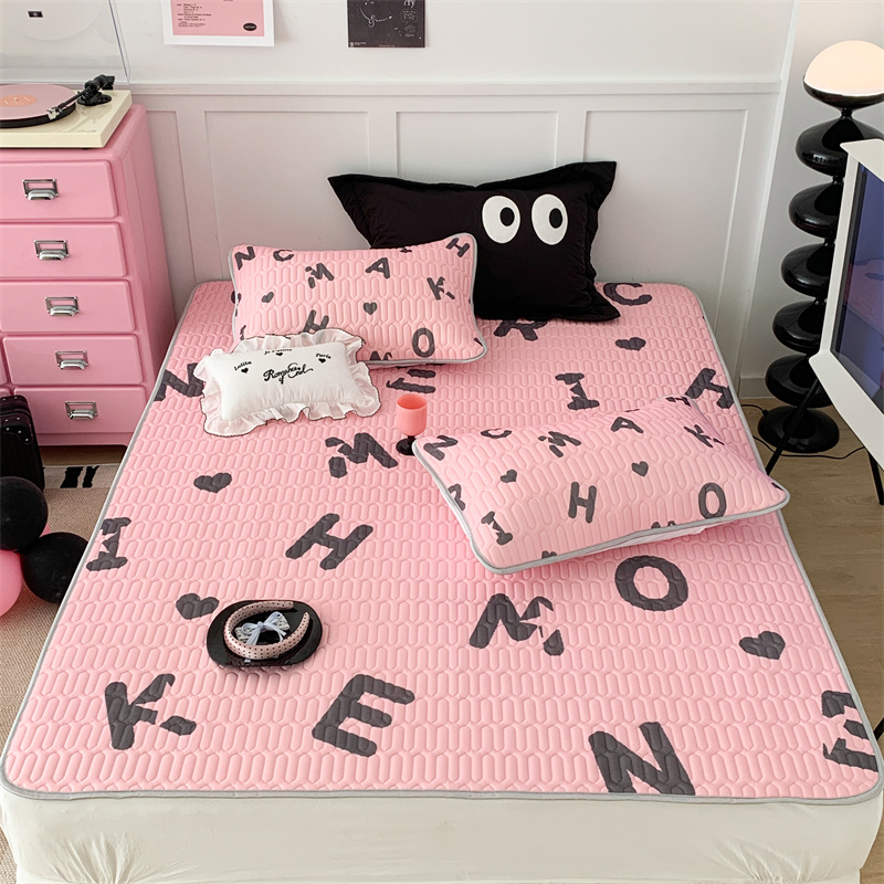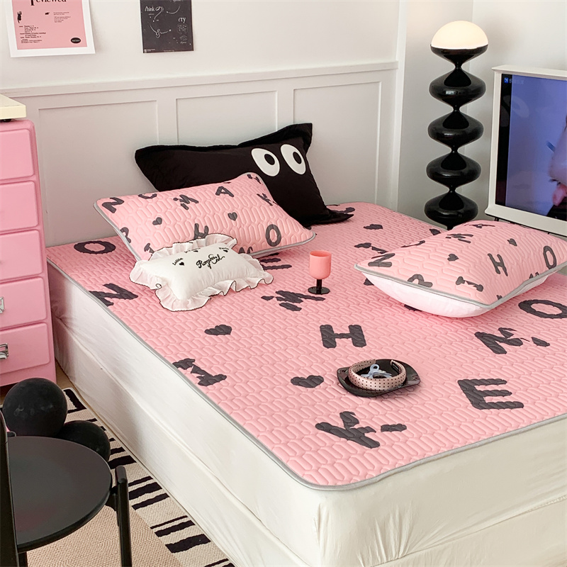 昔可家纺 2023新款甜酷黑粉系列乳胶凉席 黑粉字母
