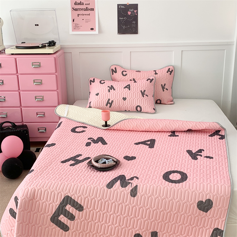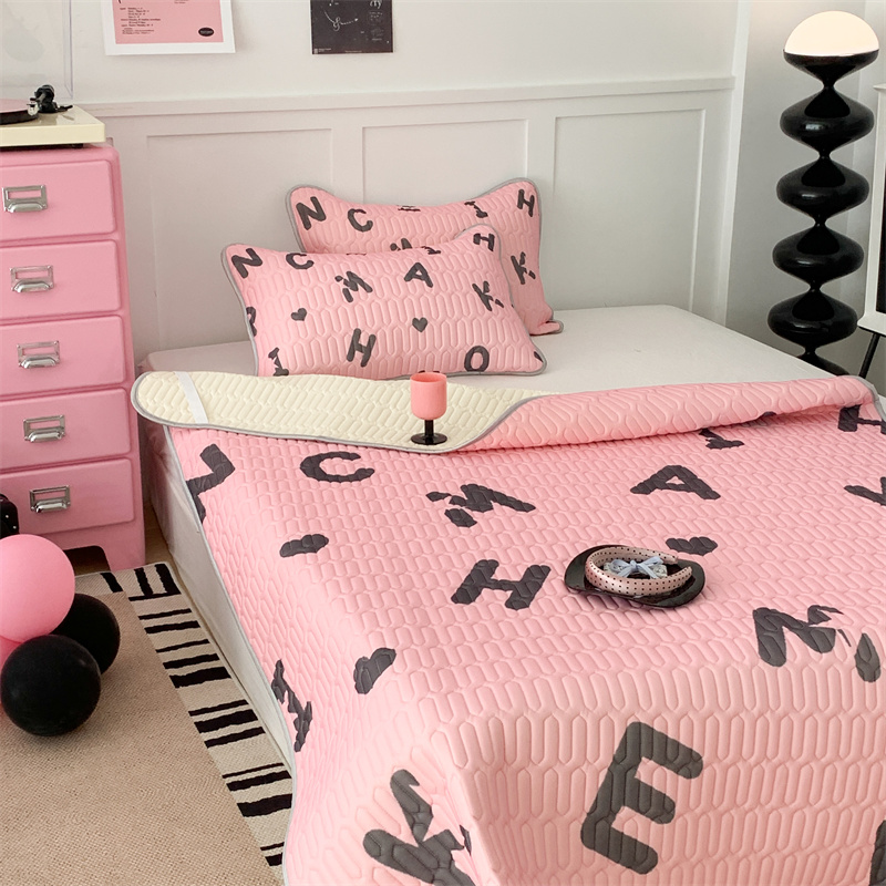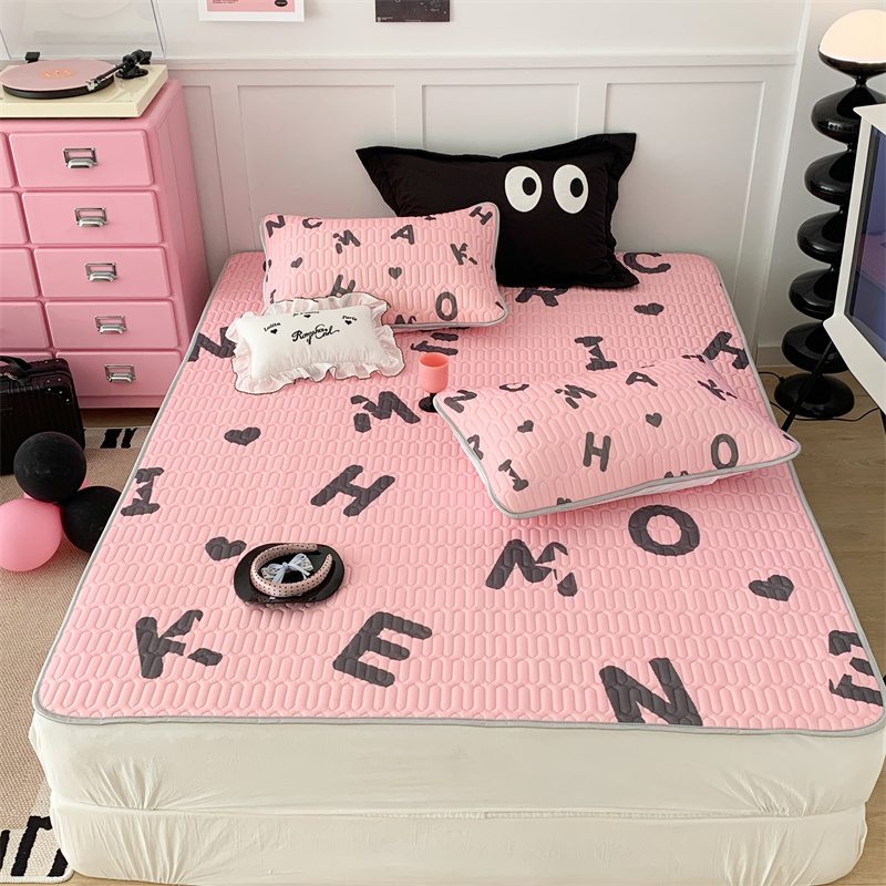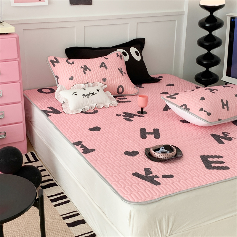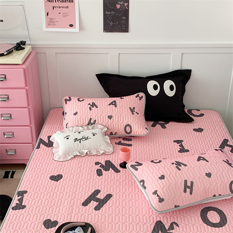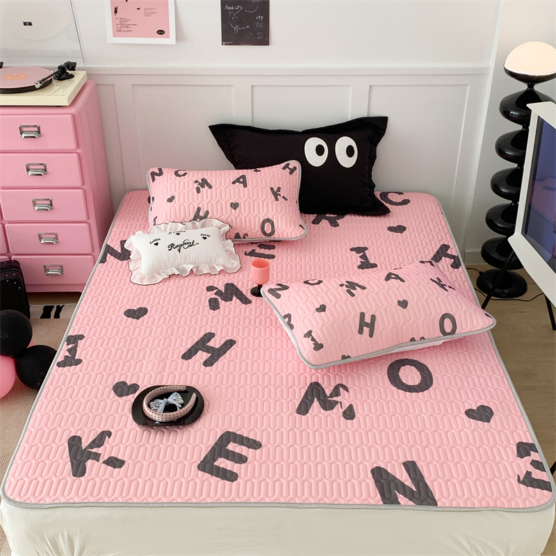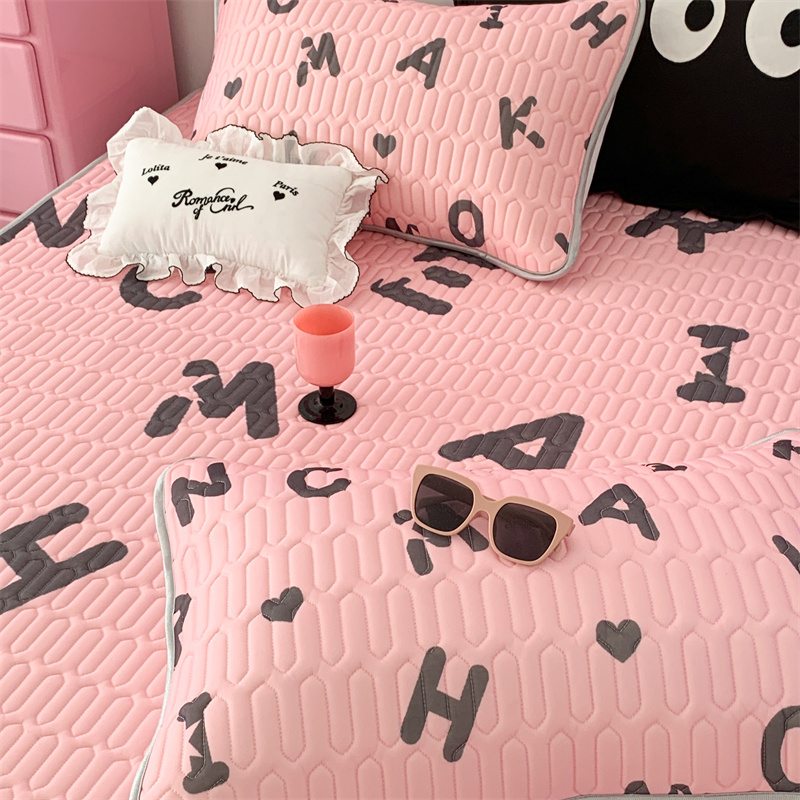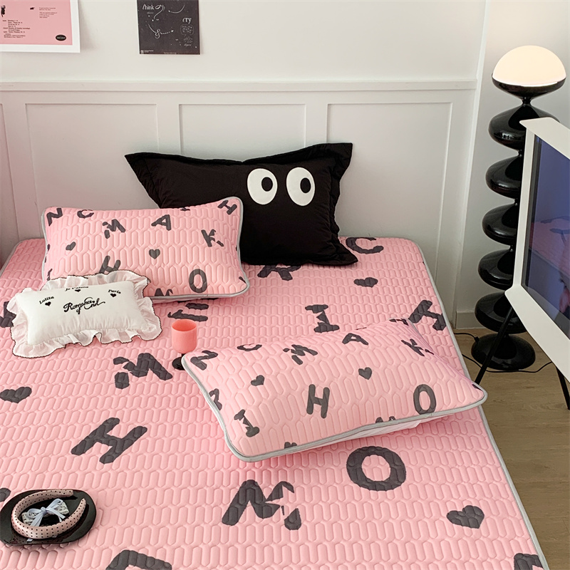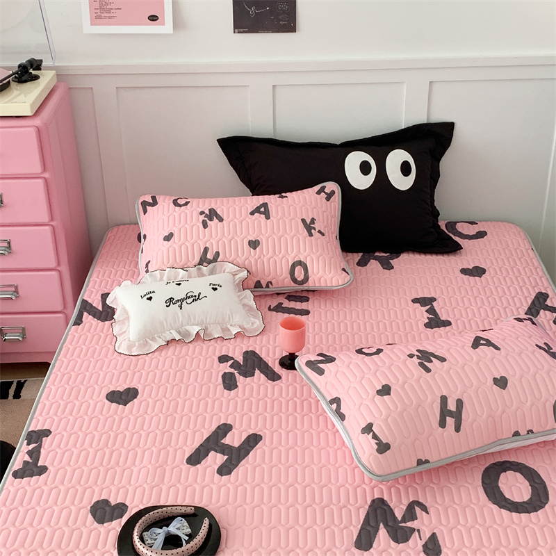 昔可家纺 2023新款甜酷黑粉系列乳胶凉席 黑粉字母