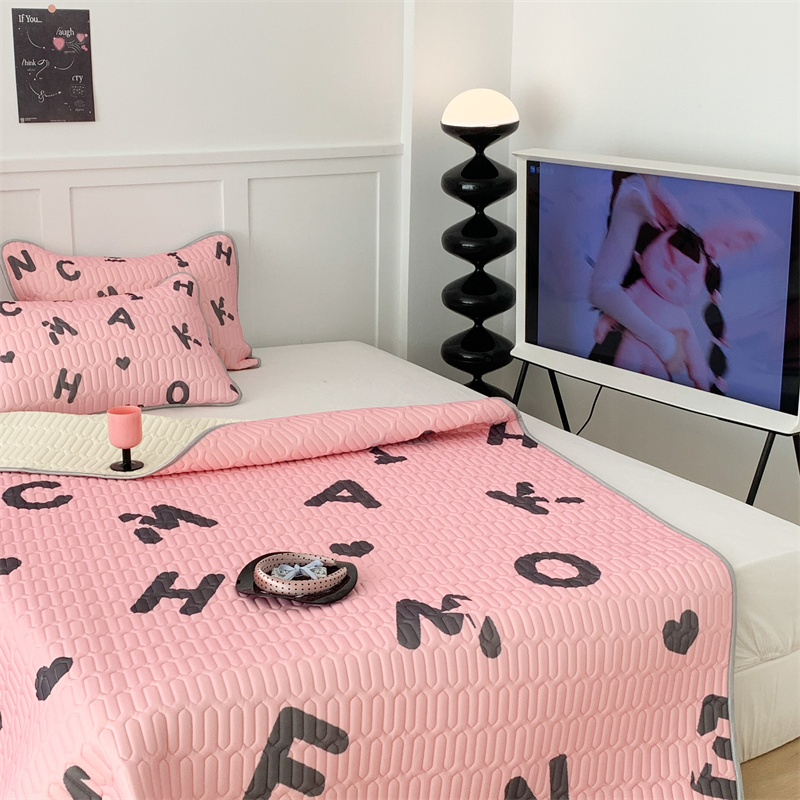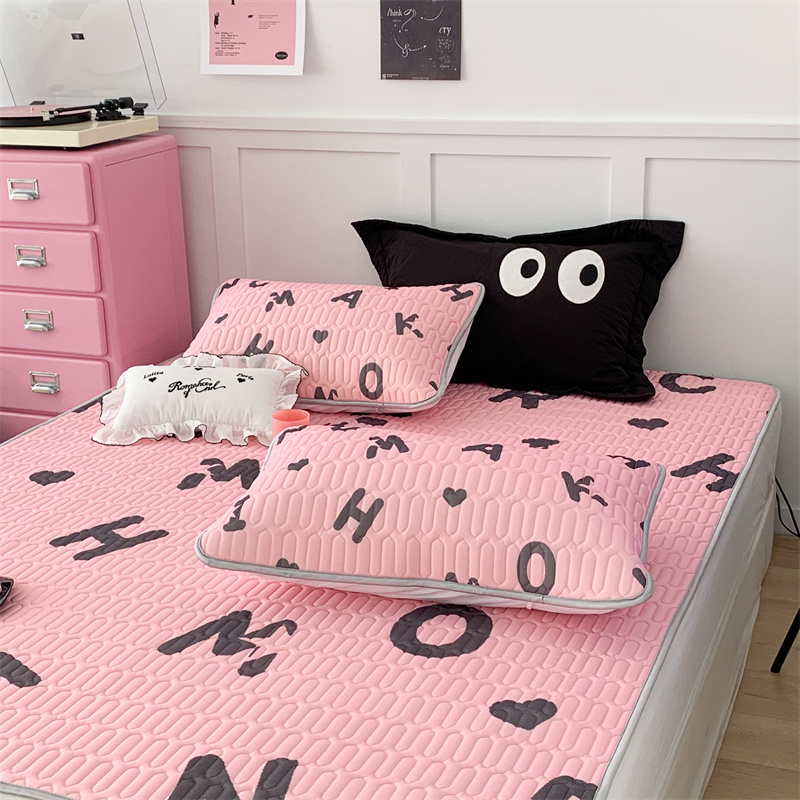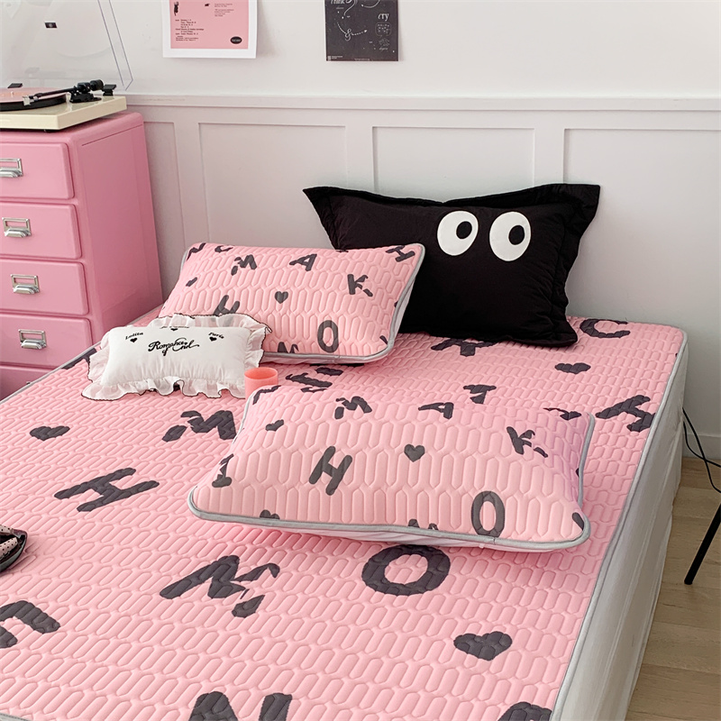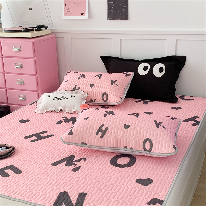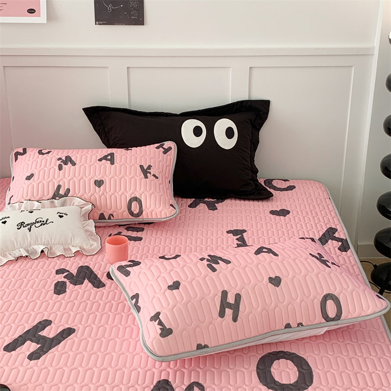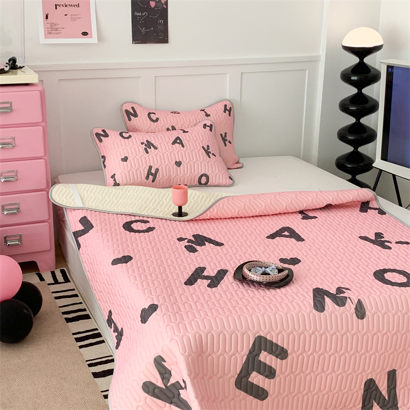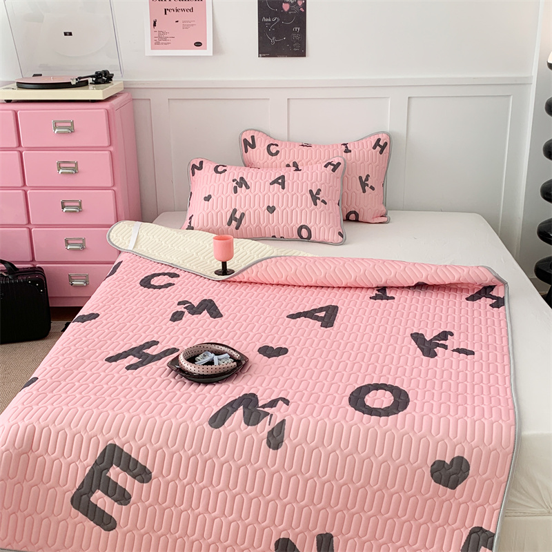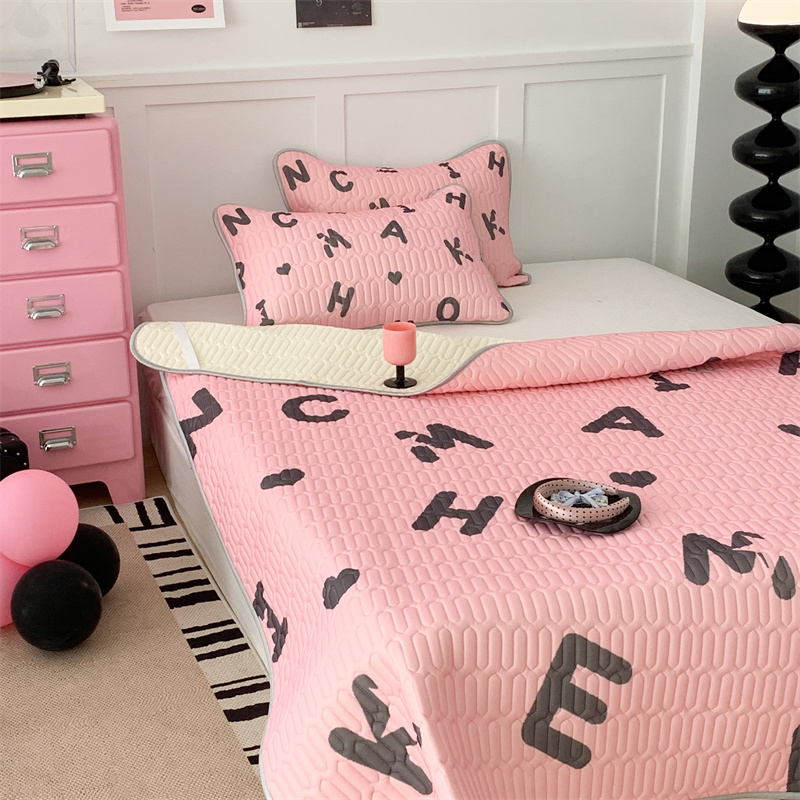 昔可家纺 2023新款甜酷黑粉系列乳胶凉席 黑粉字母