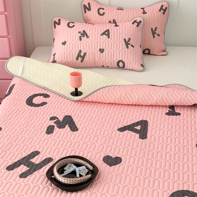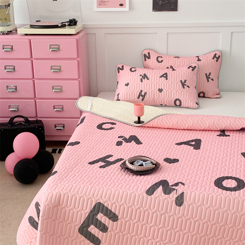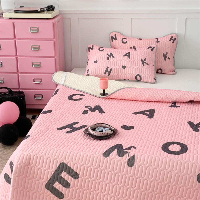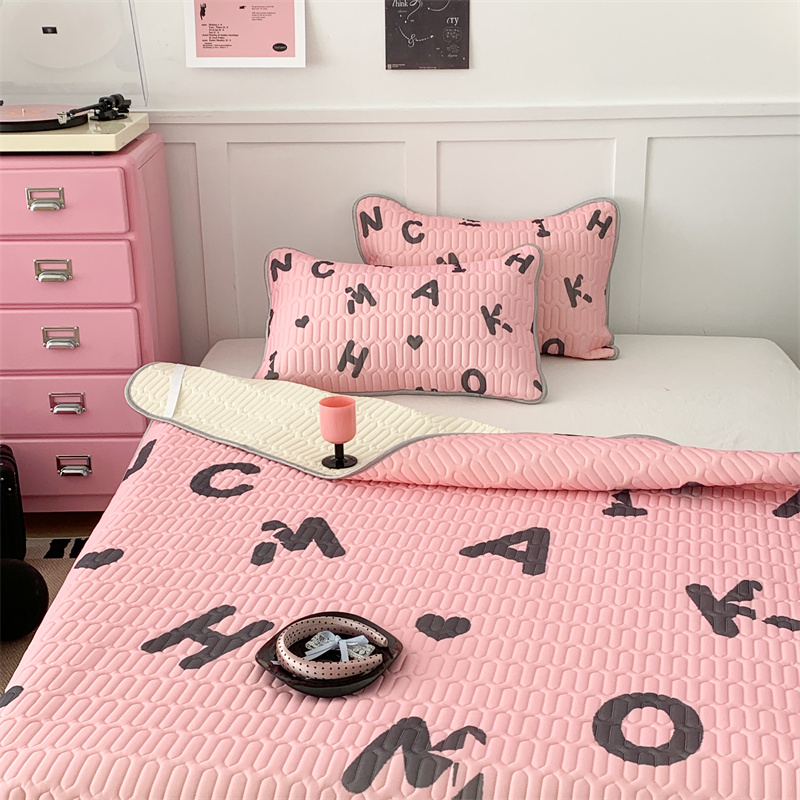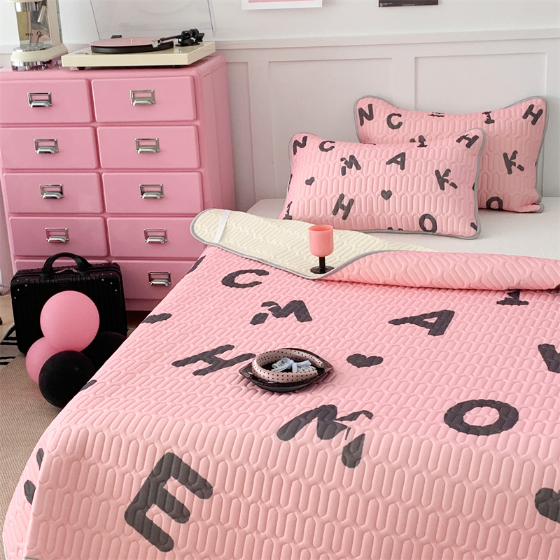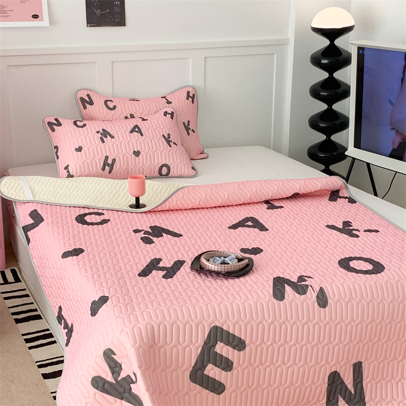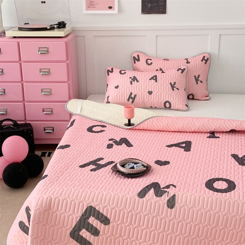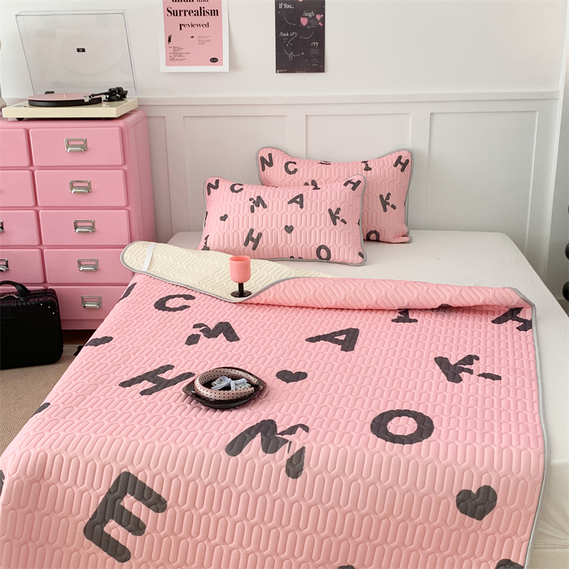昔可家纺 2023新款甜酷黑粉系列乳胶凉席 黑粉字母