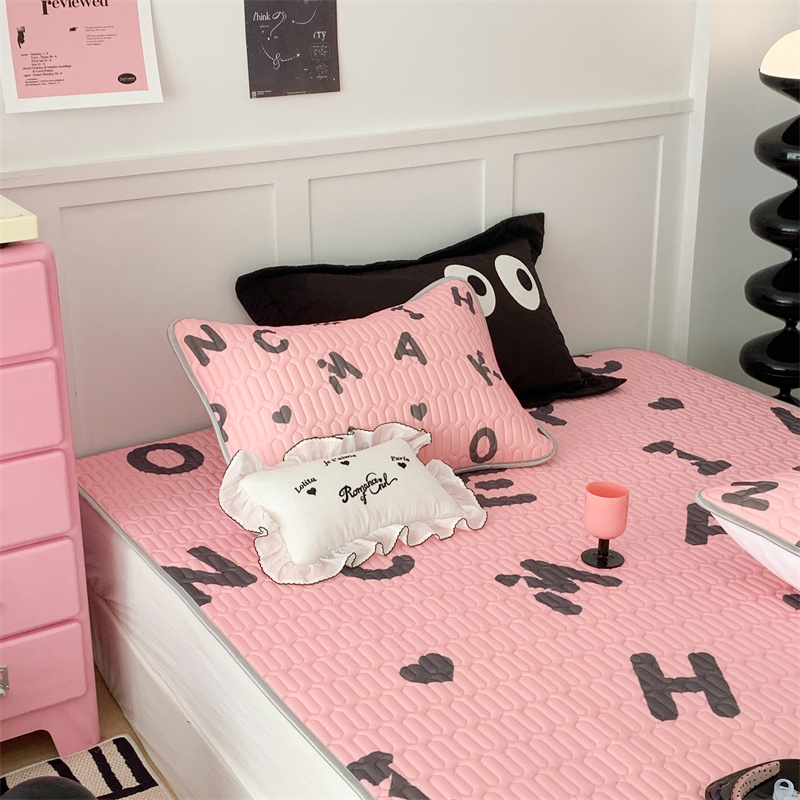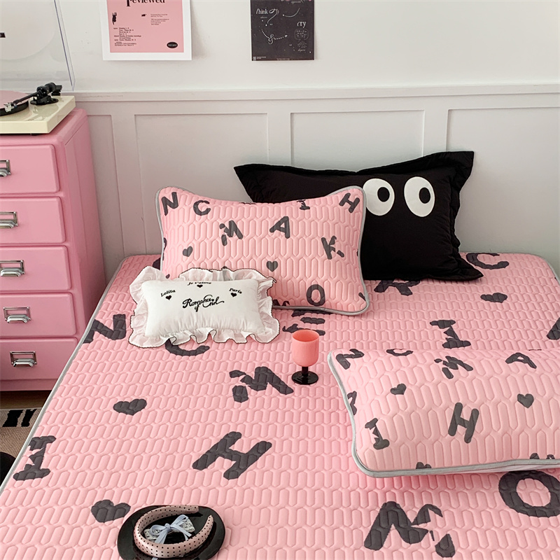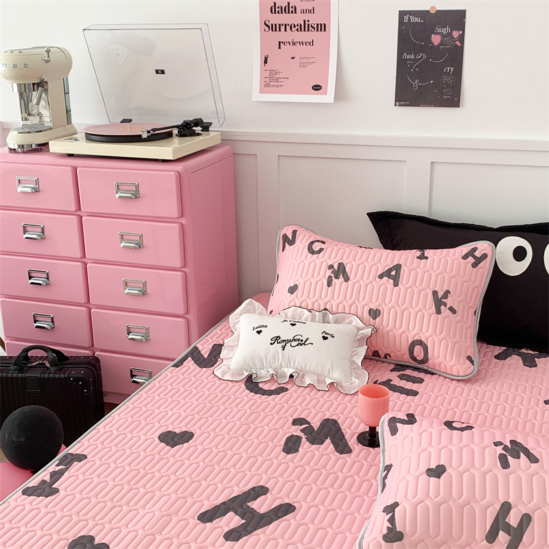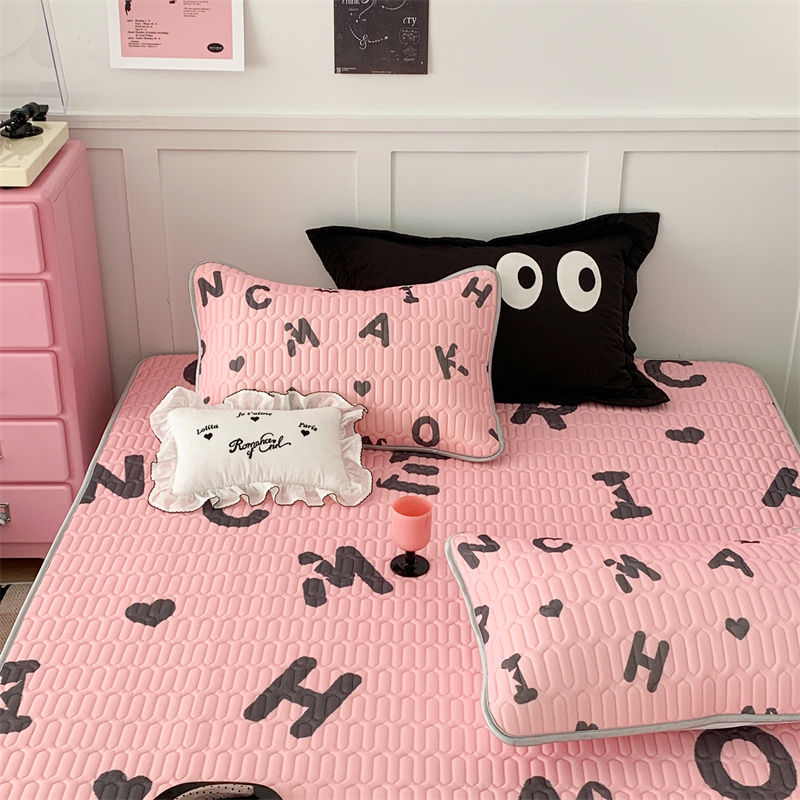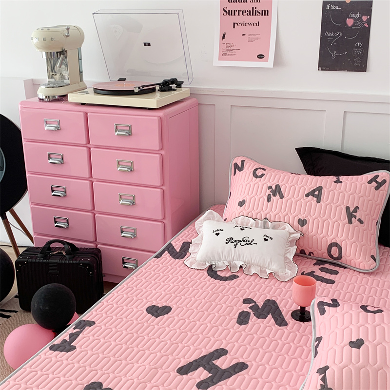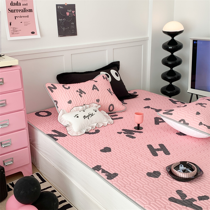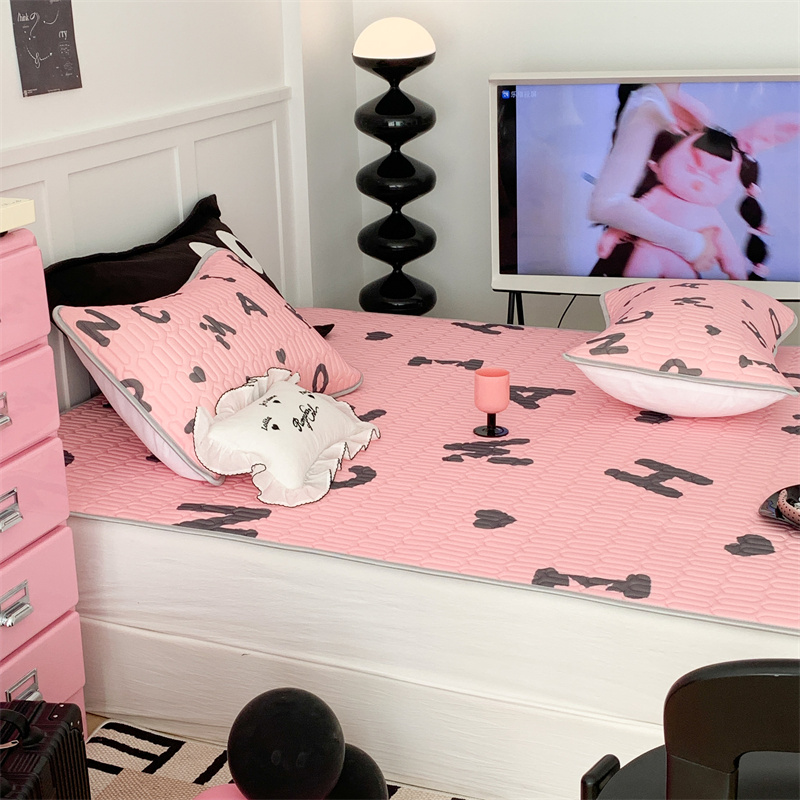 商品名称:昔可家纺 2023新款甜酷黑粉系列乳胶凉席 黑粉字母