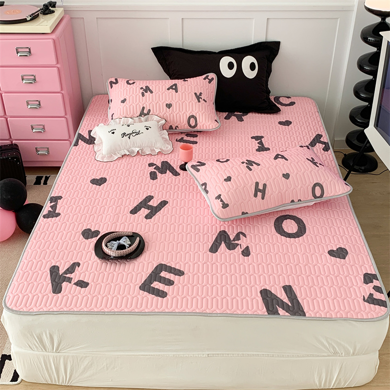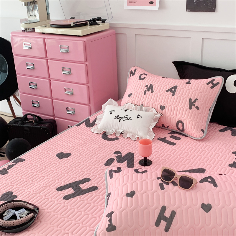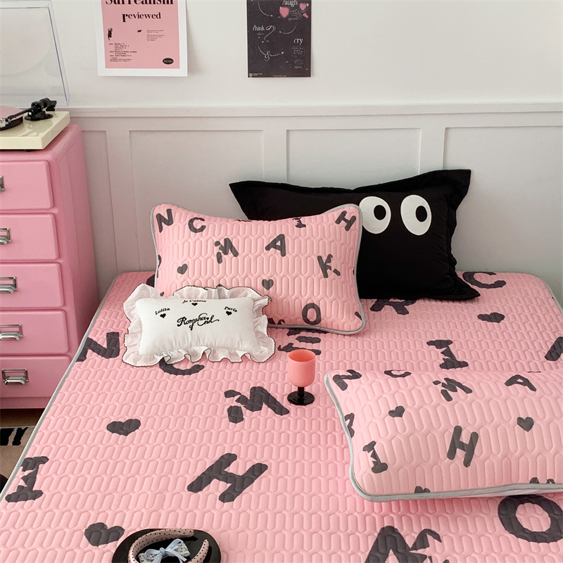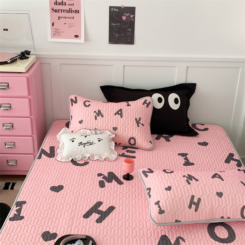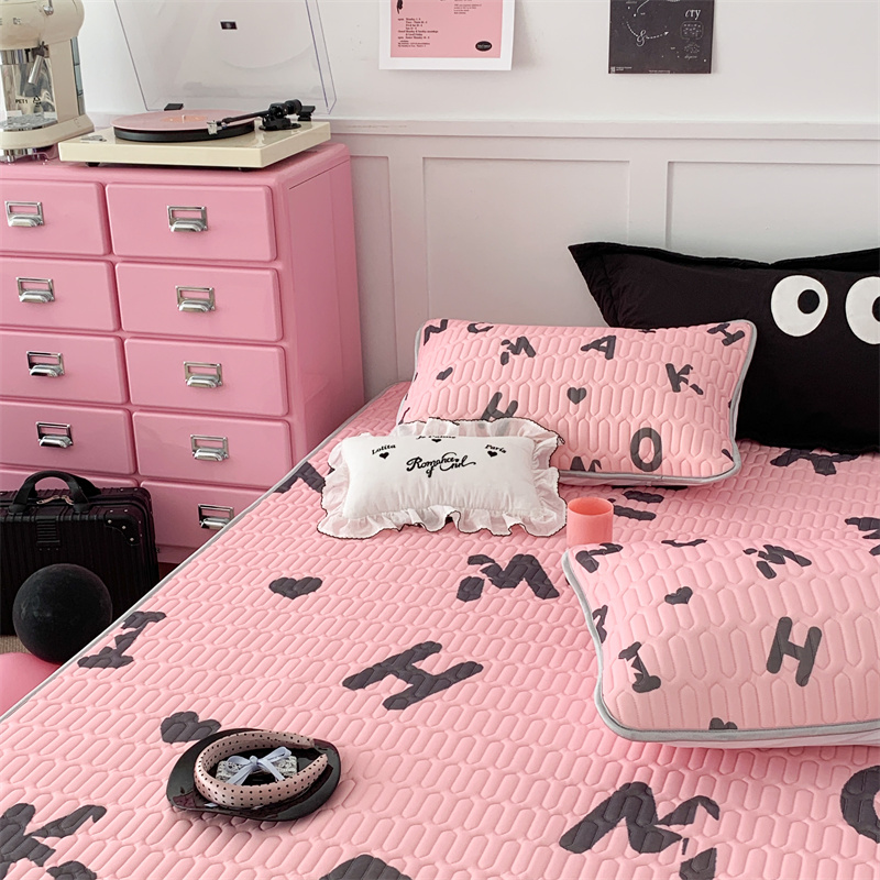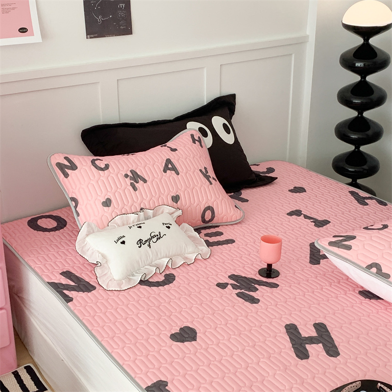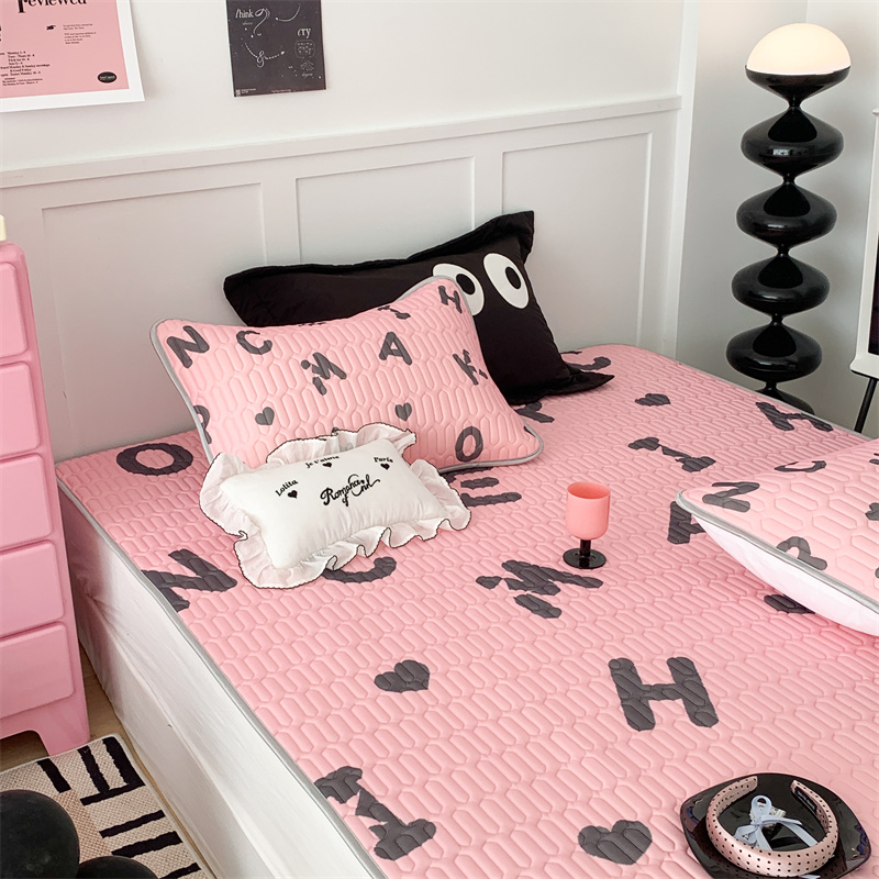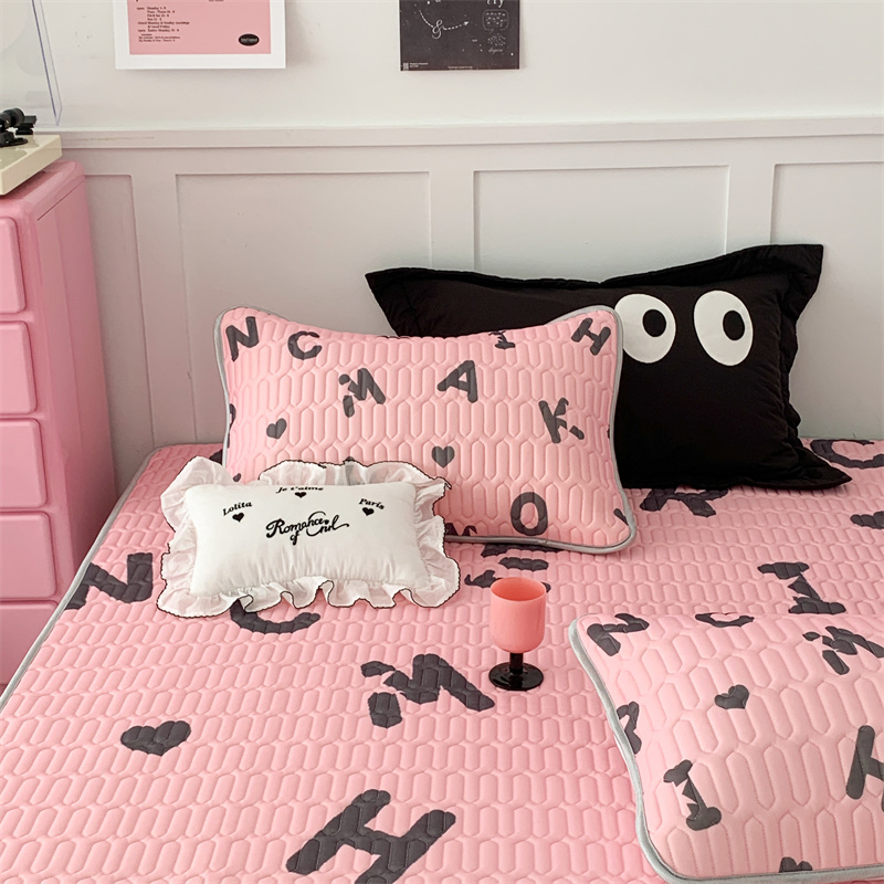 商品名称:昔可家纺 2023新款甜酷黑粉系列乳胶凉席 黑粉字母