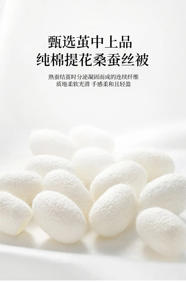 夏被建议选蚕丝净重1斤,春秋被建议选2-3斤,冬被选4斤-6斤