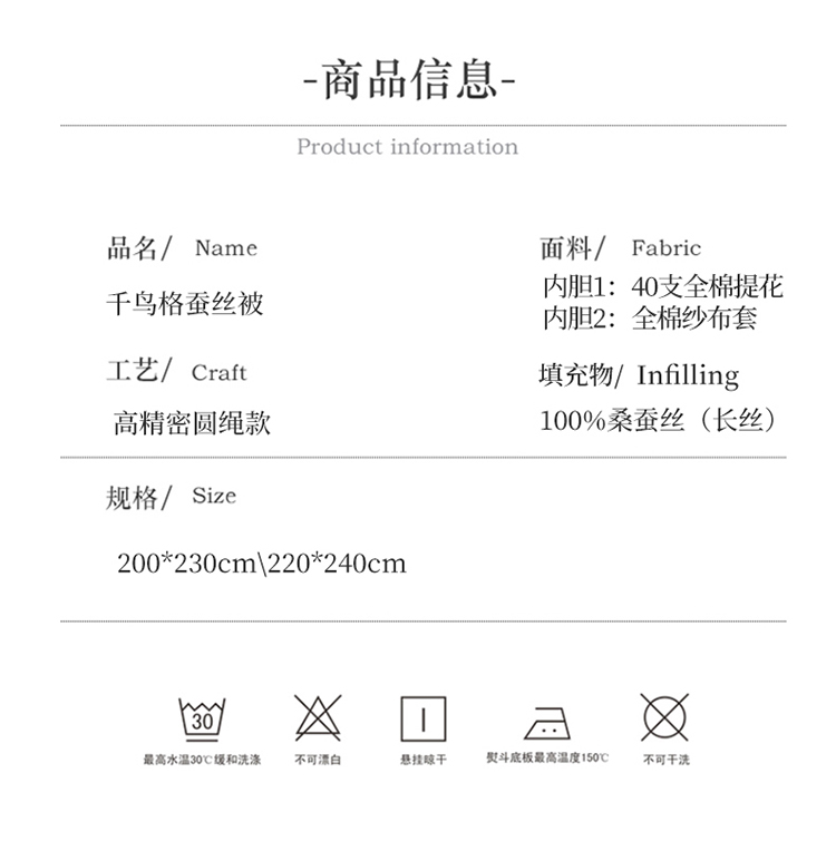 200×230cm(2斤桑蚕丝一级长丝) | ¥375.00 |