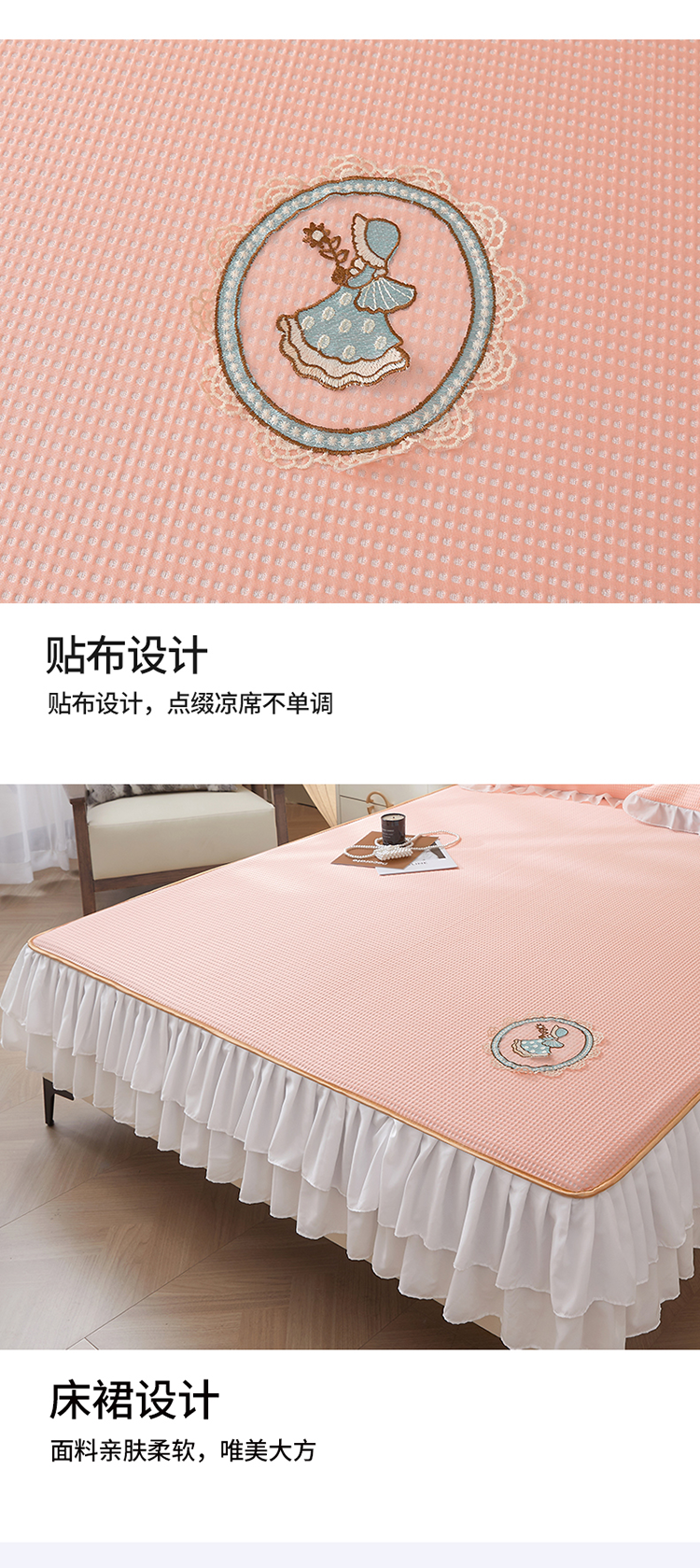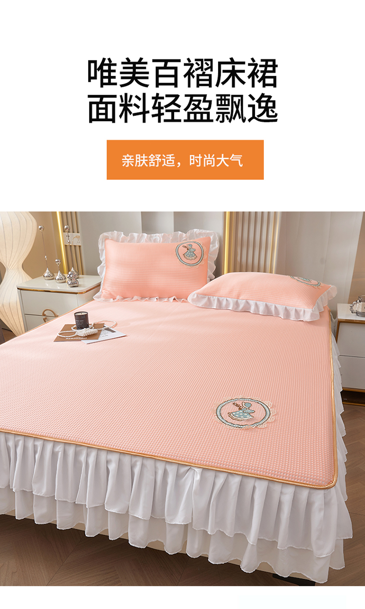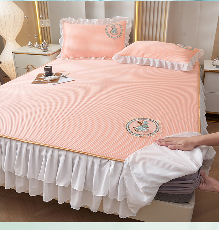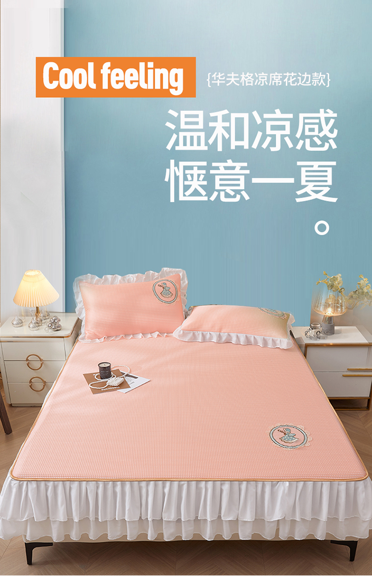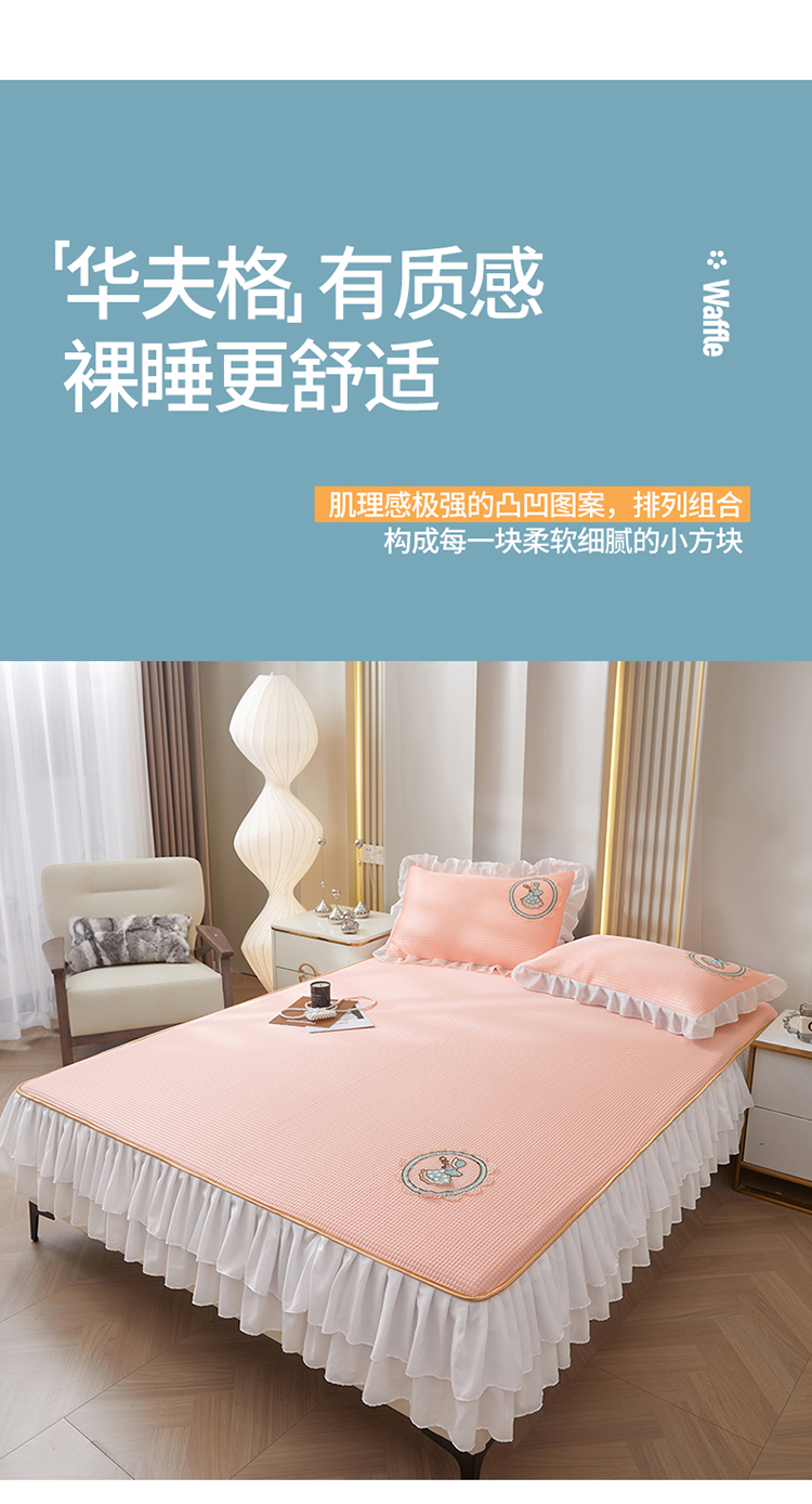 商品名称:家之硕2024新款A类华夫格床笠花边床裙款软凉席三件套浪漫粉