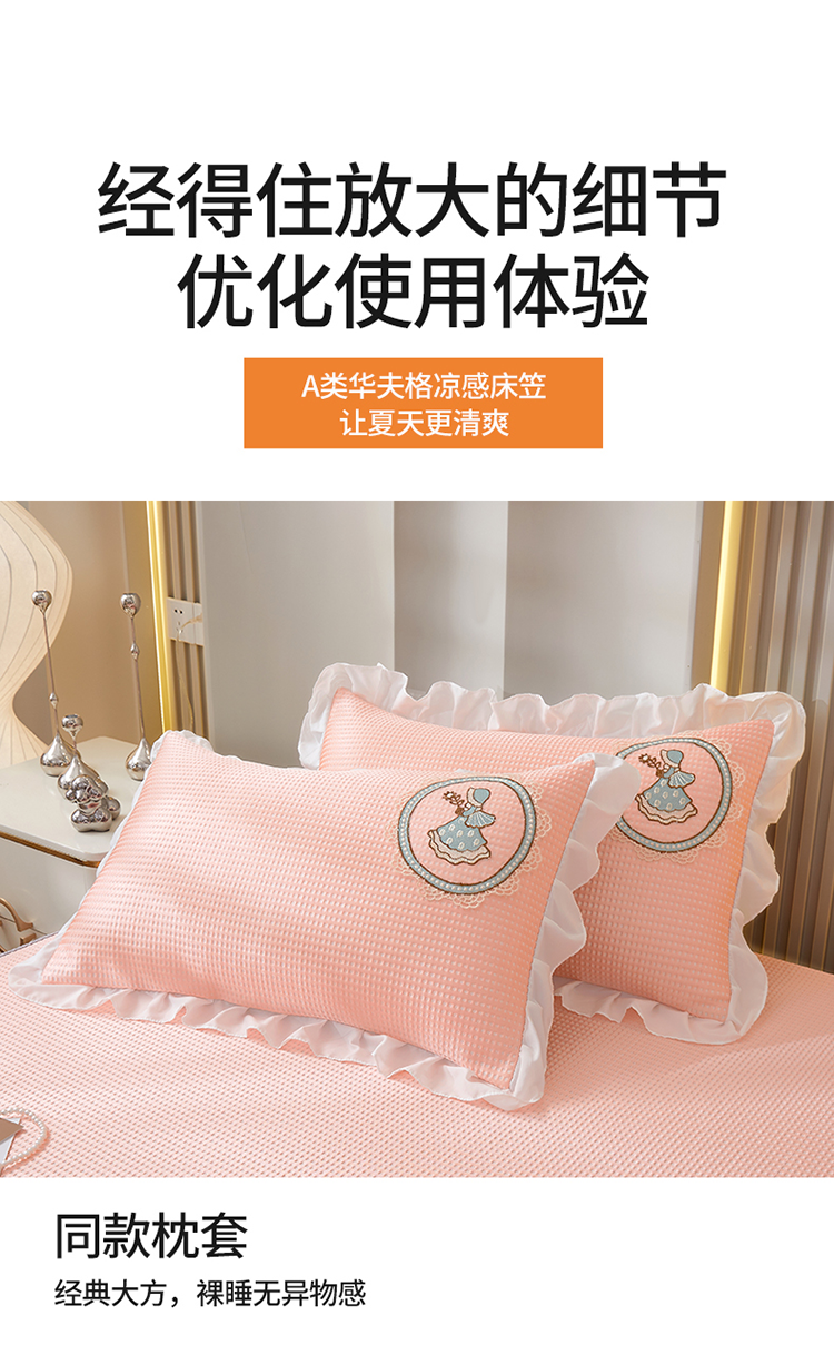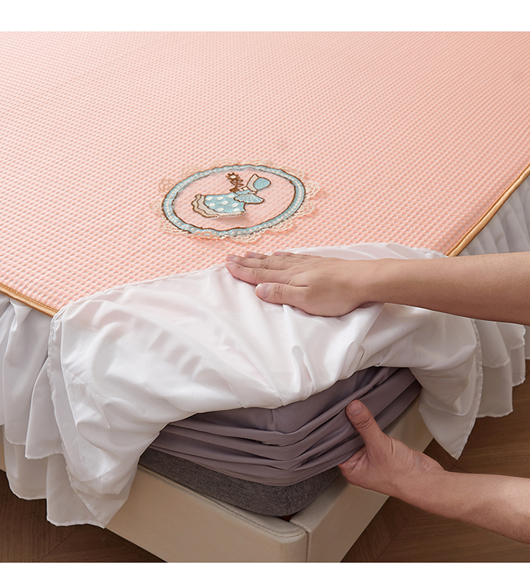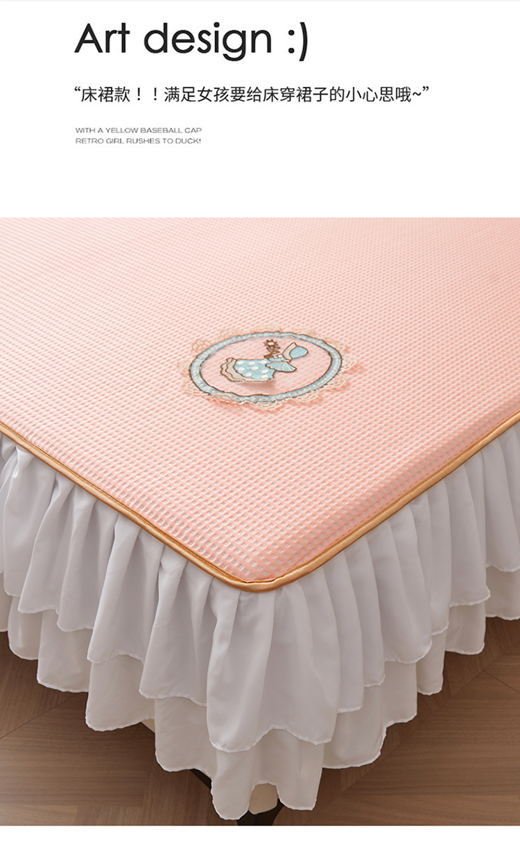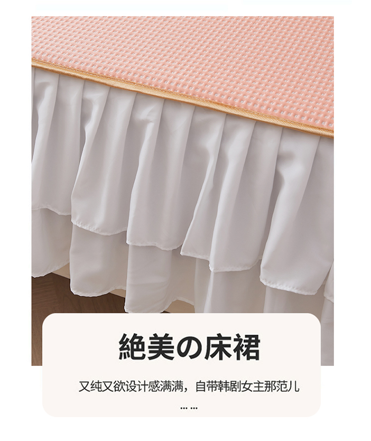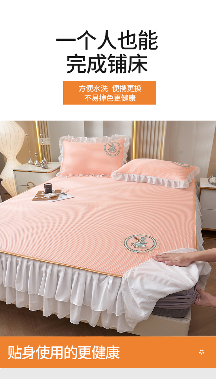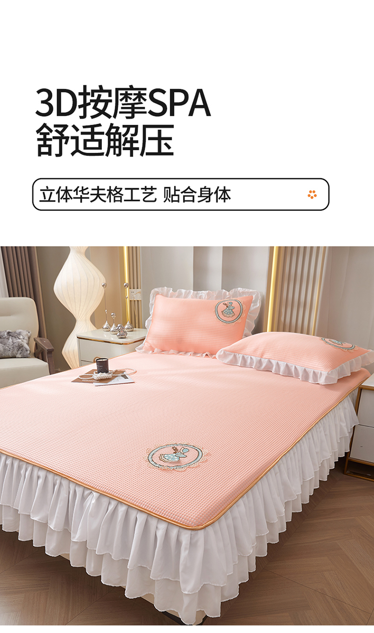 商品名称:家之硕2024新款A类华夫格床笠花边床裙款软凉席三件套浪漫粉