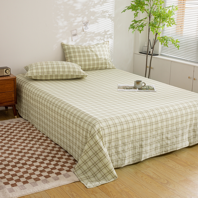 柠萌家居 2023最新无印良品风格A类全棉色织水洗棉单床单 唯格-水绿