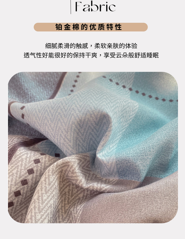 商品名称:妖妖家纺 2023铂金高克重植物羊绒130克斜纹印花四件套 晨暮