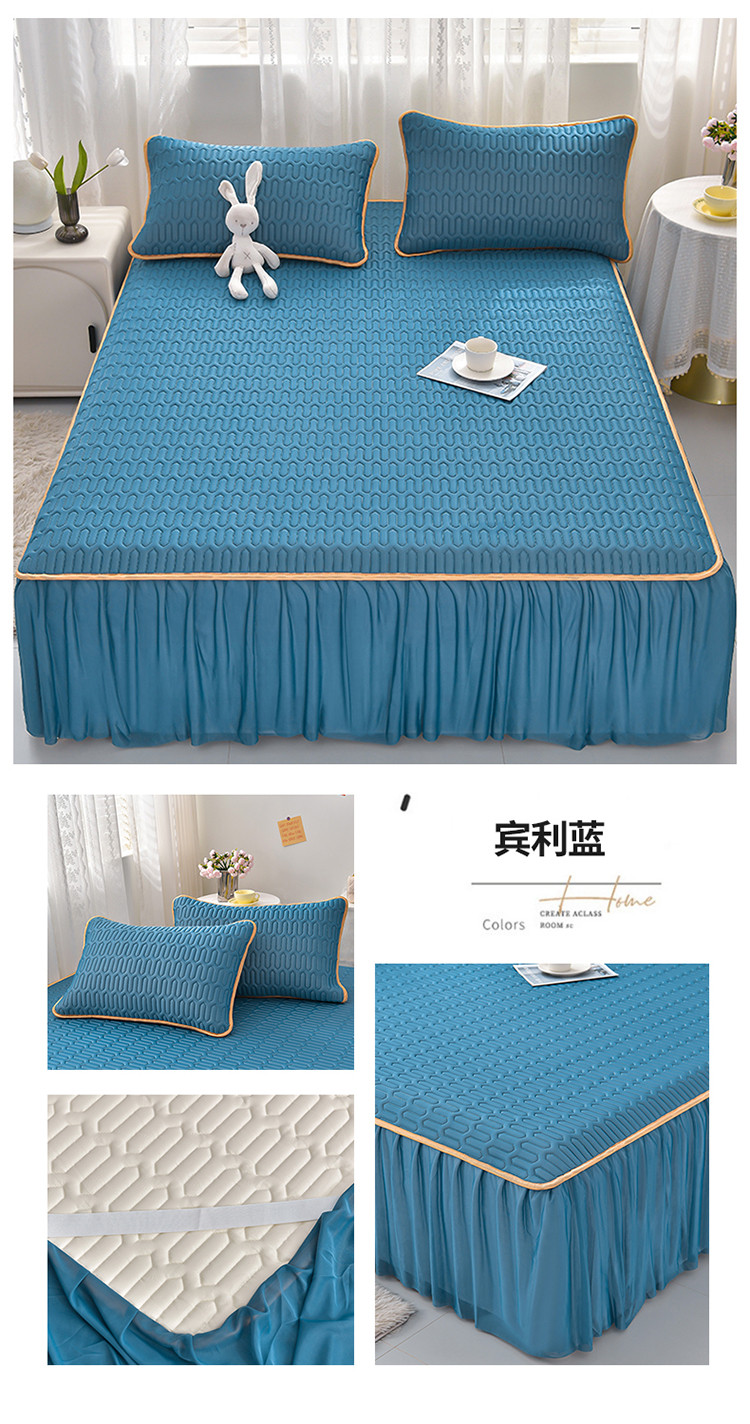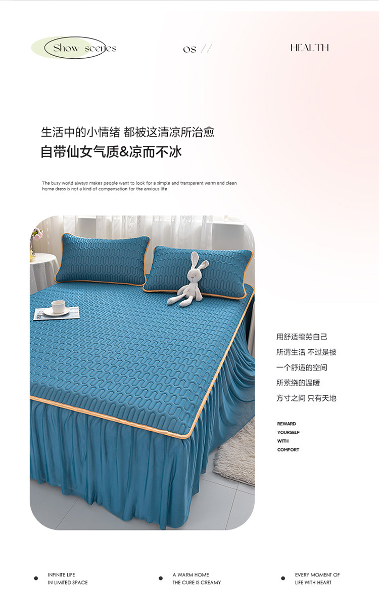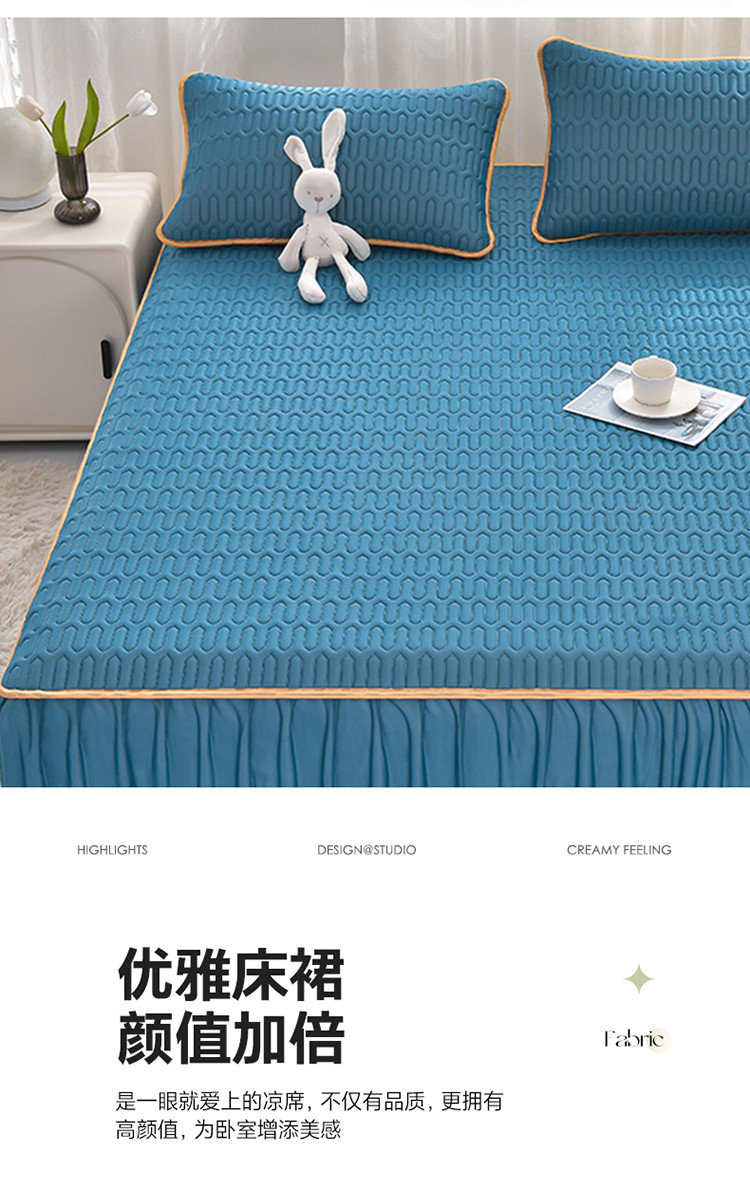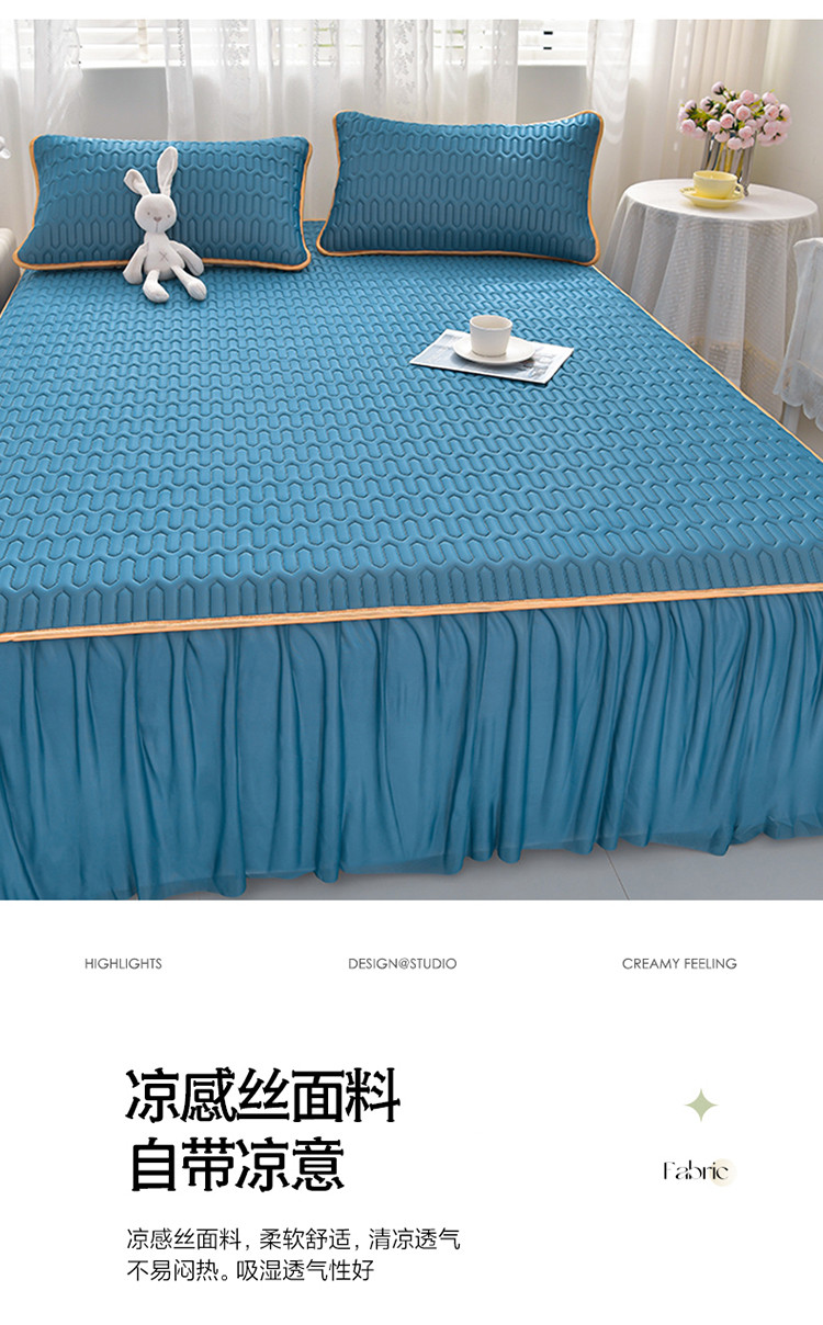 诺梵家纺 2024新款0.5凉感丝乳胶凉席床裙款三件套 宾利蓝