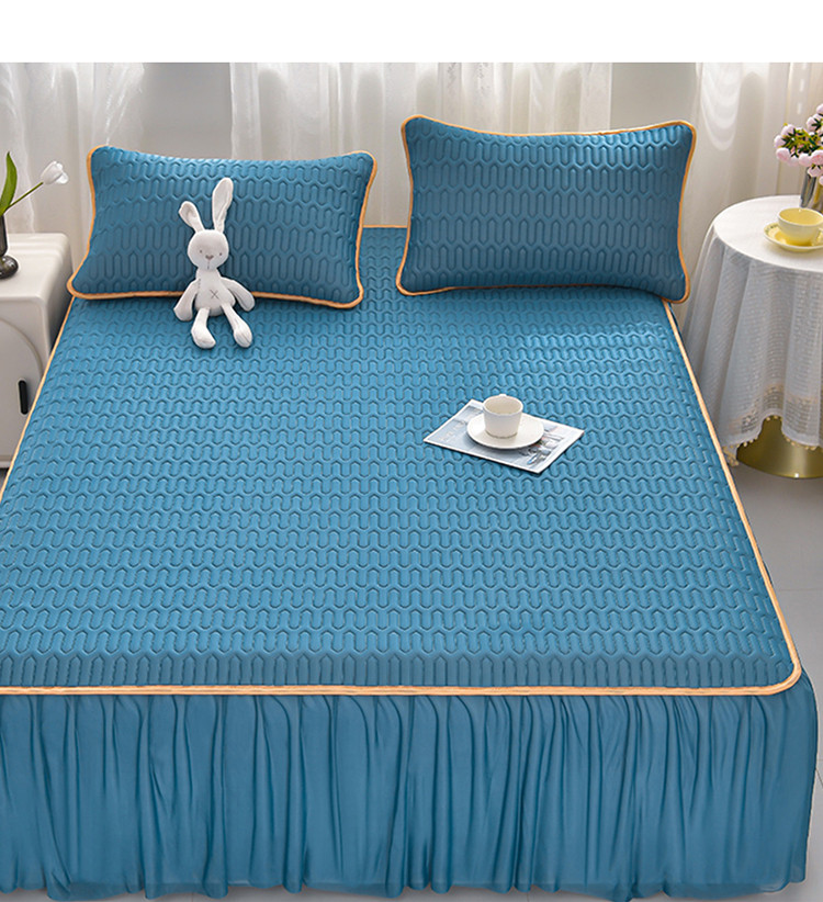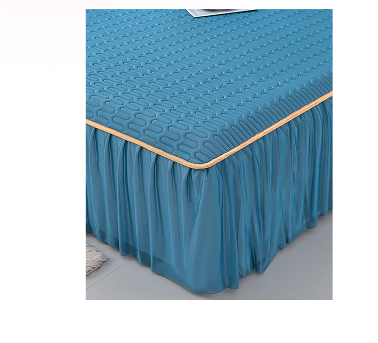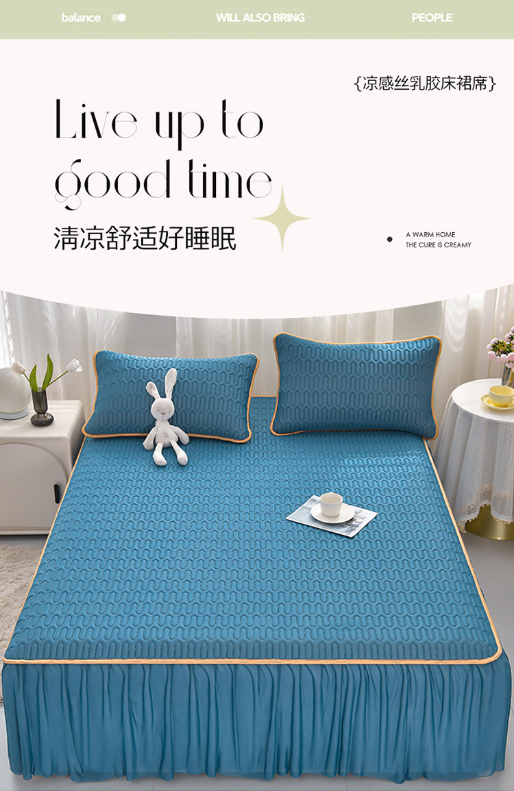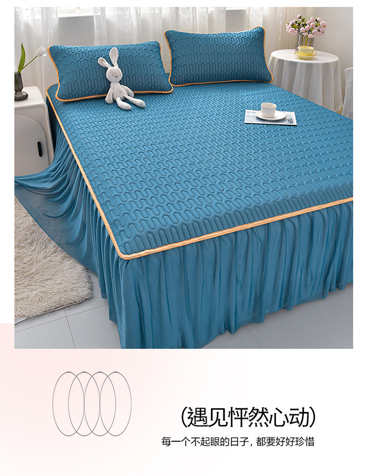诺梵家纺 2024新款0.5凉感丝乳胶凉席床裙款三件套 宾利蓝
