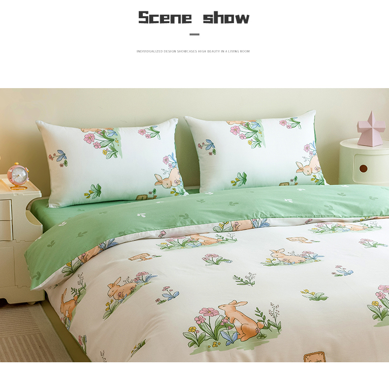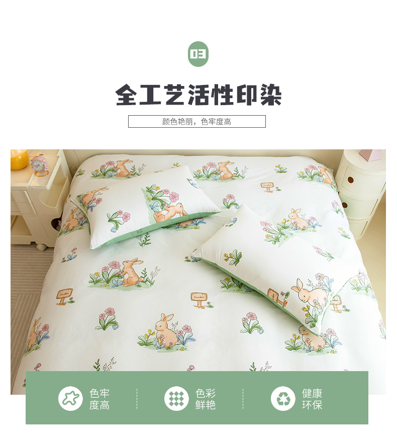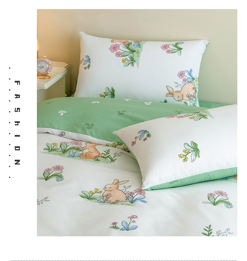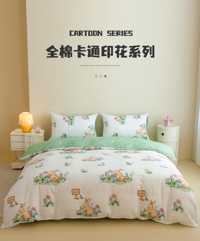 芃成家纺 2023新款全棉13070四件套 花园兔