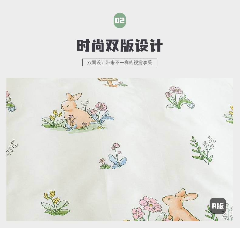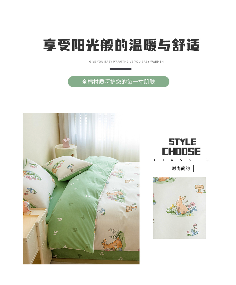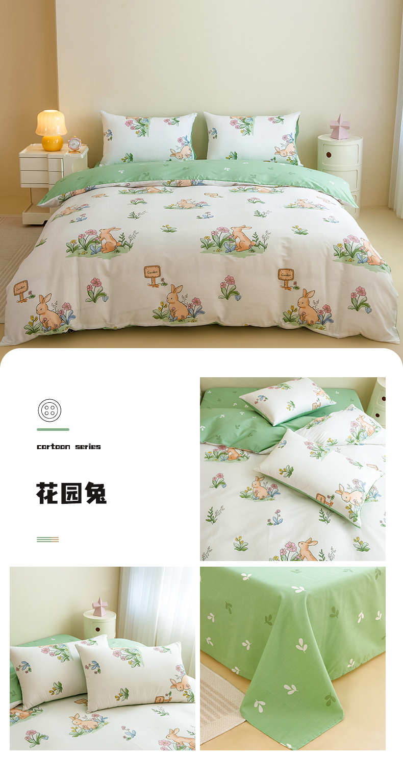 商品名称:芃成家纺 2023新款全棉13070四件套 花园兔