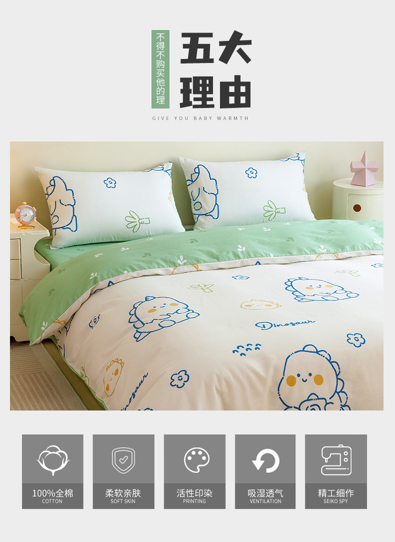 商品名称:芃成家纺 2023新款全棉13070四件套 小恐龙