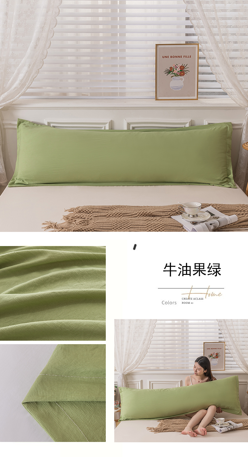 新款水洗棉麻单人枕头套亲肤双人枕套 牛油果绿