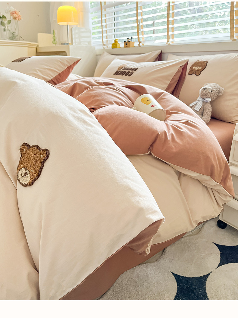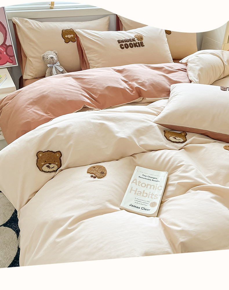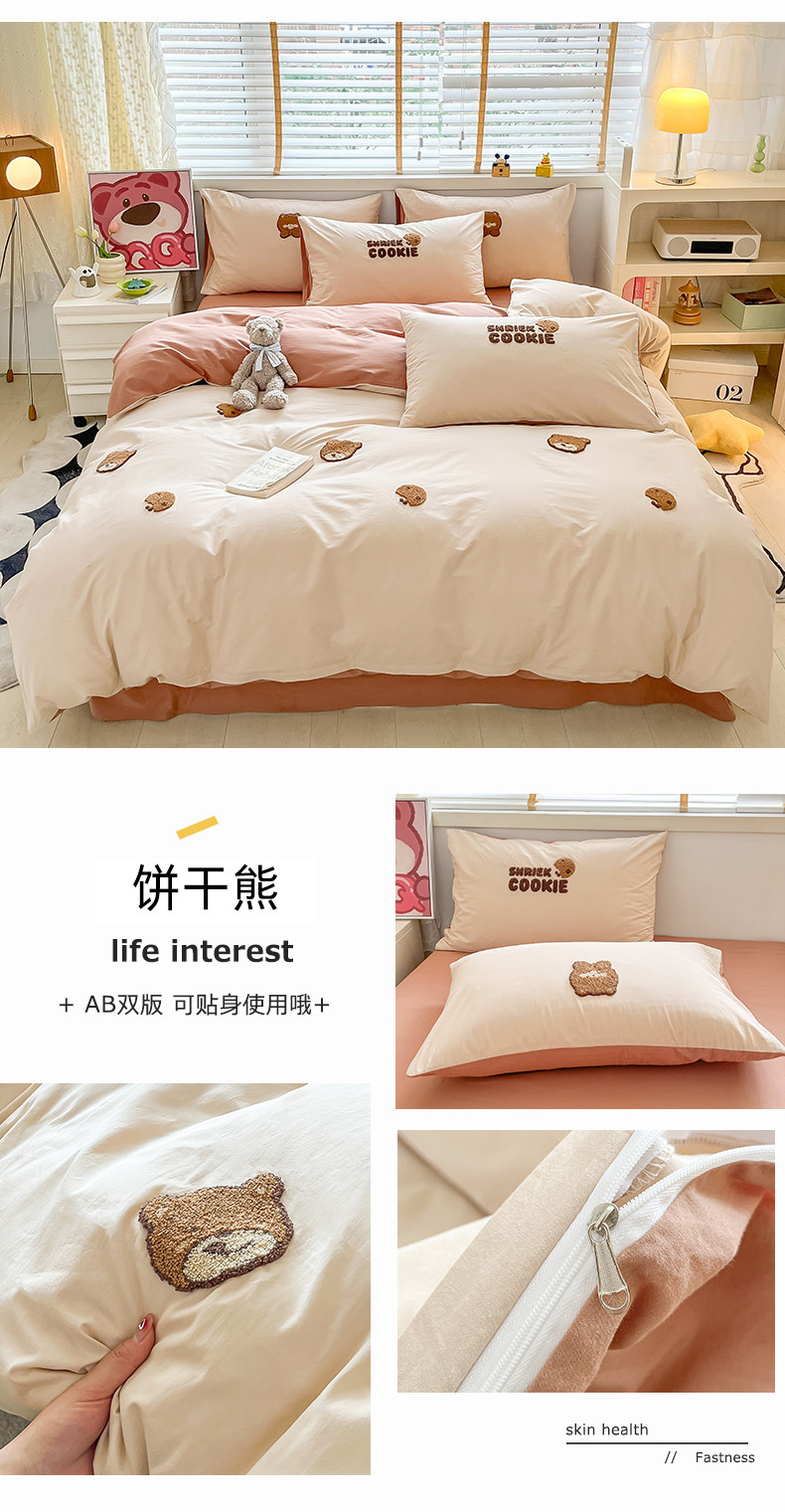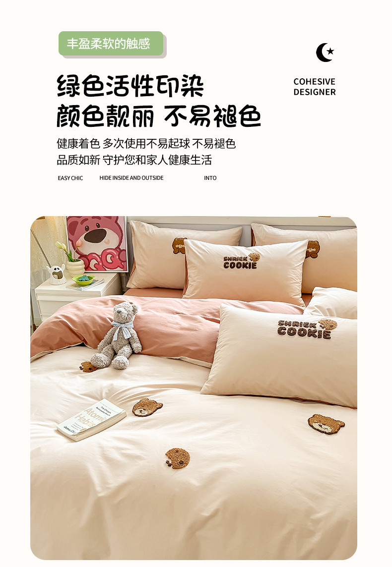 当前位置: 91家纺网 > 商品网购 > 床品套件 > 四件套 > 毛巾绣四件套 > 丽美人家纺 2023新款水洗棉卡通毛巾绣四件套 饼干熊