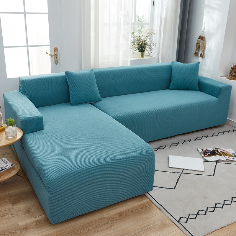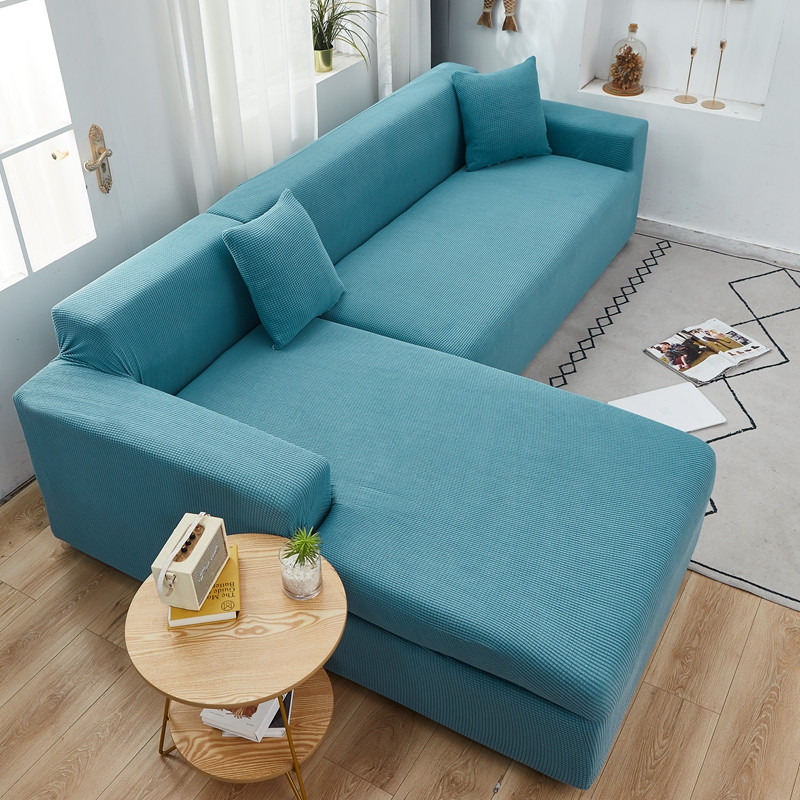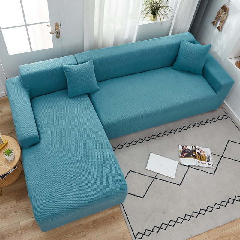 商品名称:丝绮鹿 2023新款玉米粒全包沙发套 贵妃沙发-西湖蓝