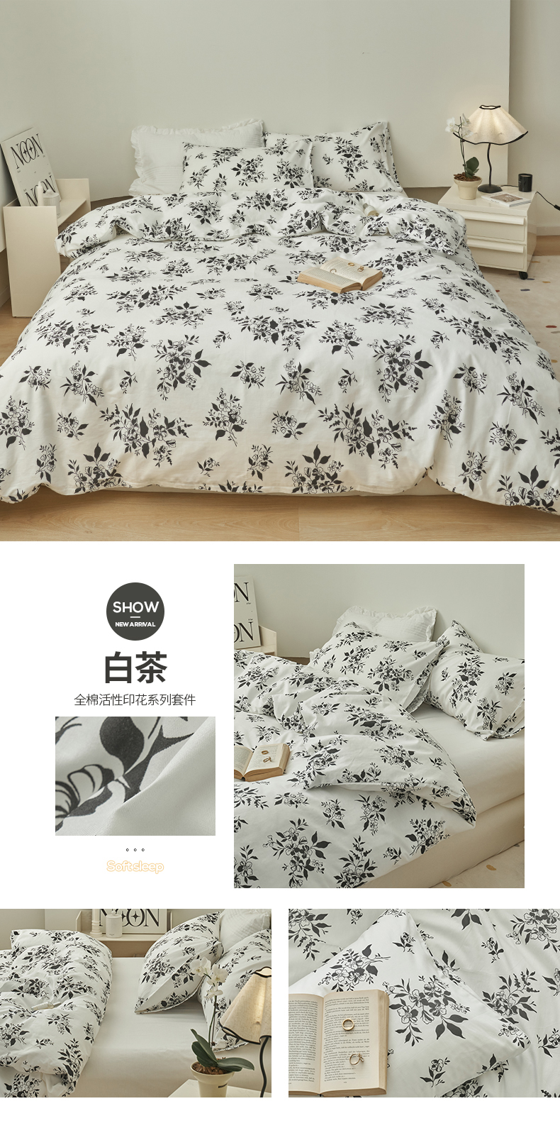 当前位置: 91家纺网 > 商品网购 > 床品套件 > 四件套 > 全棉普通四件套 > 窝米 2023夏季新品13370全棉四件花卉风系列 白茶