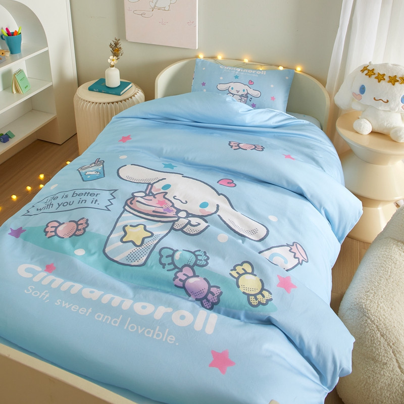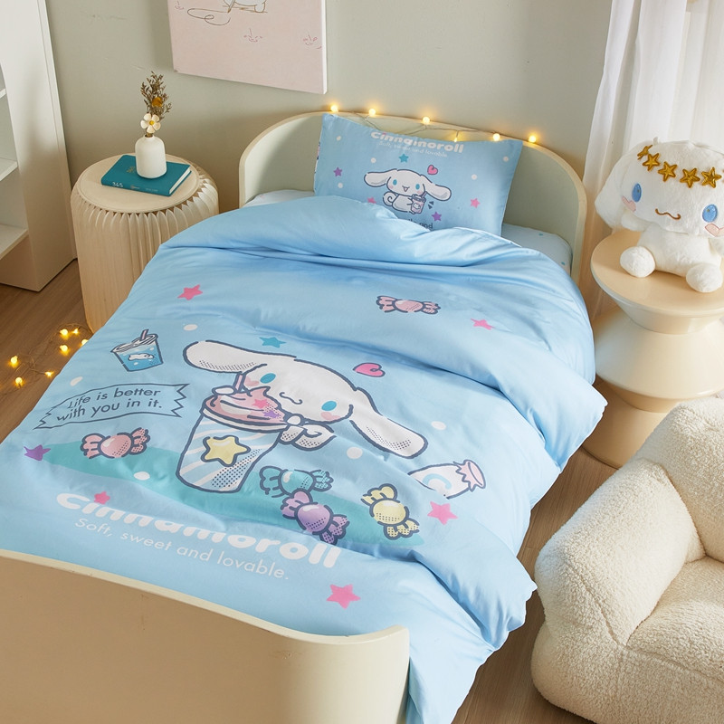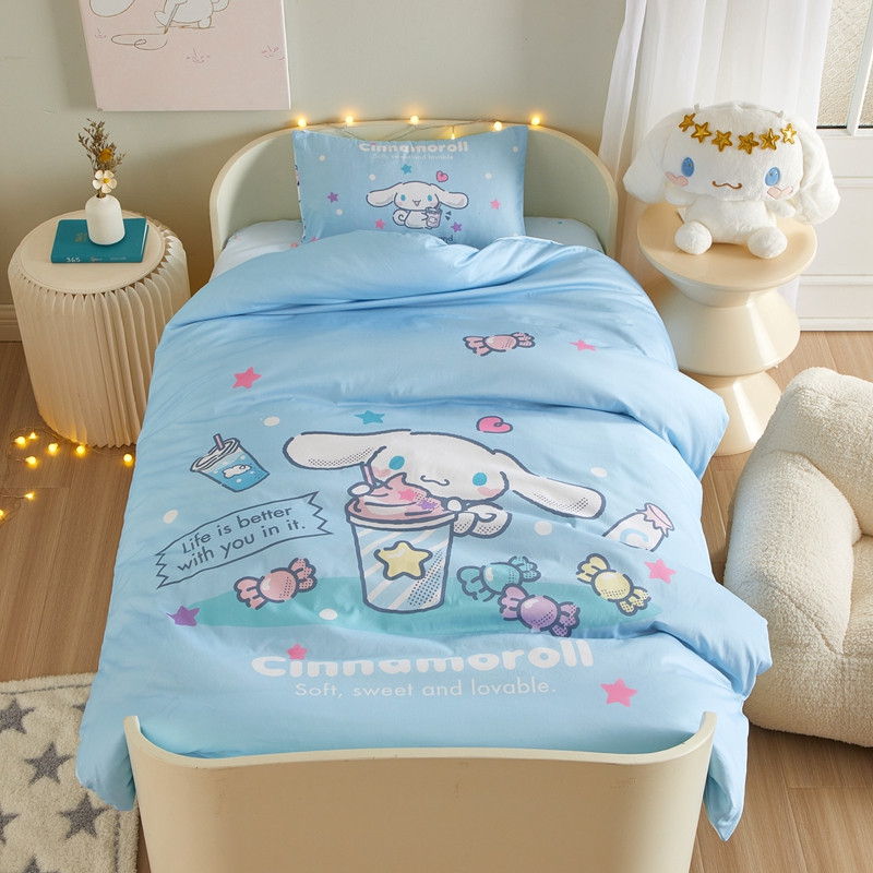 蘭菲 2023新款幼儿园全棉印染三丽鸥全棉大版卡通三件套 奶茶来了