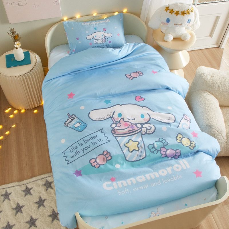 商品名称:蘭菲 2023新款幼儿园全棉印染三丽鸥全棉大版卡通三件套 奶茶来了