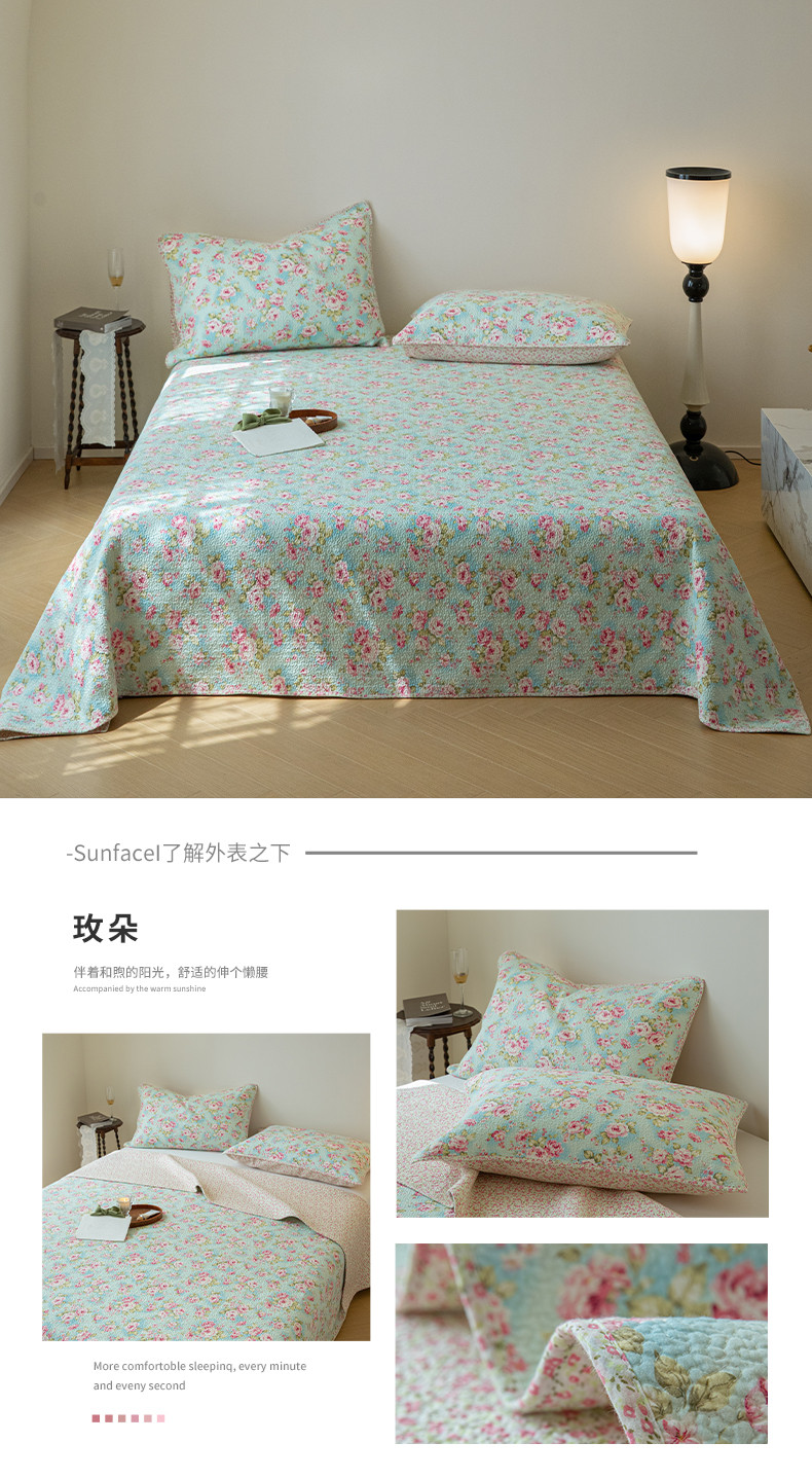 上喜 热卖双面全棉印花密绗床盖三件套 玫朵