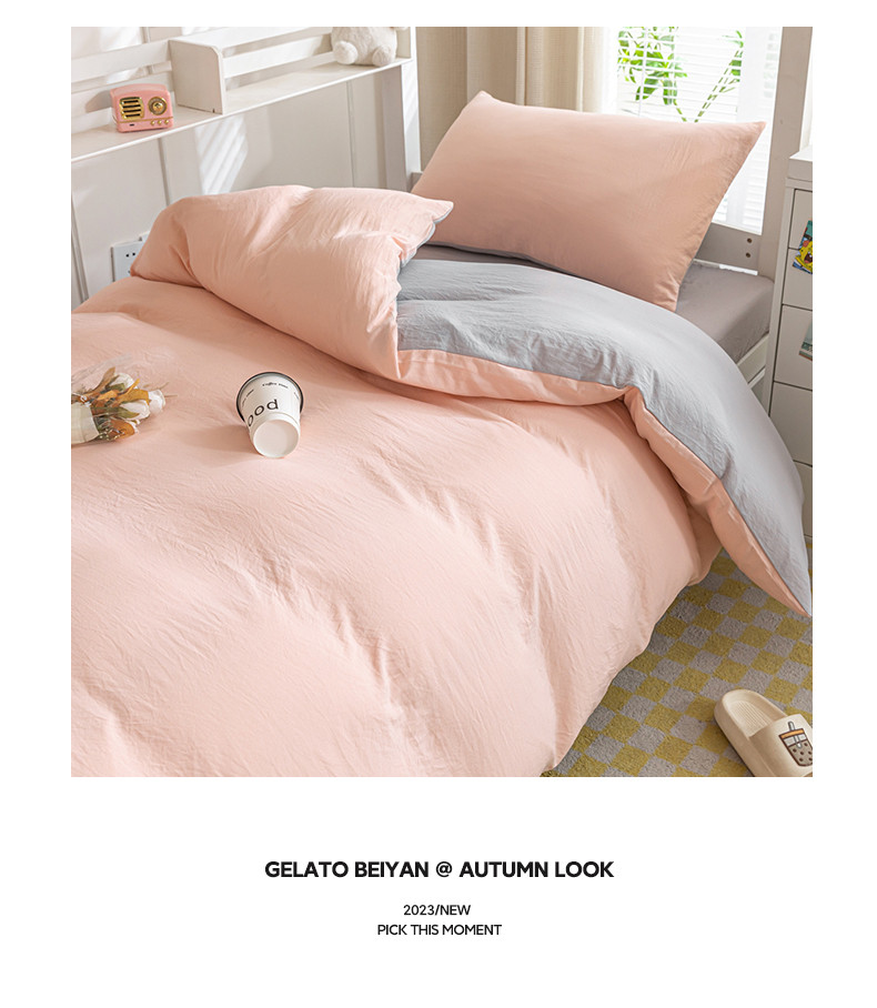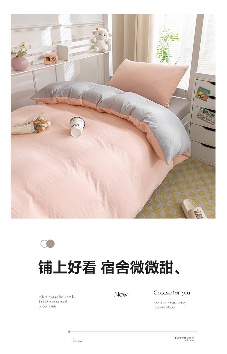 当前位置: 91家纺网 > 商品网购 > 床品套件 > 四件套 > 水洗棉四件套 > 古吉梦 2024新款纯色-双拼水洗棉学生三件套 纯色-奶油粉+山灰
