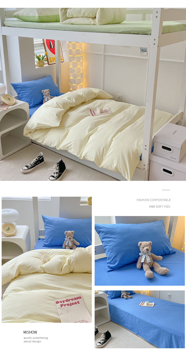 当前位置: 91家纺网 > 商品网购 > 床品套件 > 四件套 > 水洗棉四件套 > 盼季 2023新款无印风格子纯色水洗棉四件套 奶黄+克莱因蓝