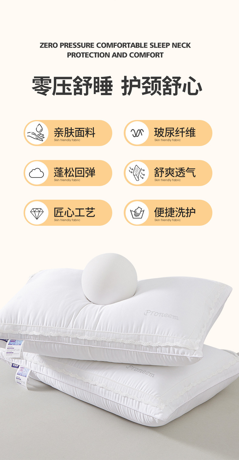 商品名称:(总)歌历斯 2023新款滚边烫钻蓬松舒睡玻尿酸纤维亲肤枕
