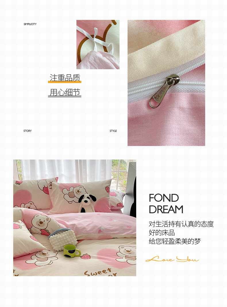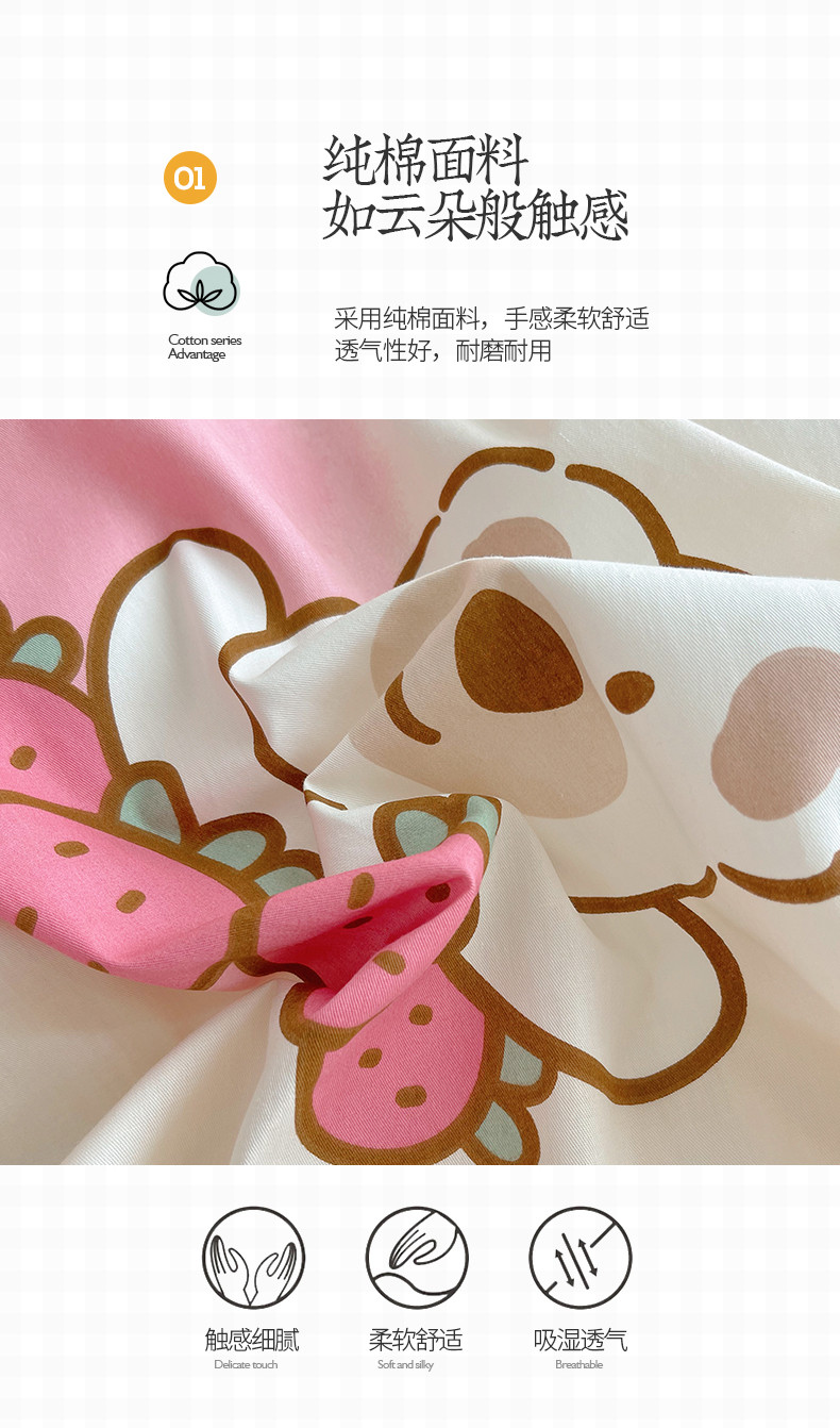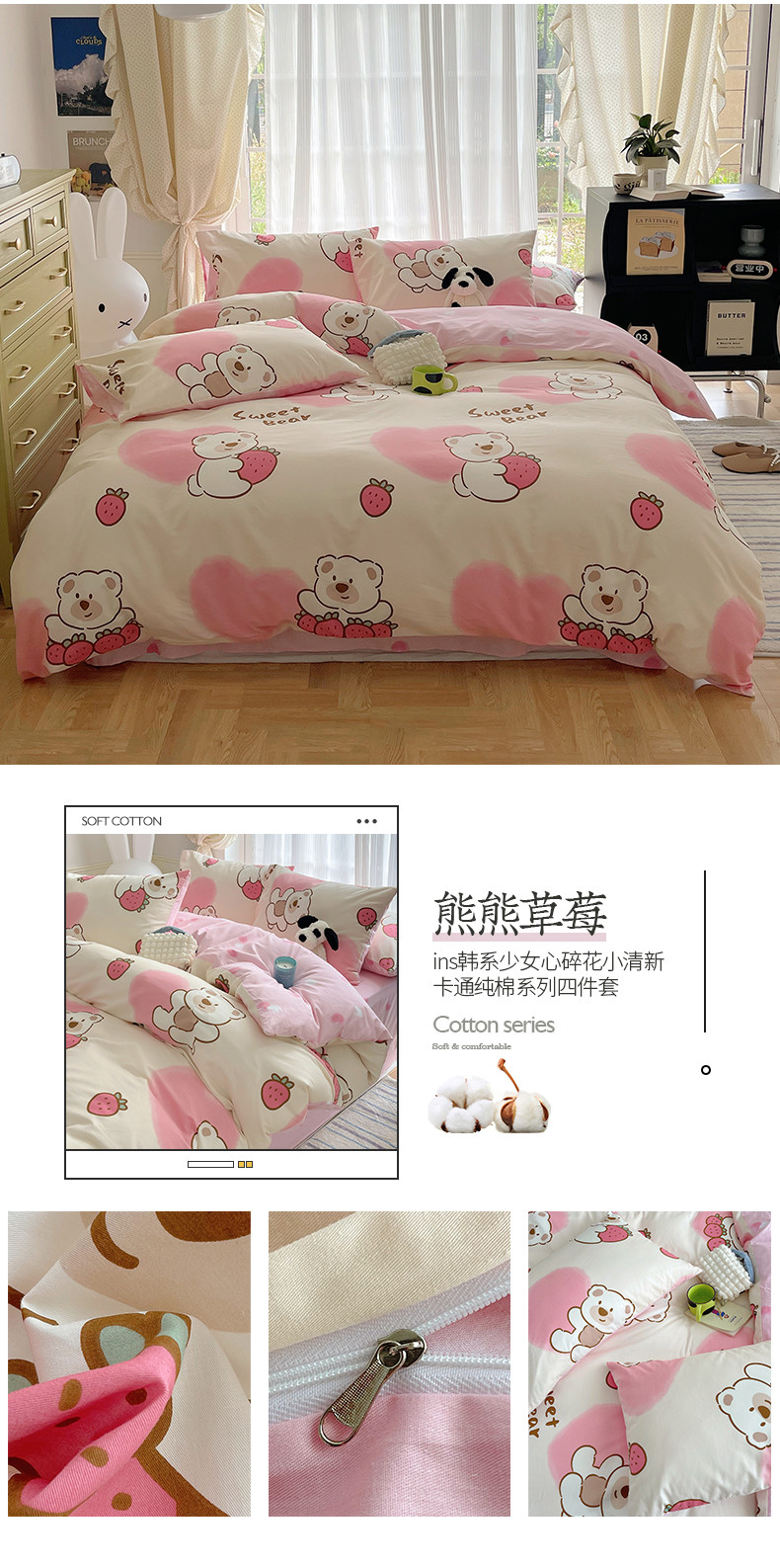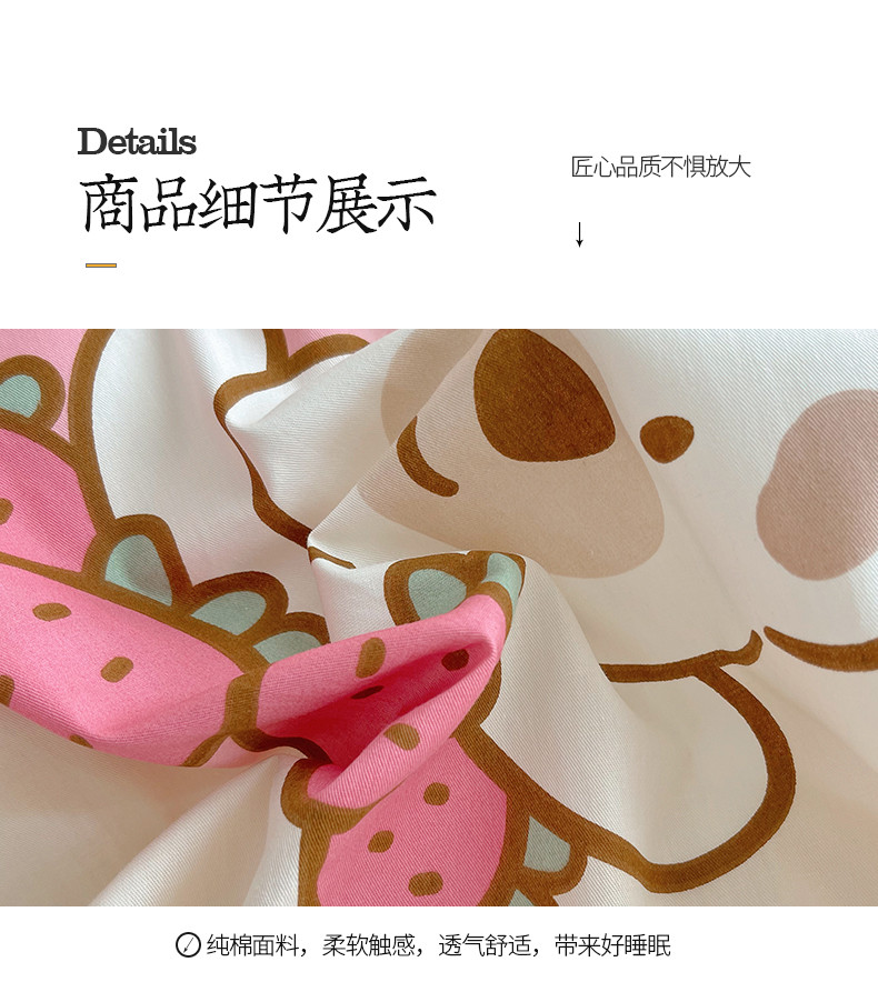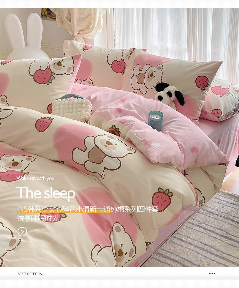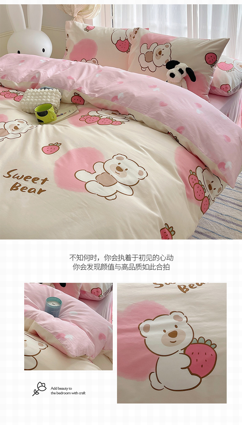 商品名称:桃子 2023新款ins韩系少女心碎花小清新卡通纯棉系列四件套 棉-熊熊草莓