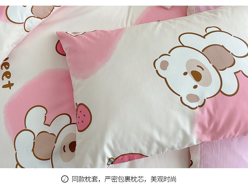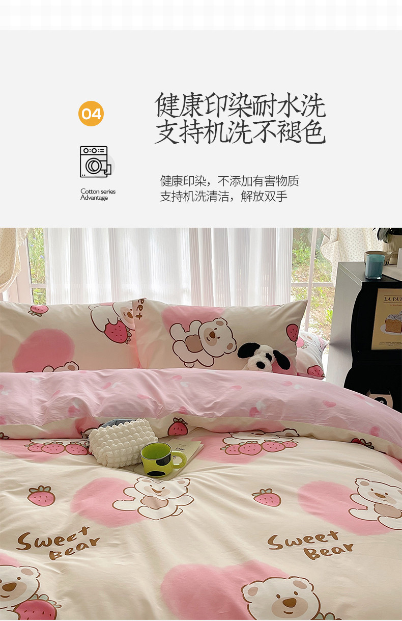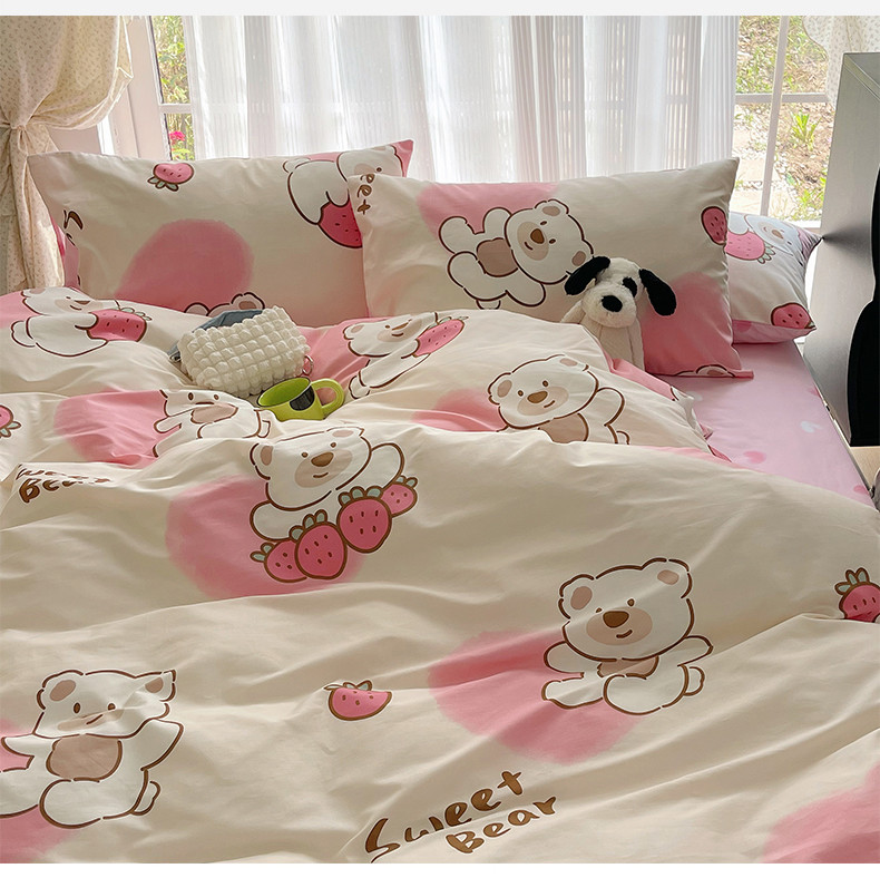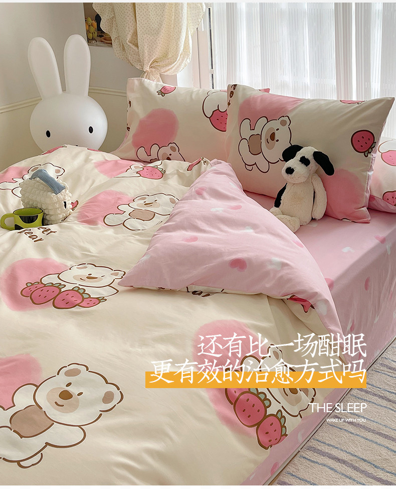 桃子 2023新款ins韩系少女心碎花小清新卡通纯棉系列四件套 棉-熊熊草莓