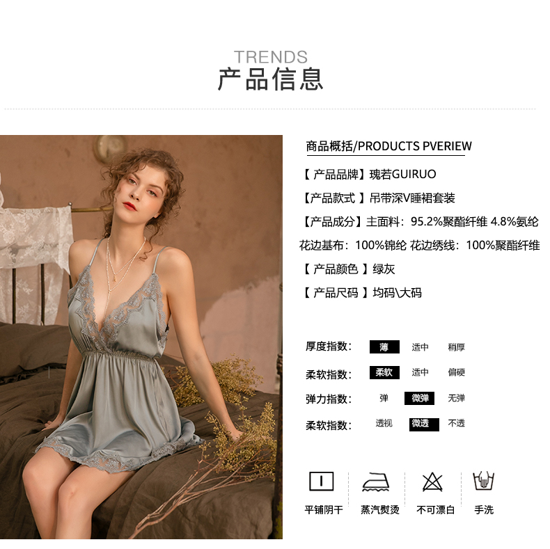 商品名称:洛兰沙 2023新款外贸冰丝蕾丝吊带和两件套 267七七