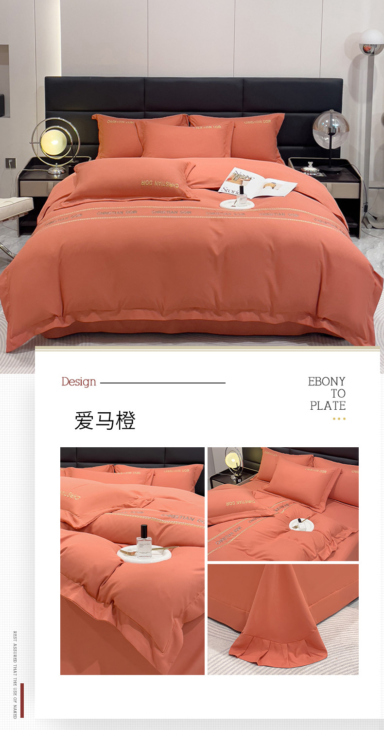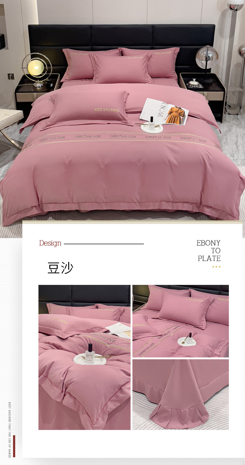 (总)金米诺 2024新款磨毛四件套刺绣系列,豆沙,翡翠绿,抹茶绿,浅姜黄,深蓝,烟灰,烟灰紫