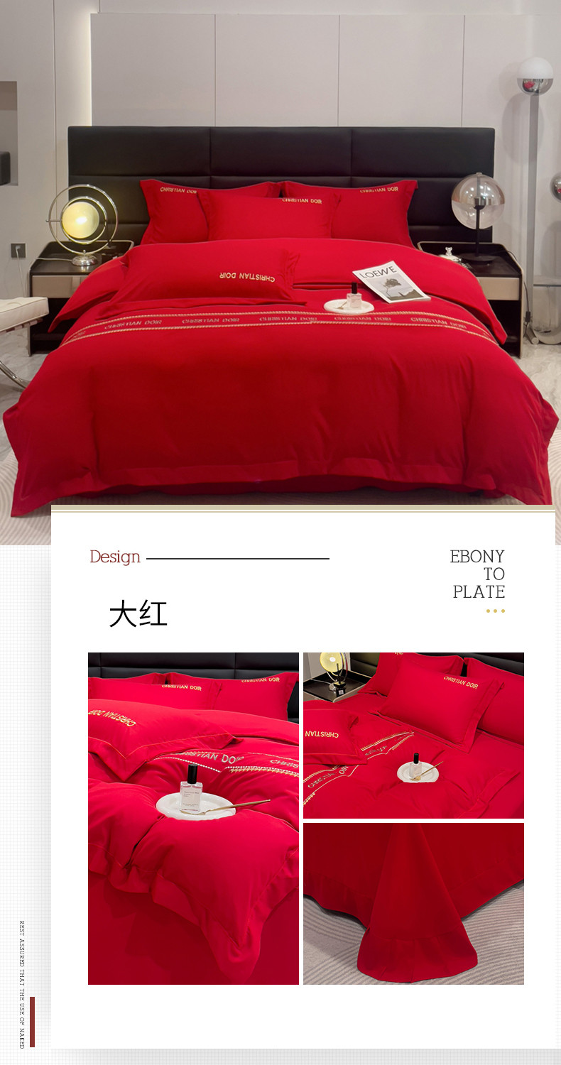 (总)金米诺 2024新款牛奶绒毛巾绣四件套,大红,淡雅青,豆绿,豆沙,粉玉,高级灰,紫色