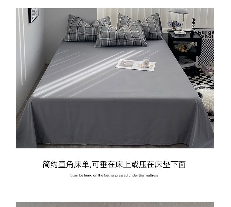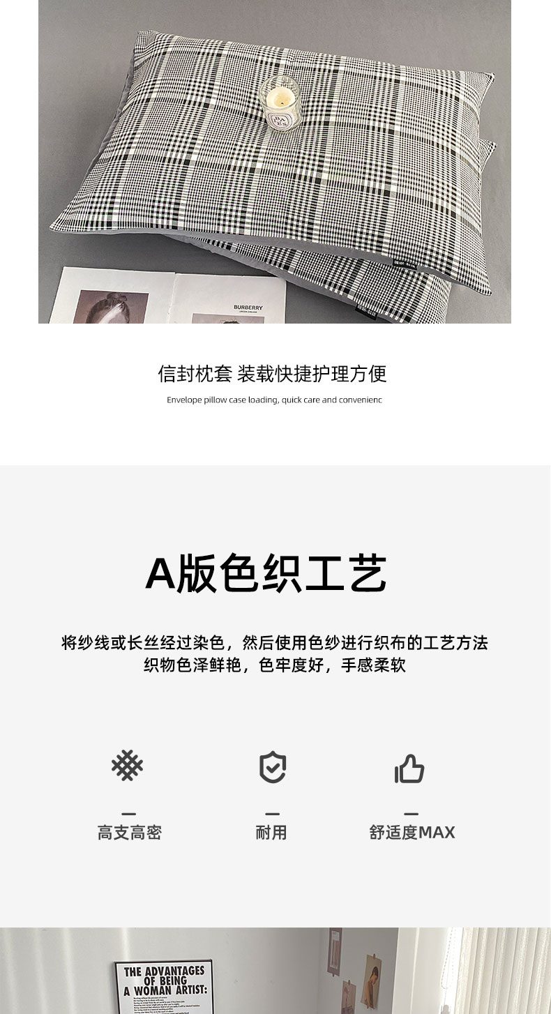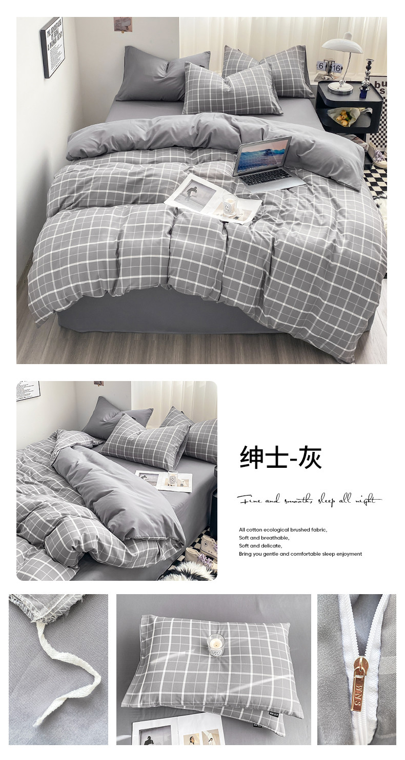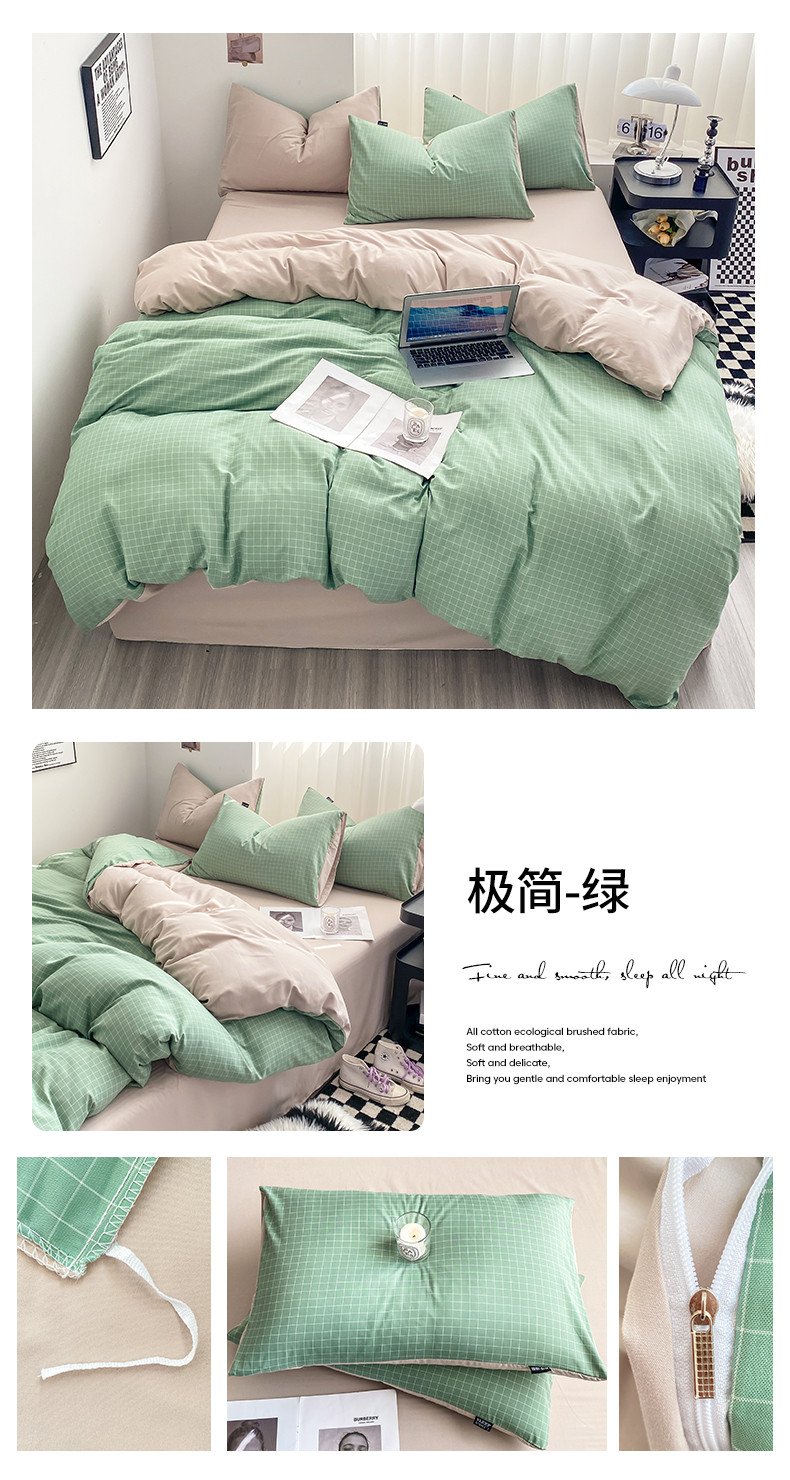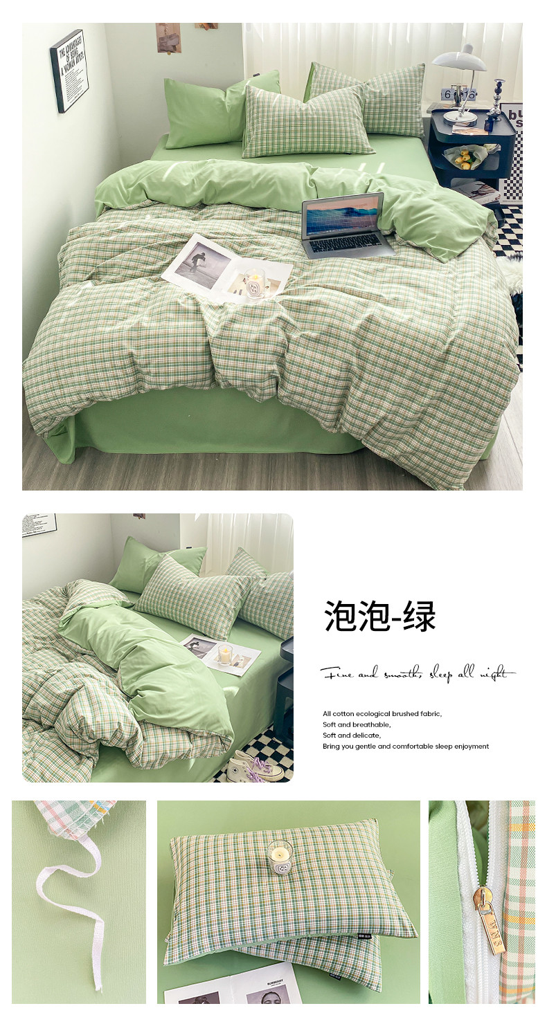 (总)水洗棉色织格子无印风三件套纯色双拼磨毛被套四件套