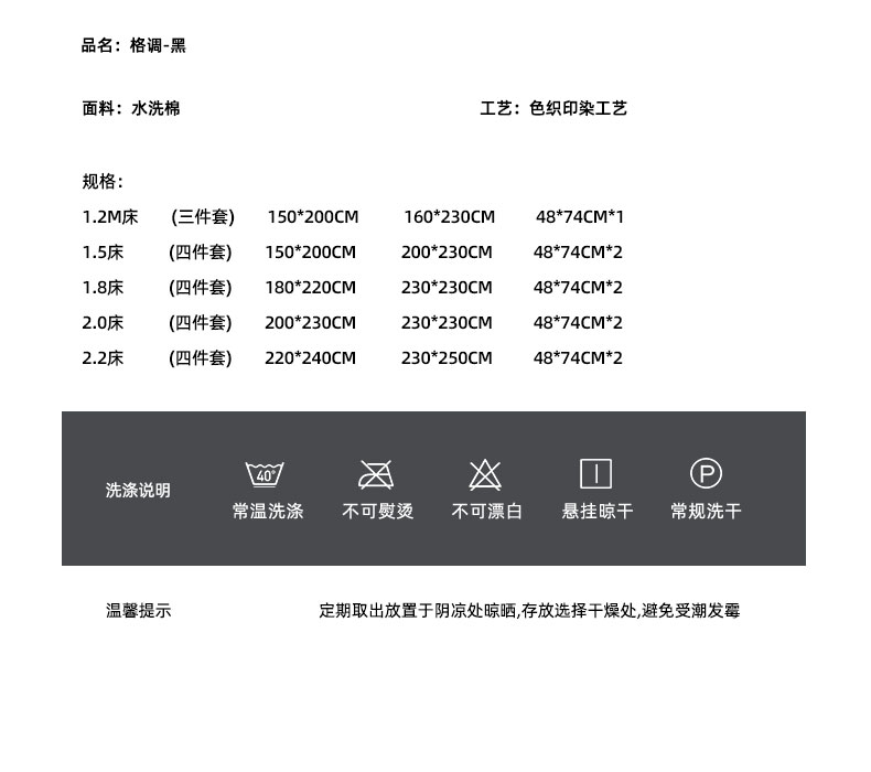 商品名称:(总)水洗棉色织格子无印风三件套纯色双拼磨毛被套四件套