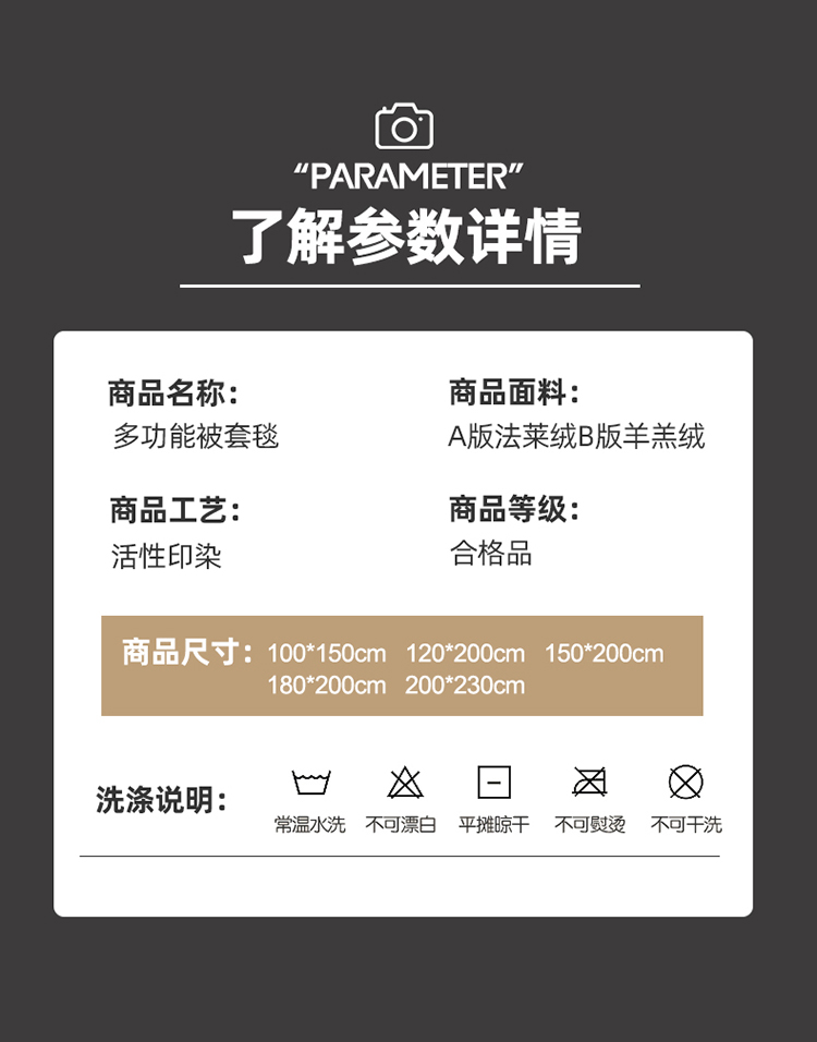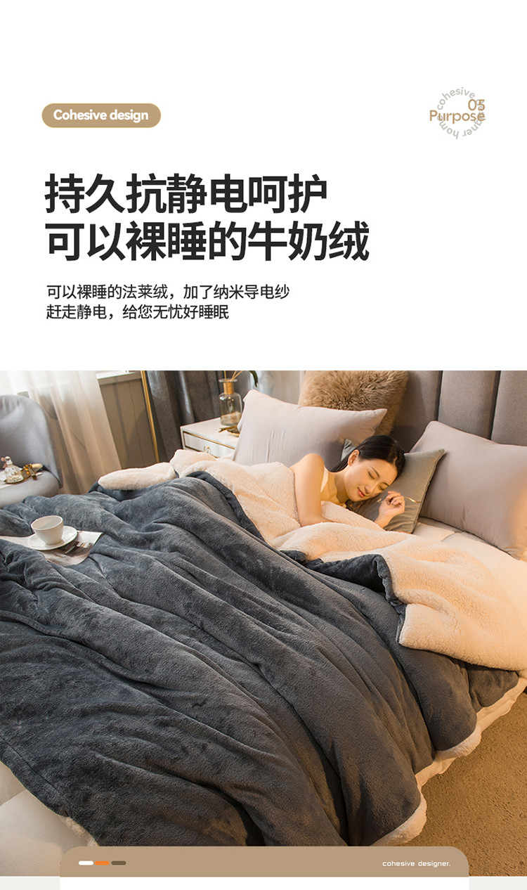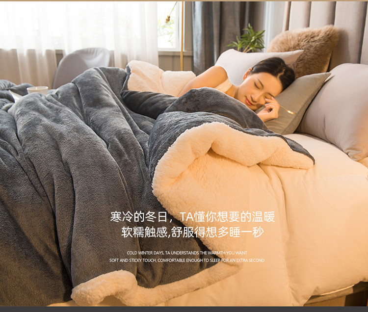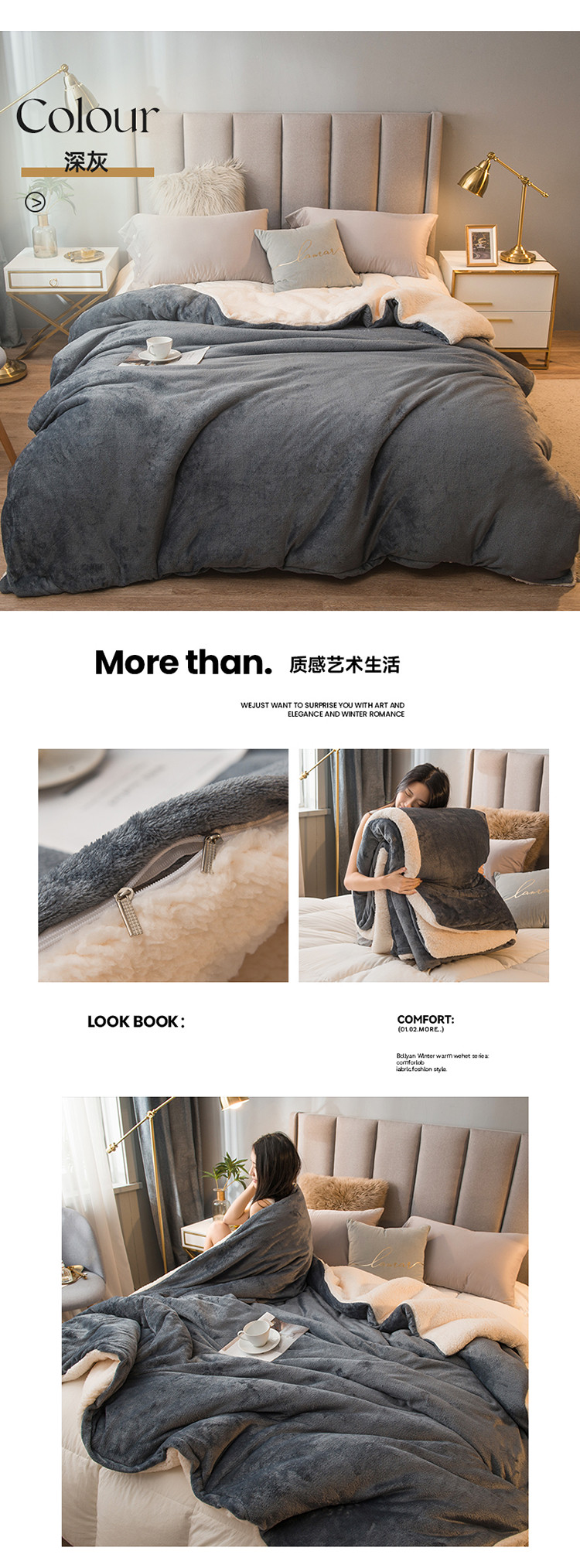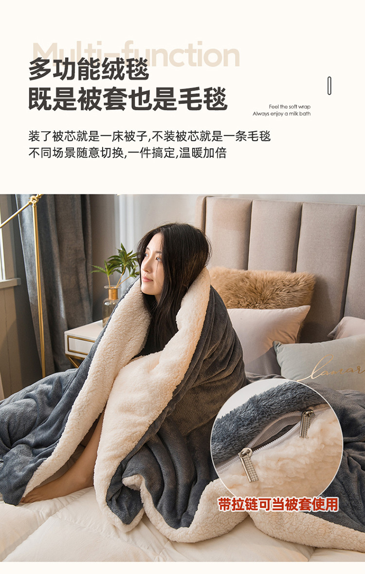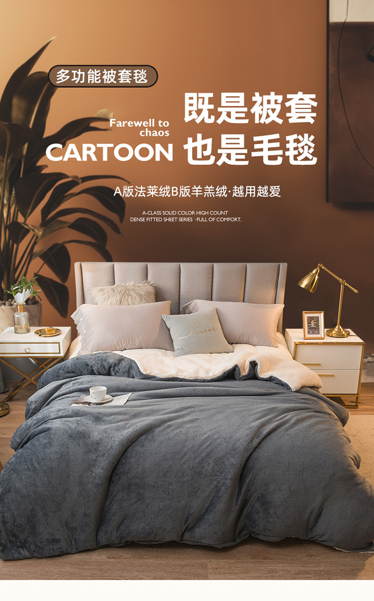商品名称:简爱 2025新款法莱绒羊羔绒多功能被套毯 深灰