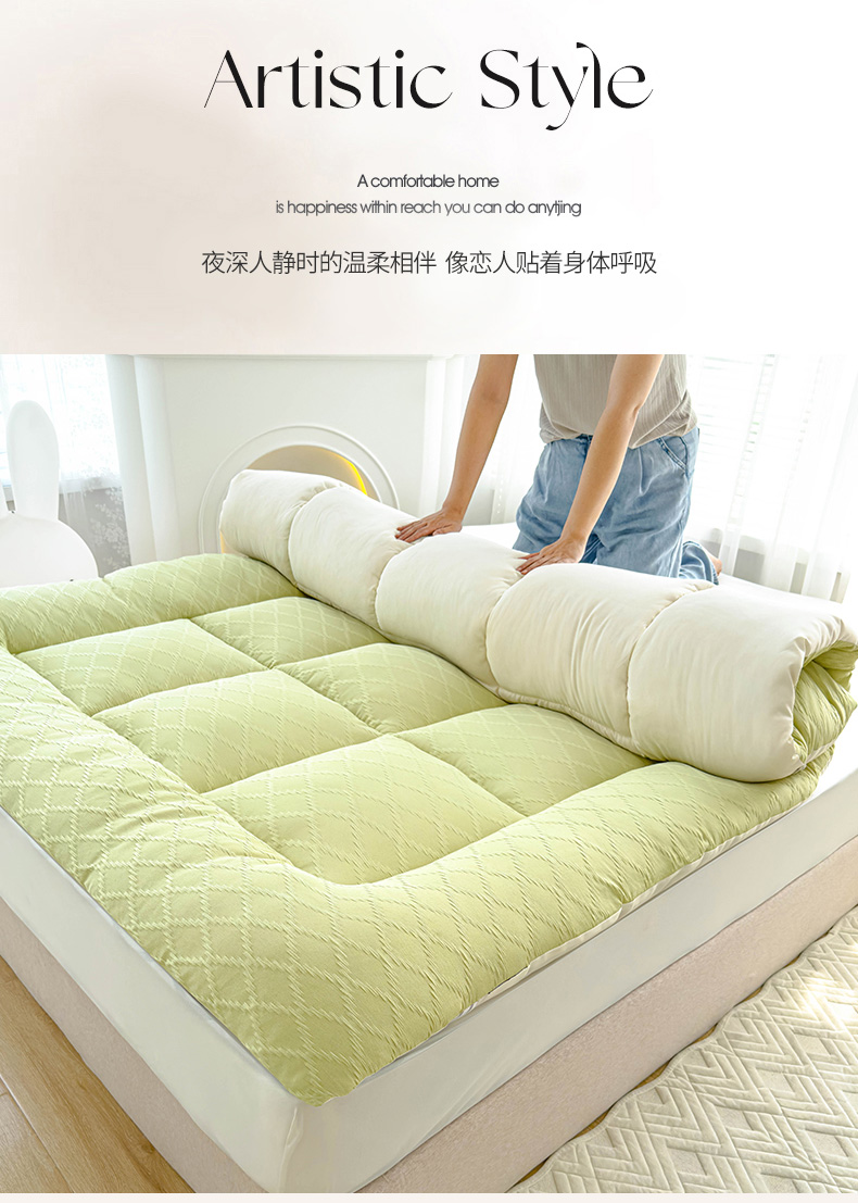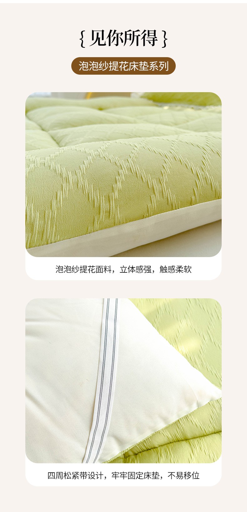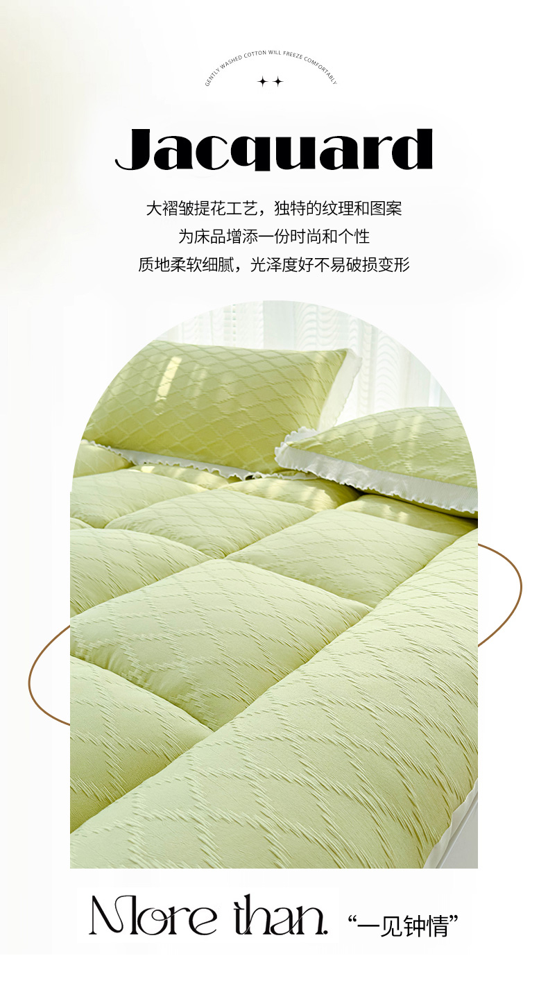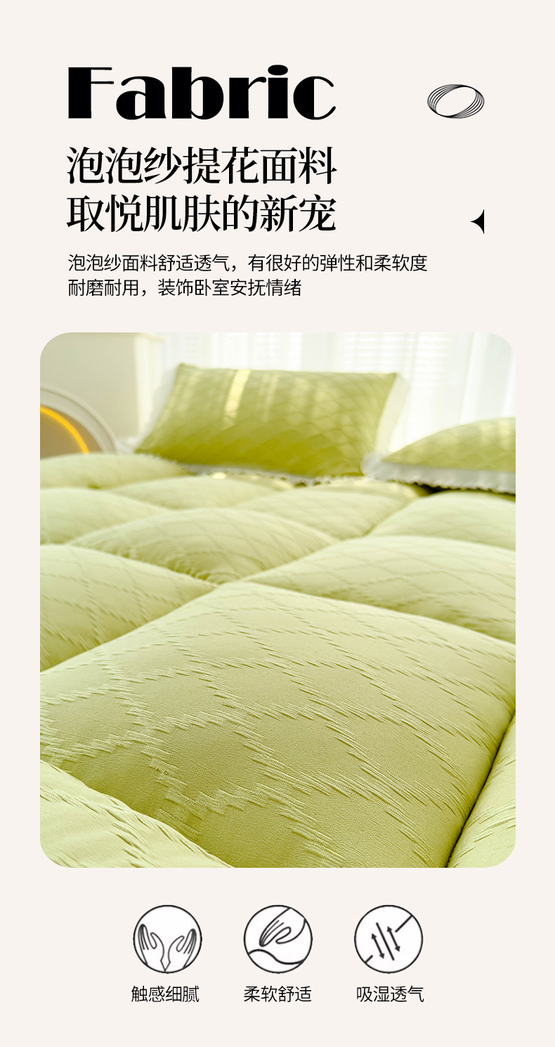商品名称:(总)蓝冰家纺2024新款A类泡泡纱提花绗缝活性印染羽丝棉床笠床垫款