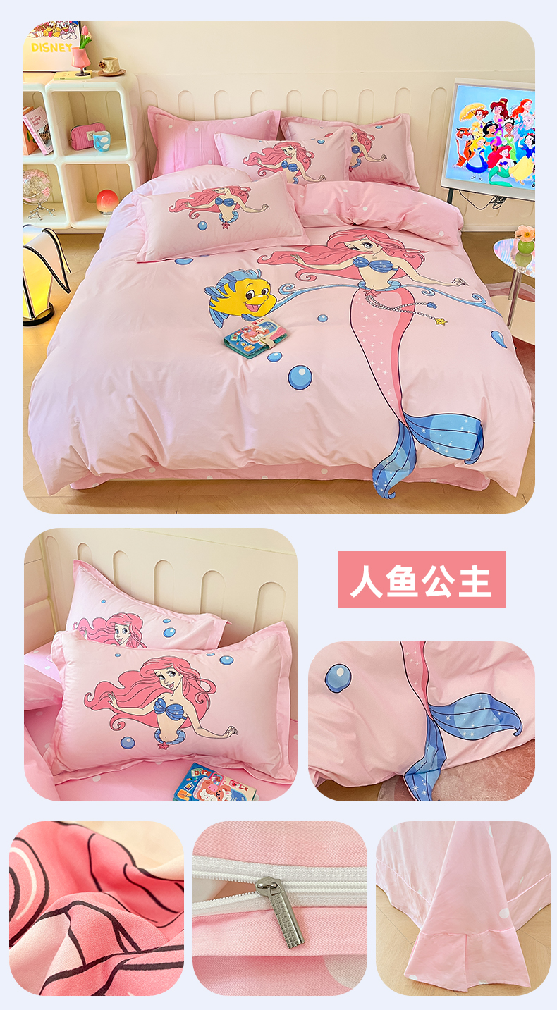 孩子王家纺 2023新款全棉卡通学生活性印花大版工艺款四件套 人鱼公主