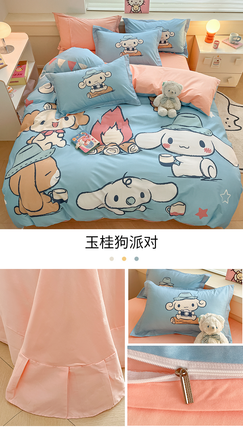 当前位置: 91家纺网 > 商品网购 > 床品套件 > 四件套 > 全棉普通四件套 > 孩子王家纺 2023新款三丽鸥系列全棉活性大版印花卡通学生四件套 玉桂狗派对