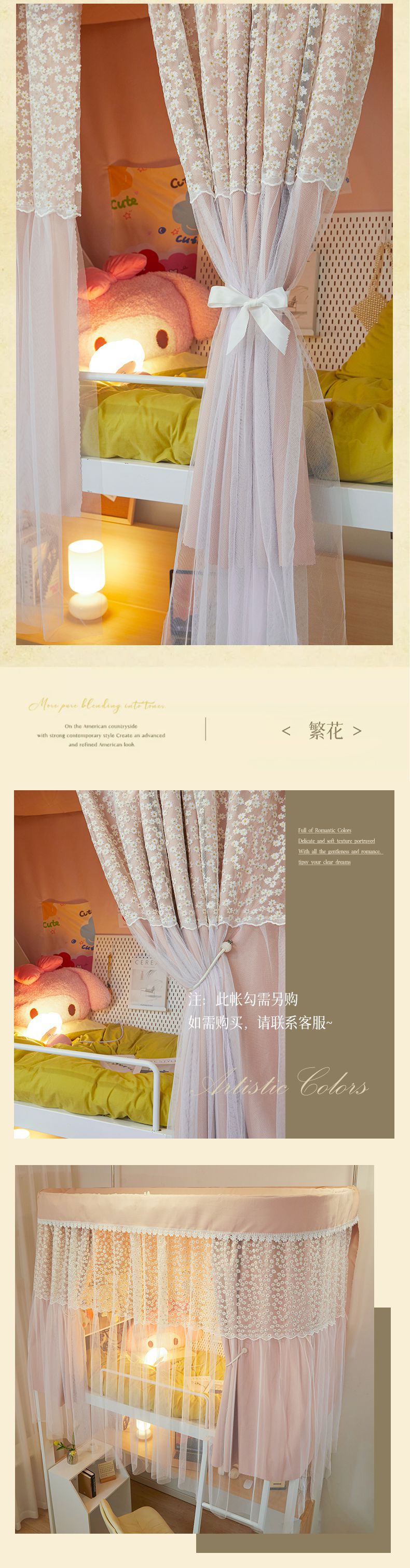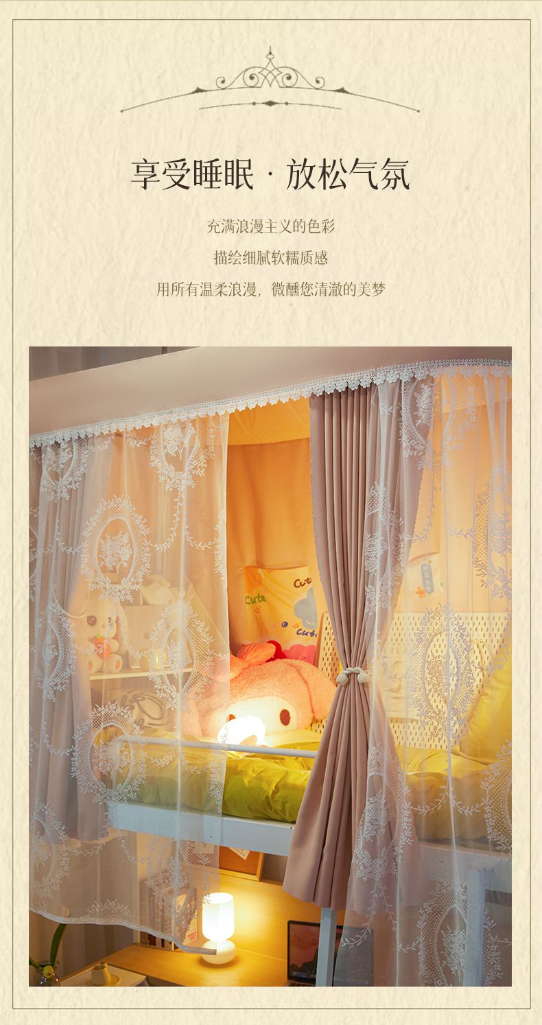 当前位置: 91家纺网 > 商品网购 > 床上用品 > 蚊帐 > 学生蚊帐 > 卓尔居 2025新款浪漫学生宿舍雪尼尔交织工艺蕾丝幔纱U型导轨蚊帐-镜中花 镜中花-绿