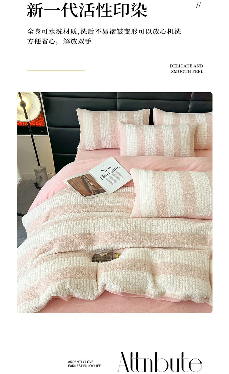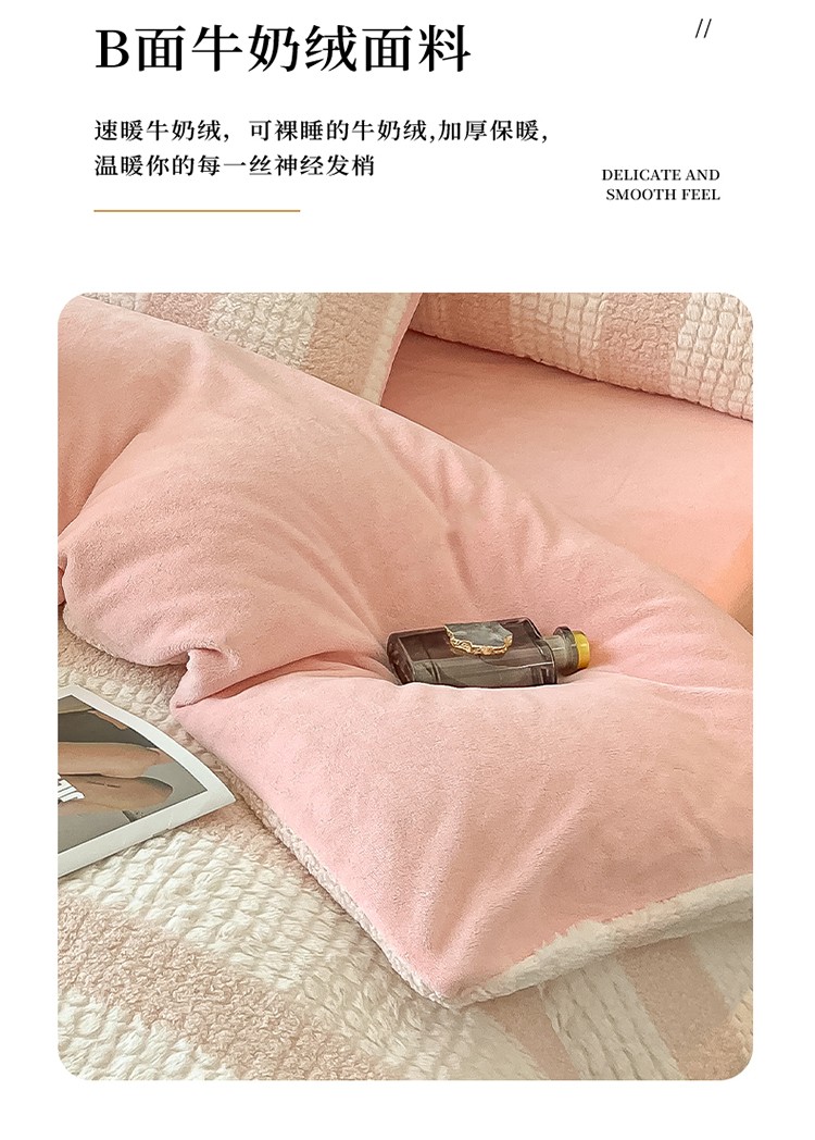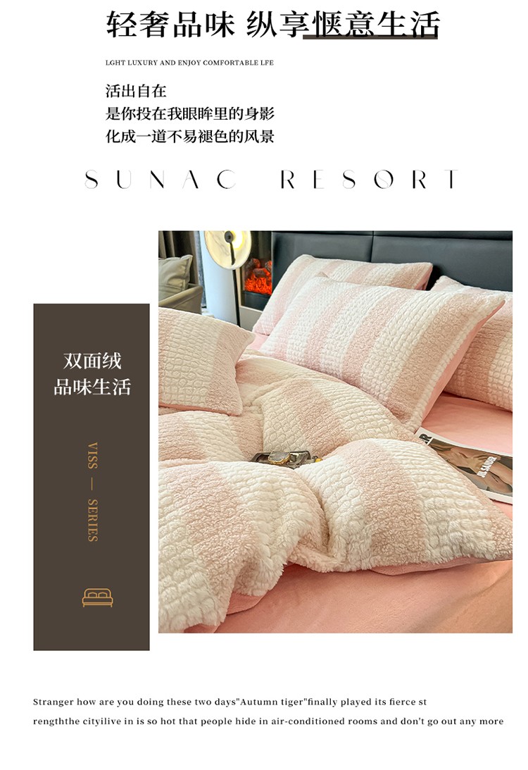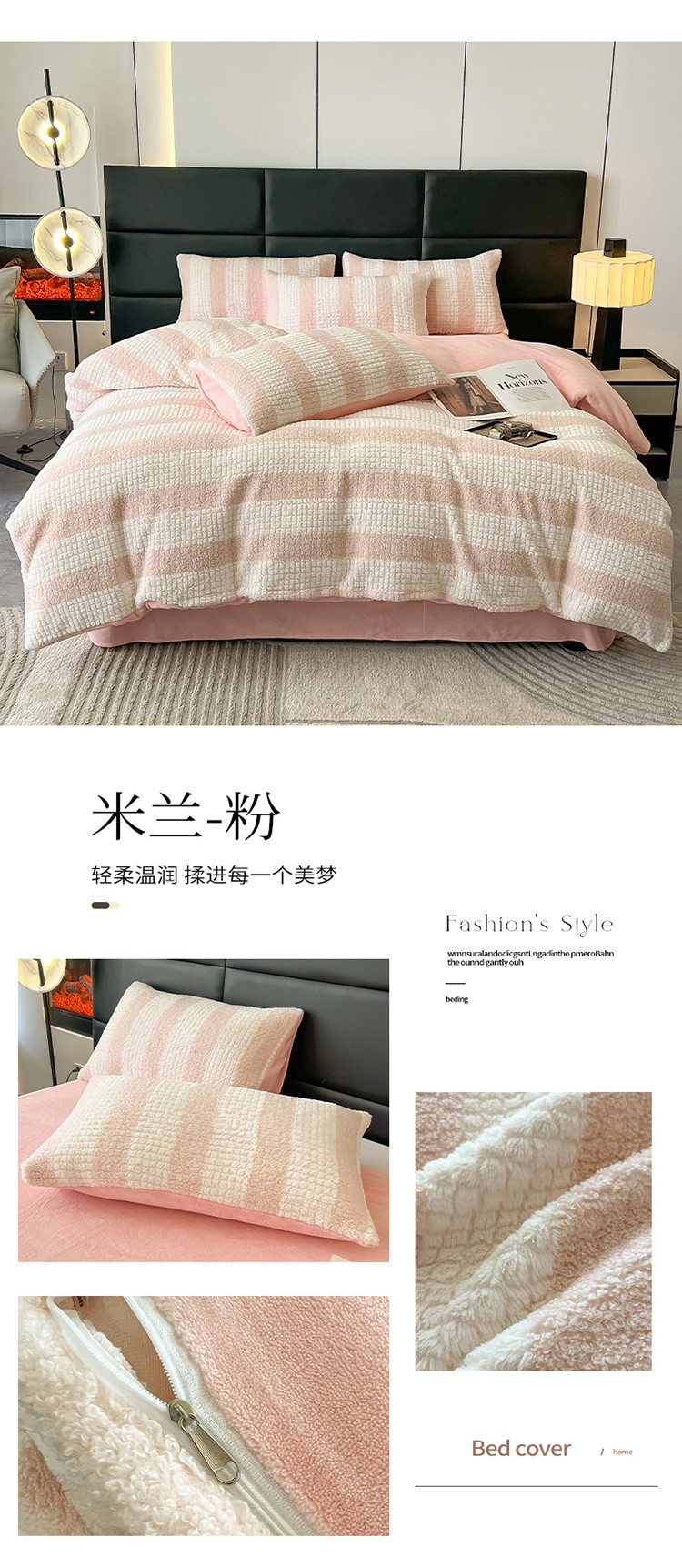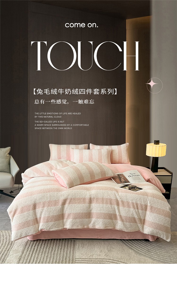 商品名称:韩都家居2023直播爆款高端320克A类泰迪兔毛绒剪花纯色牛奶绒四件套 米兰-粉