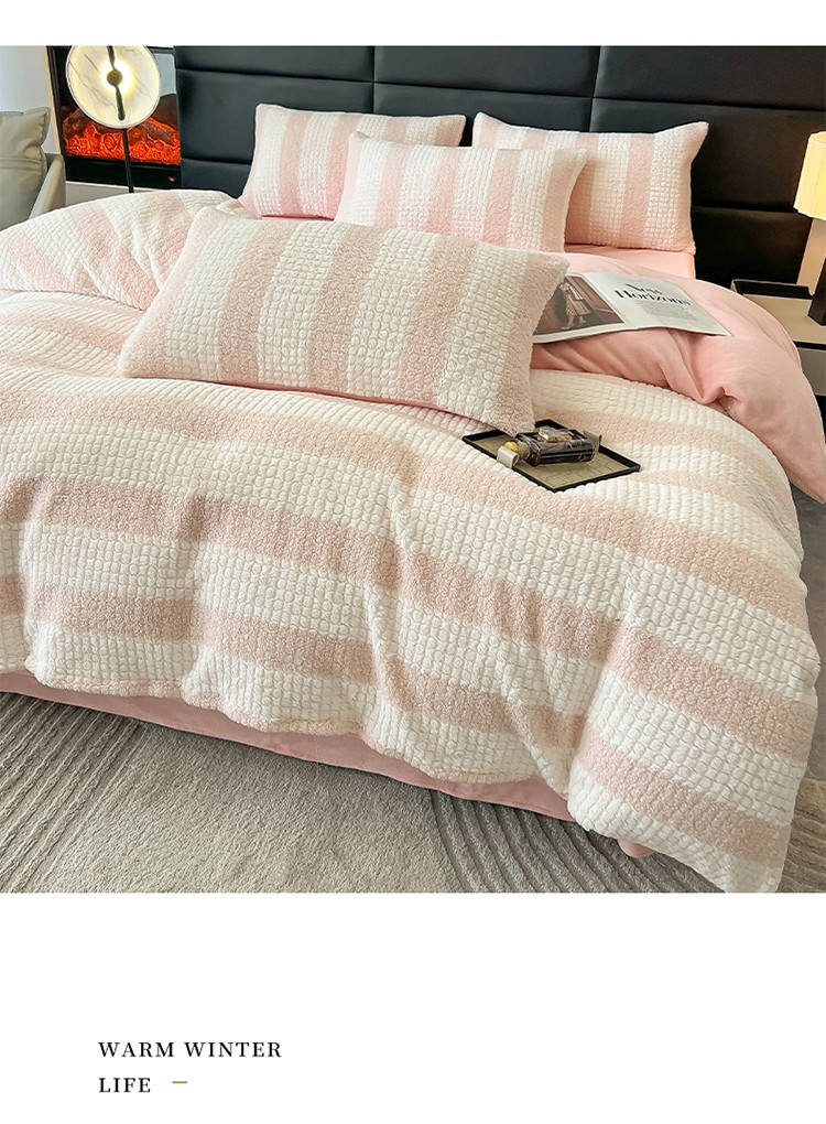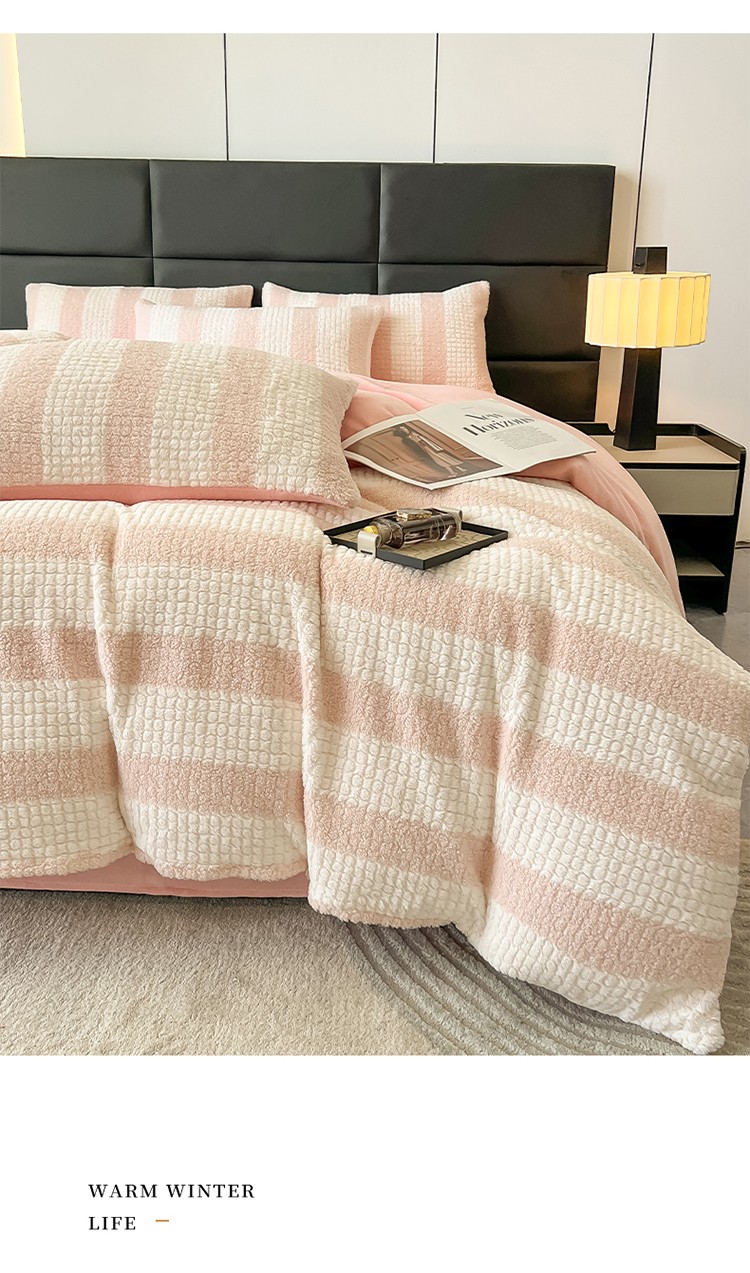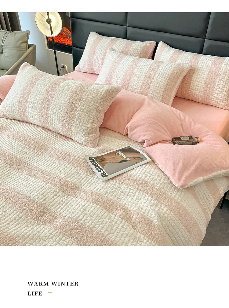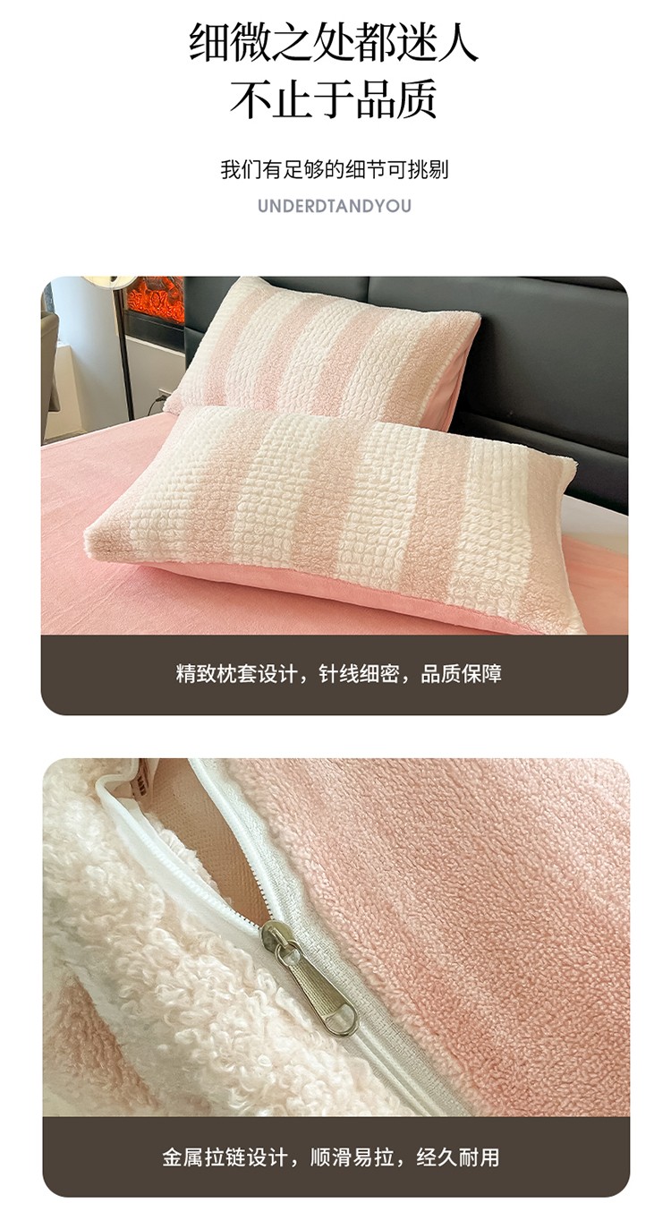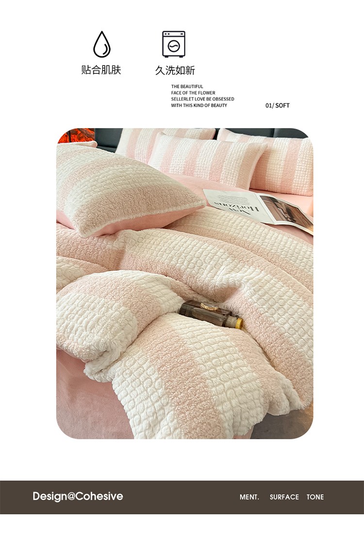 商品名称:韩都家居2023直播爆款高端320克A类泰迪兔毛绒剪花纯色牛奶绒四件套 米兰-粉