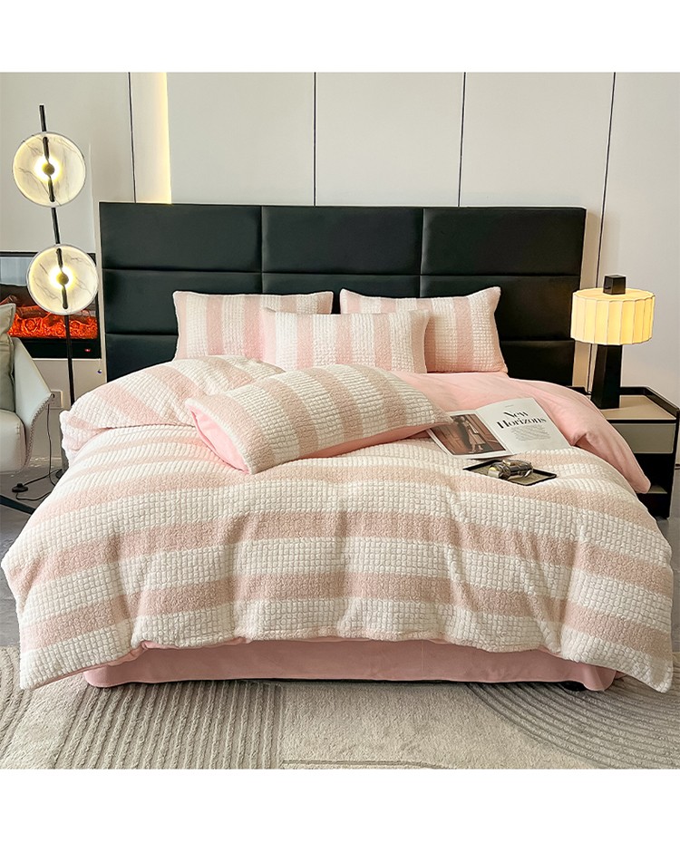 韩都家居2023直播爆款高端320克A类泰迪兔毛绒剪花纯色牛奶绒四件套 米兰-粉