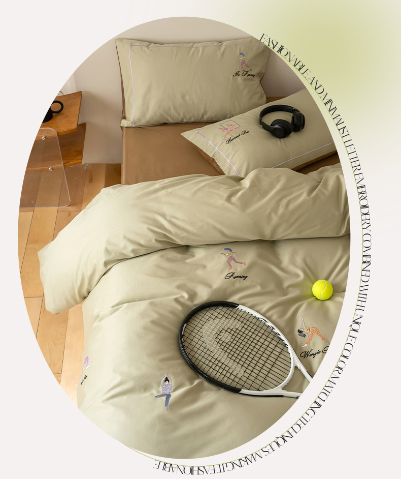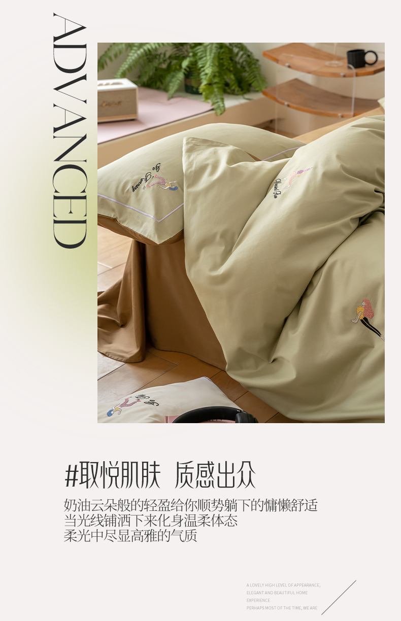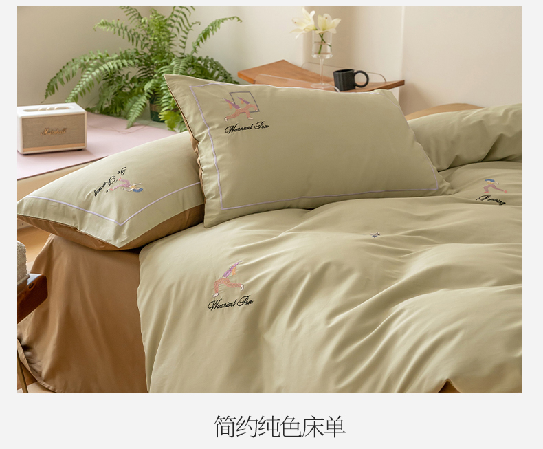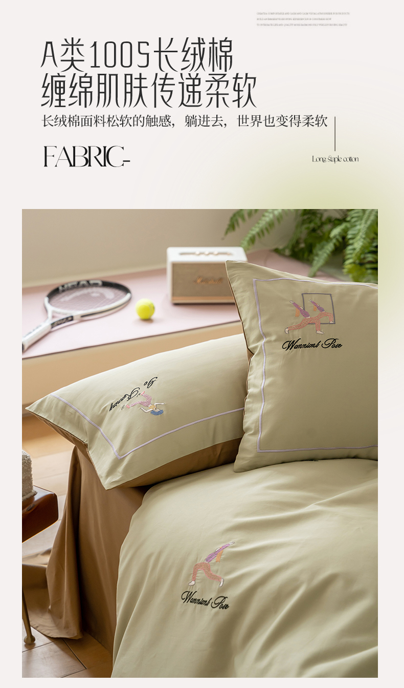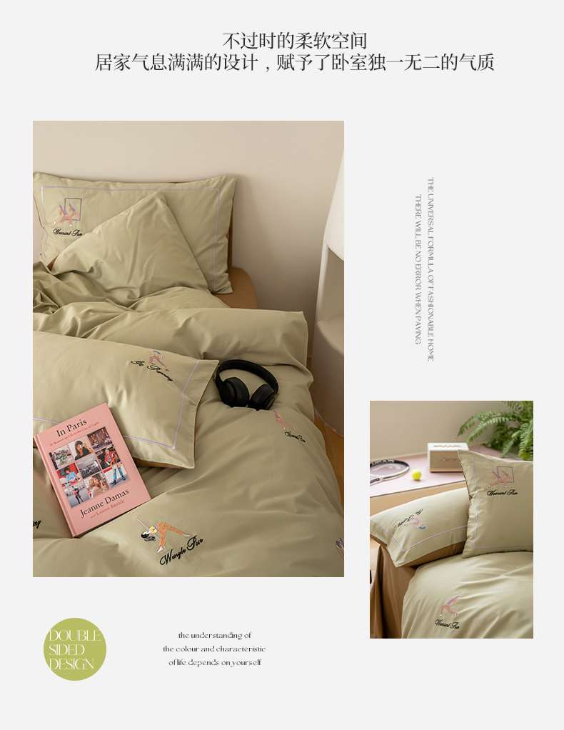 商品名称:名品优仓 2023新款高支高密长绒棉刺绣运动少女系列四件套 运动少女 嫩绿