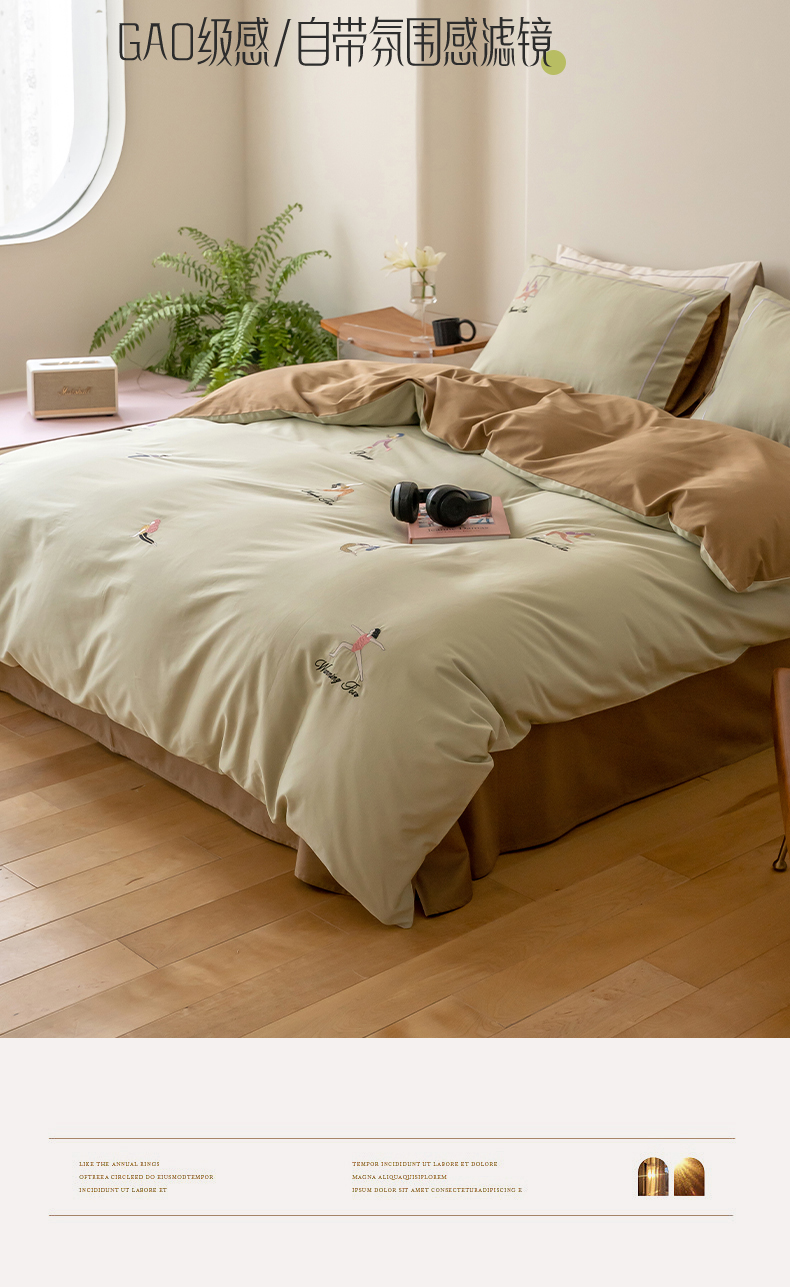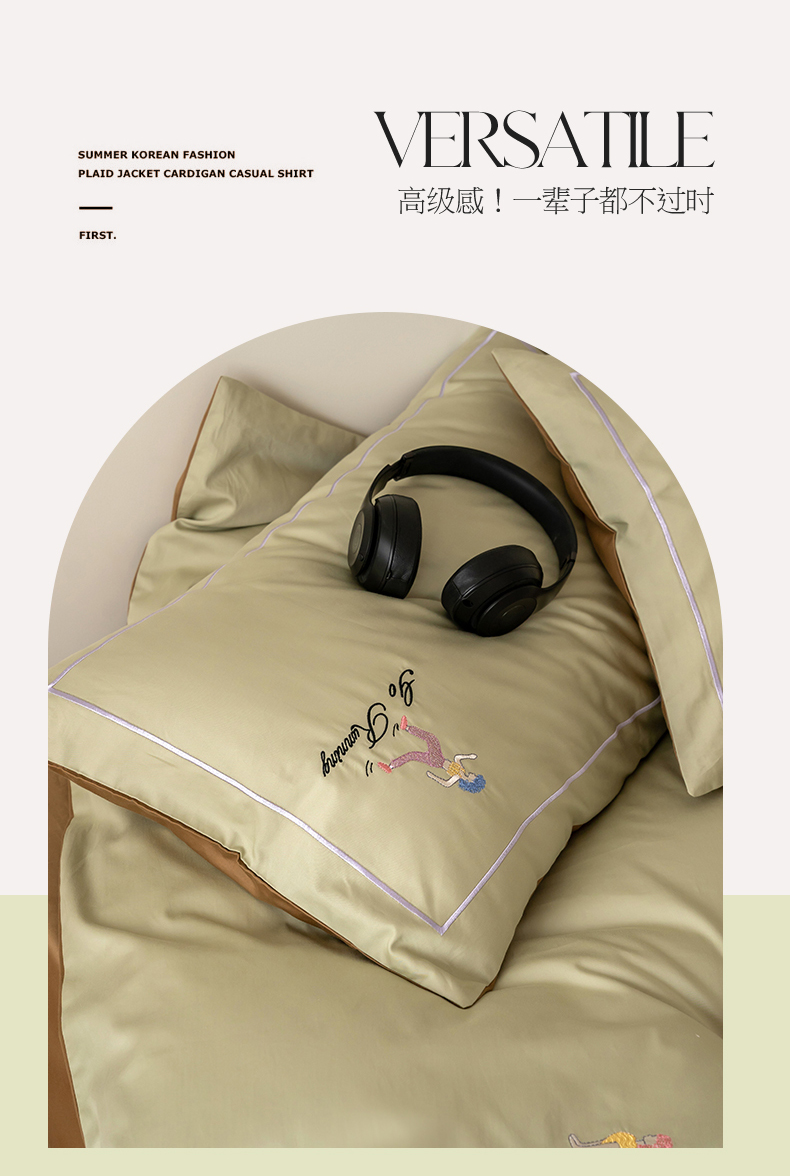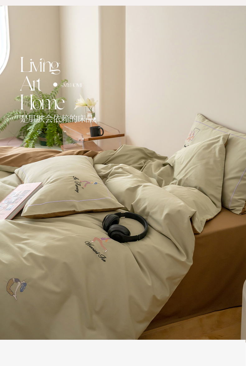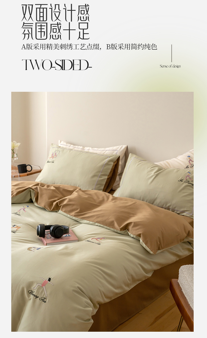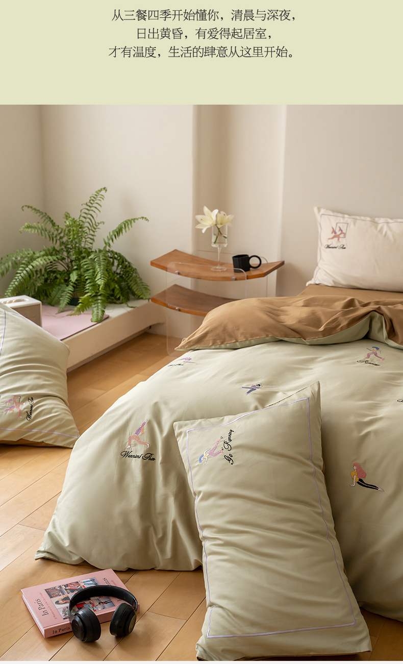 商品名称:名品优仓 2023新款高支高密长绒棉刺绣运动少女系列四件套 运动少女 嫩绿