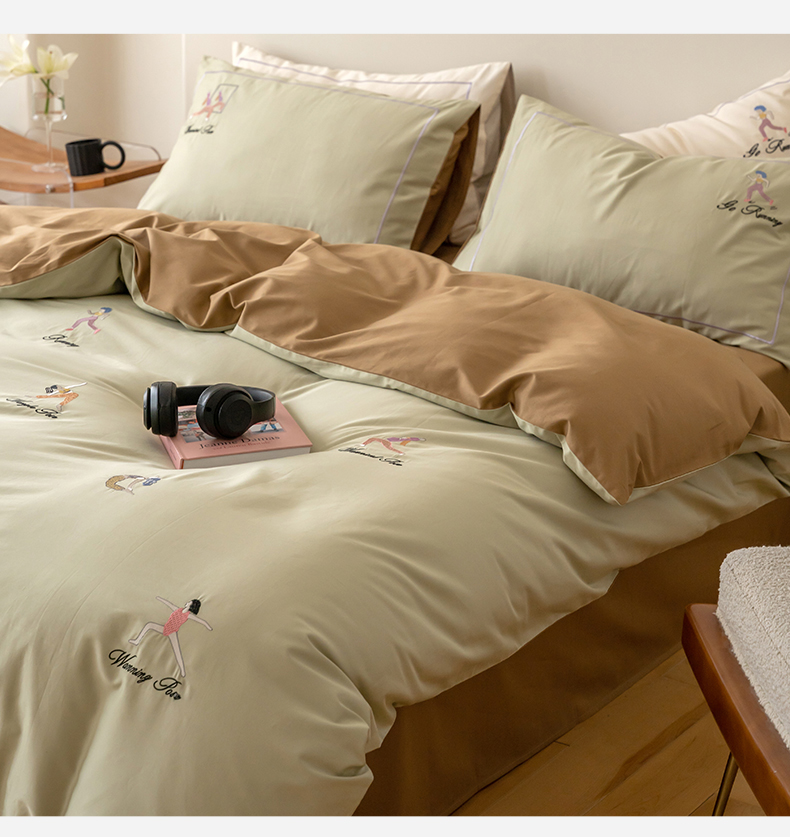 名品优仓 2023新款高支高密长绒棉刺绣运动少女系列四件套 运动少女 嫩绿