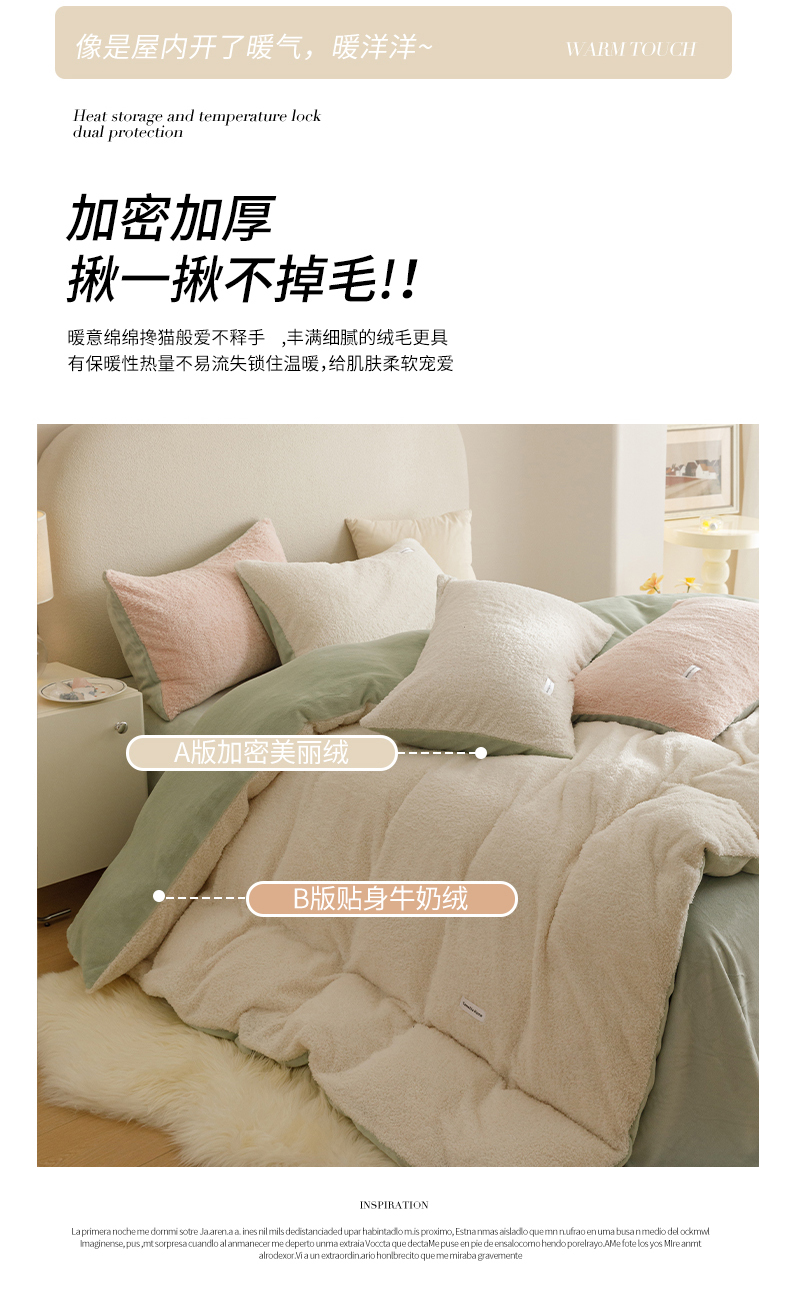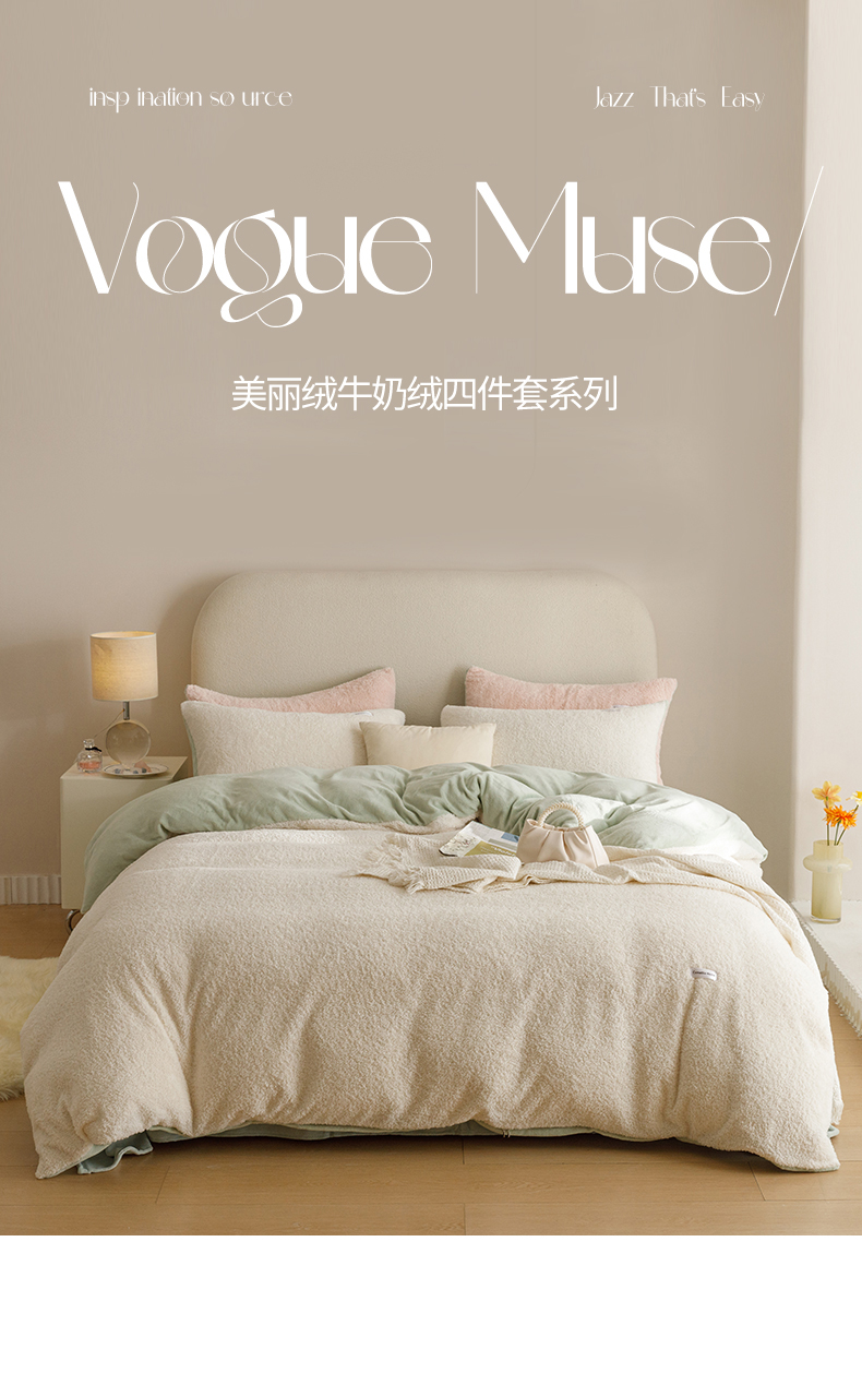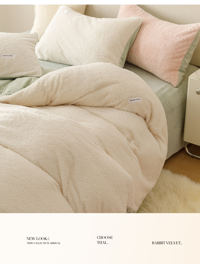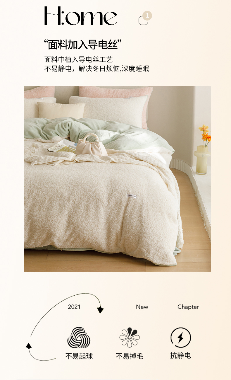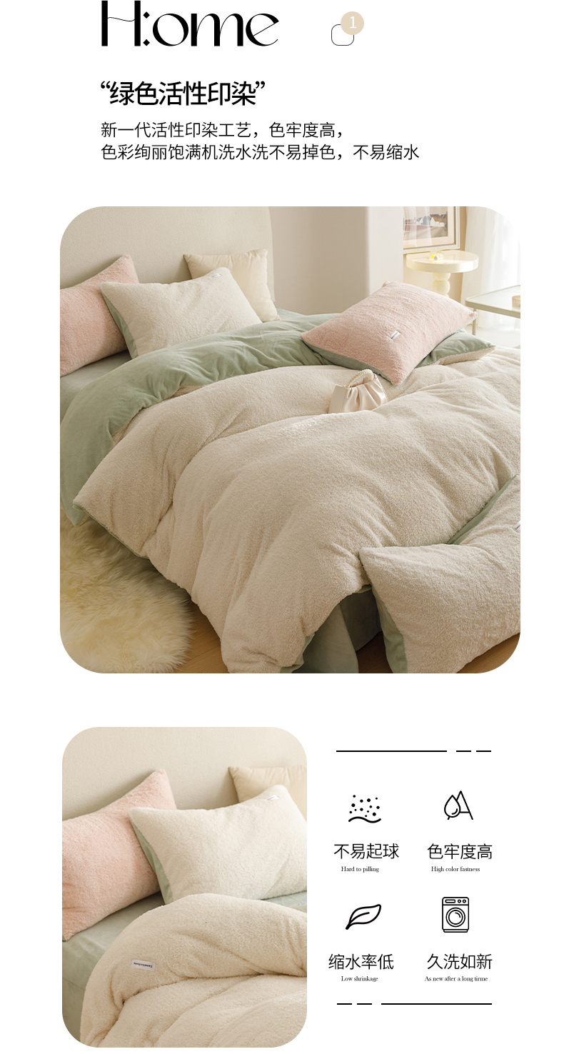 当前位置: 91家纺网 > 商品网购 > 床品套件 > 四件套 > 牛奶绒四件套 > 2023新款小清新纯色双拼美丽绒牛奶绒四件套 奶白拼果绿