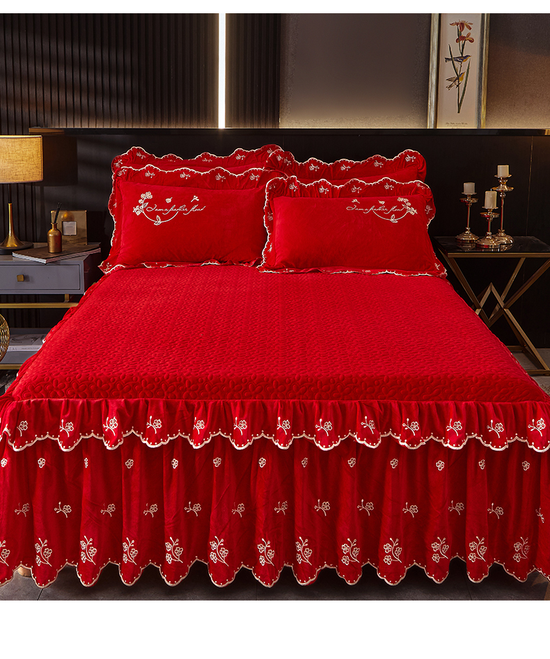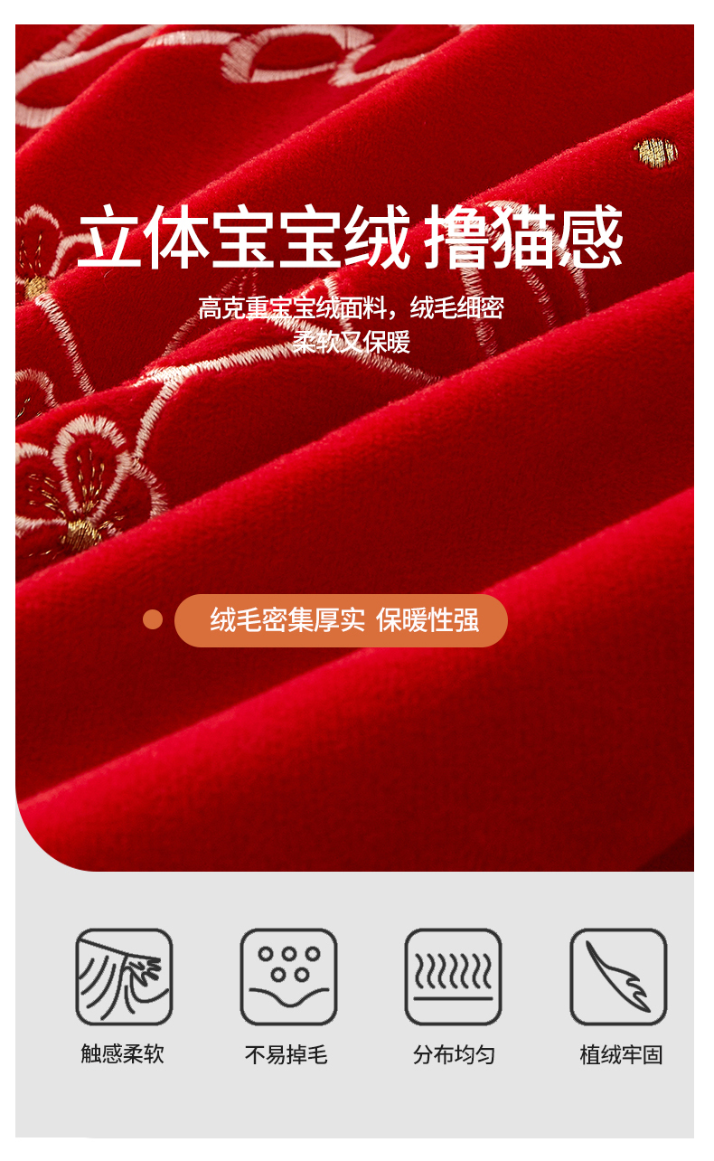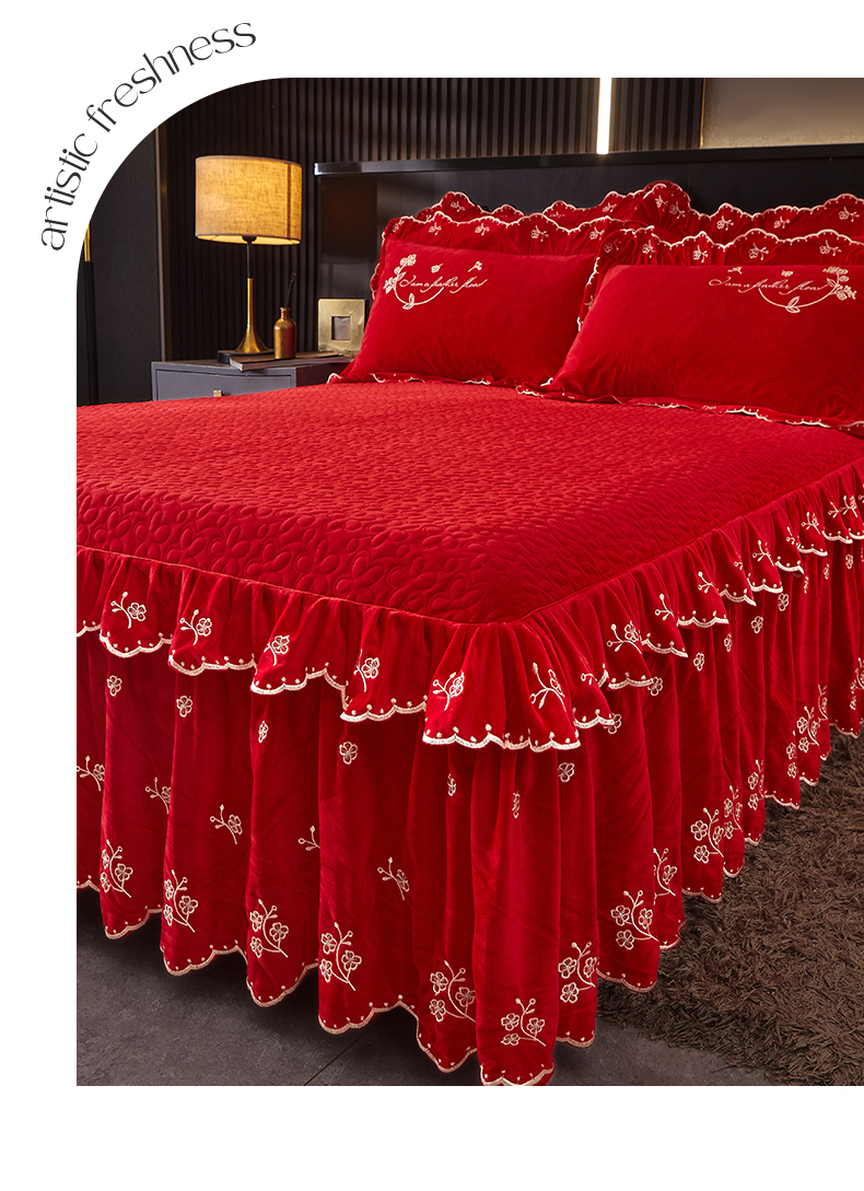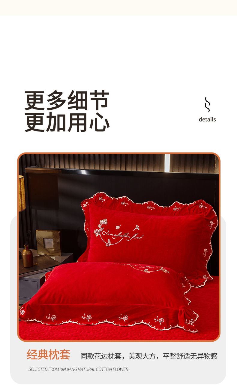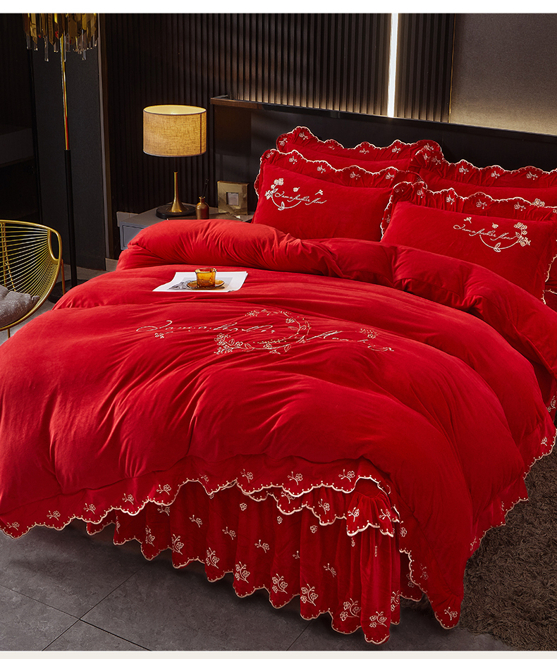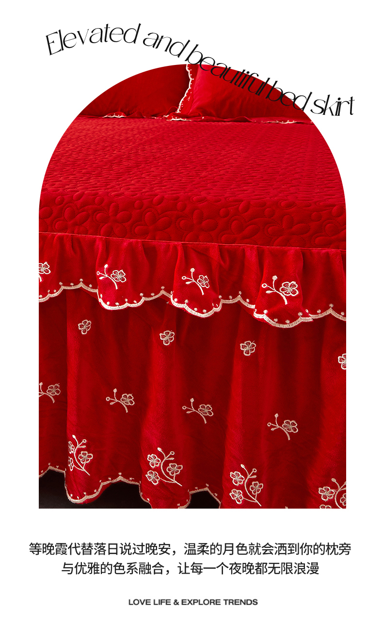 当前位置: 91家纺网 > 商品网购 > 床品套件 > 四件套 > 宝宝绒四件套 > 2023 恒爱家纺 花好月圆宝宝绒床裙四件套 喜庆红